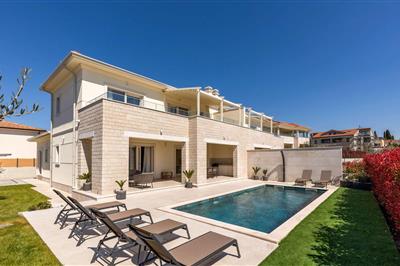 5,0Genießen Sie dieses moderne und stilvolle Ferienhaus mit Dachterrasse, Meerblick und Pool. Willkommen in diesem geschmackvollen und komfortablen Ferienhaus, das Sie mit einem geräumigen Platzangebot und eine hervorragende Ausstattung in ruhiger Lage