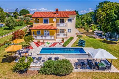 5,0Willkommen in dieser Villa mit Pool, die im typischen istrischen Stil erbaut ist. Sie erstreckt sich über das Erdgeschoss mit Küche, das Wohnzimmer, das Esszimmer, das Schlafzimmer, Bad, WC und im ersten Stock über zwei Schlafzimmer, zwei Bäder und eine
