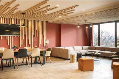 4,3Pool-Retreat in La Toussuire Haus: Übernachten Sie in einer Residenz im klassischen Savoyer Stil, wo Naturstein und warmes Holz einen einladenden alpinen Rückzugsort schaffen. Jedes Apartment ist liebevoll eingerichtet und verfügt über eine Küchenzeile,