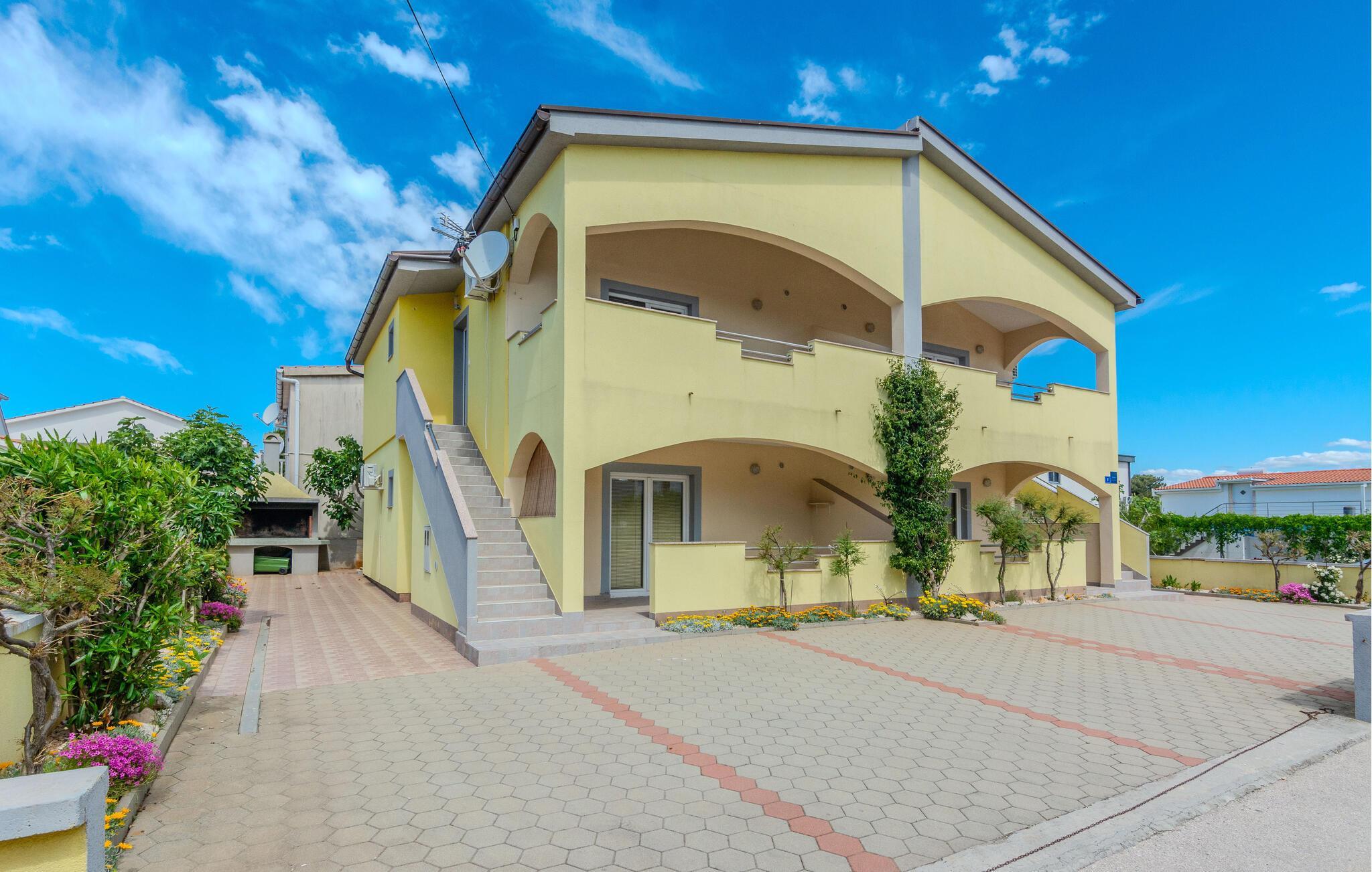 Diese beiden Ferienapartments befinden sich im ersten Stock eines Hauses auf der Insel Vir. Das Grundstück ist von Grün umgeben und lädt zur Entspannung ein. Im Erdgeschoss gibt es einen gemeinsamen Grill, den die Gäste mit dem Eigentümer teilen. Die Gäste
