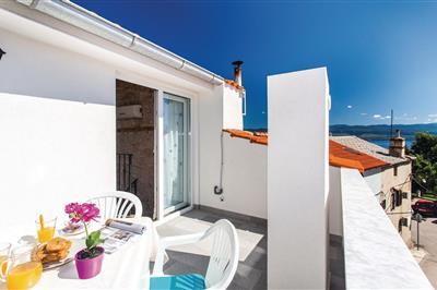 In der Mitte der Altstadt von Vrbnik erstreckt sich diese modern eingerichtete Ferienwohnung über drei Etagen. Im Erdgeschoss befinden sich ein Schlafzimmer und ein Badezimmer, während im ersten Stock die Küche mit dem Essbereich zu finden sind. Auf der