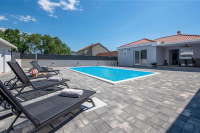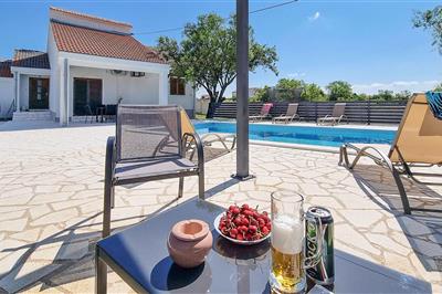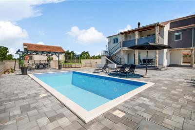 4,3Entspannen Sie sich in Strandnähe in diesem wunderschönen und modernen Ferienhaus mit Pool. Willkommen in Vrsi und diesem einladenden Haus auf zwei Etagen. Gemeinsam mit Ihrer Familie können Sie sich hier entspannen und die Annehmlichkeiten des Hauses