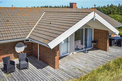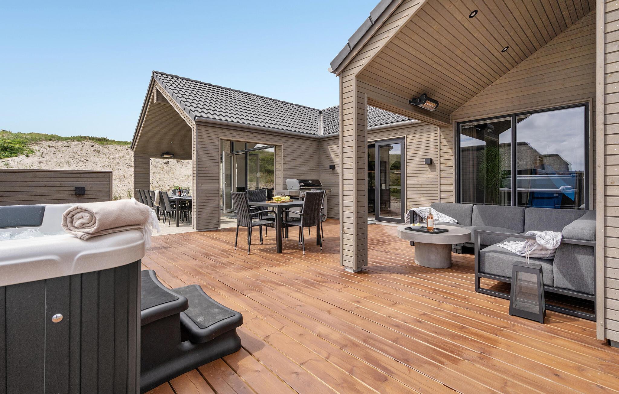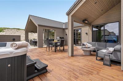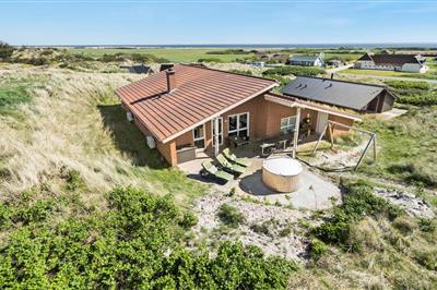 4,5Auf der schmalsten Stelle der attraktiven Landzunge, Holmsland Klit, liegt dieses schöne Ferienhaus aus Holz mit u. a. Swimmingpool (4 x 3,3 x 1,4), Whirlpool und Outdoor-Sauna. Das Haus liegt auf einem Dünengrundstück, das an ein unter Naturschutz stehendes