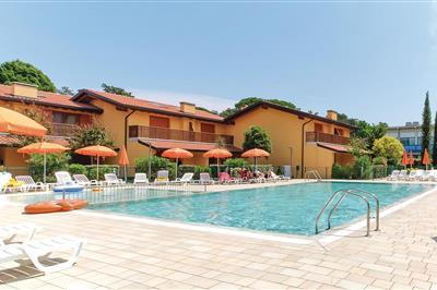 Reihenhaus in einer schönen Residenz bei Lignano Sabbiadoro mit ausgestattetem Pool. Der Strand ist 600 m und das Zentrum von Lignano Sabbiadoro etwa 500 m entfernt. Im Erdgeschoss: Wohnzimmer mit Kochnische, Esstisch, Doppelschlafsofa und Bad mit Dusche. Auf