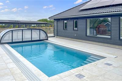 5,0Ferienhaus mit hauseigenem Swimmingpool, Whirlpool, Sauna sowie Freizeitaktivitäten und attraktiver Lage bei Hostrup Strand. Das 20 m² große Pool hat eine tolle Rutsche für die Kinder und bietet sich für Badespaß mit der Familie an. Zur Entspannung stehen