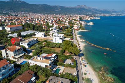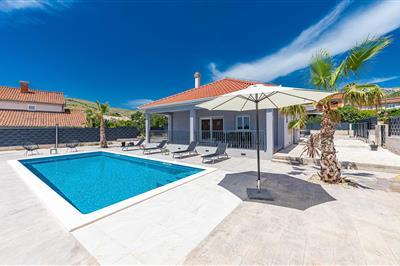 5,0Moderne Ferienvilla mit Pool in Kastel Stafilic, ist ideal für den gemeinsamen Urlaub mehrerer Familien. Das Haus erstreckt sich auf drei Etagen, wobei das Erdgeschoss mit den oberen Etagen über eine Außentreppe verbunden ist. Im Erdgeschoss liegen drei