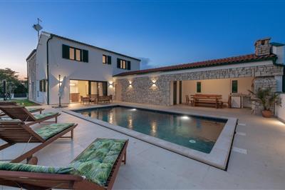 Dieses komfortable Ferienhaus mit Pool befindet sich im ruhigen istrischen Dorf Krnica. Der nächste Strand befindet sich im benachbarten Fischerdorf Luka Krnica. Die Anlage ist einfach und bequem eingerichtet und die Gegend selbst bietet eine Fülle von