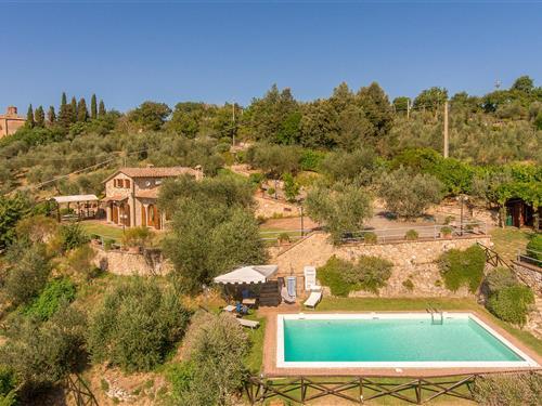 Genießen Sie Sonne und Luxus in diesem traumhaften Ferienhaus mit Pool. Diese großzügige Villa begeistert mit einer geschmackvollen Mischung aus modernem Design und toskanischer Gemütlichkeit. Helle Räume, freiliegende Holzbalken und elegante Möbel schaffen
