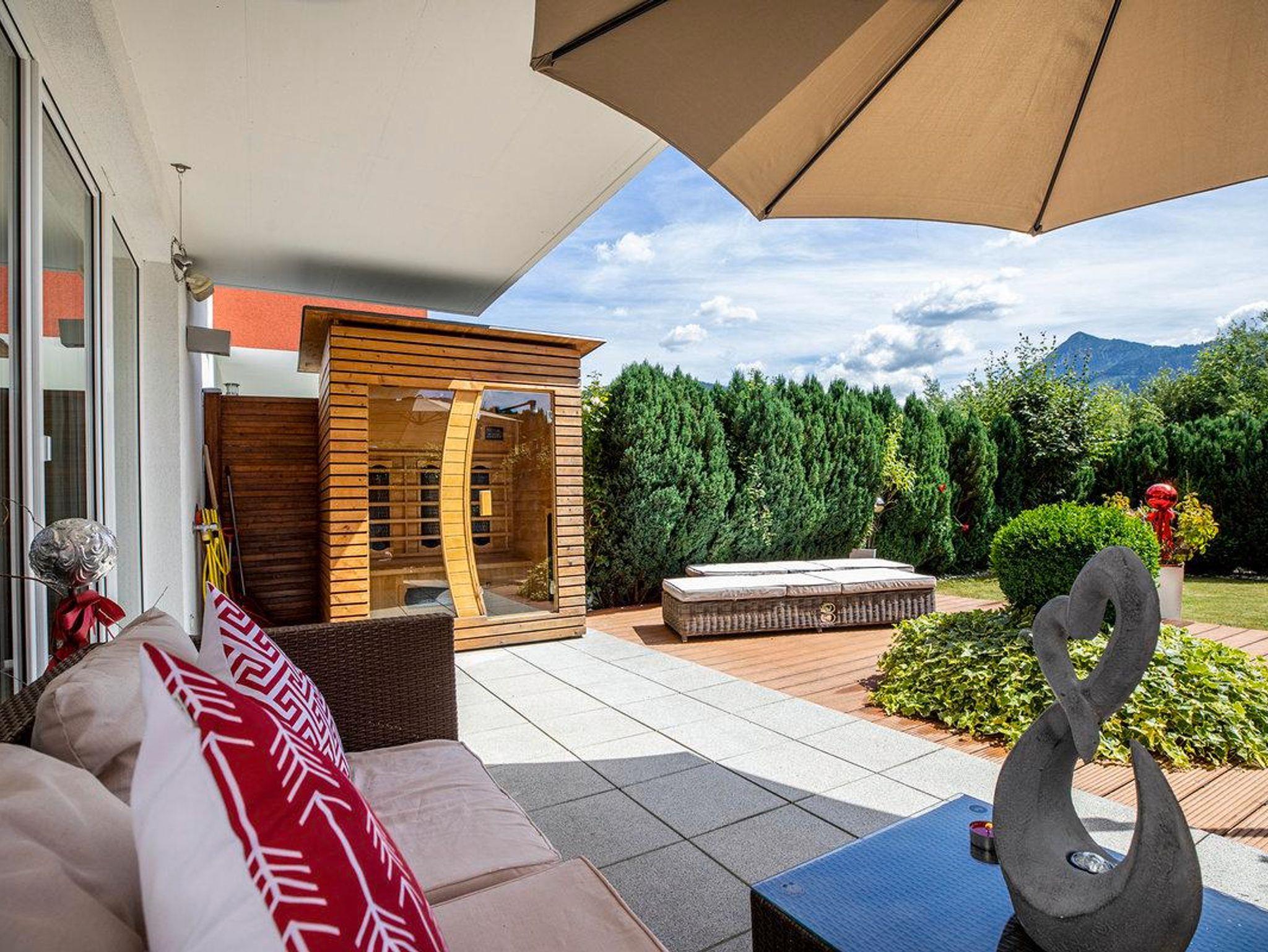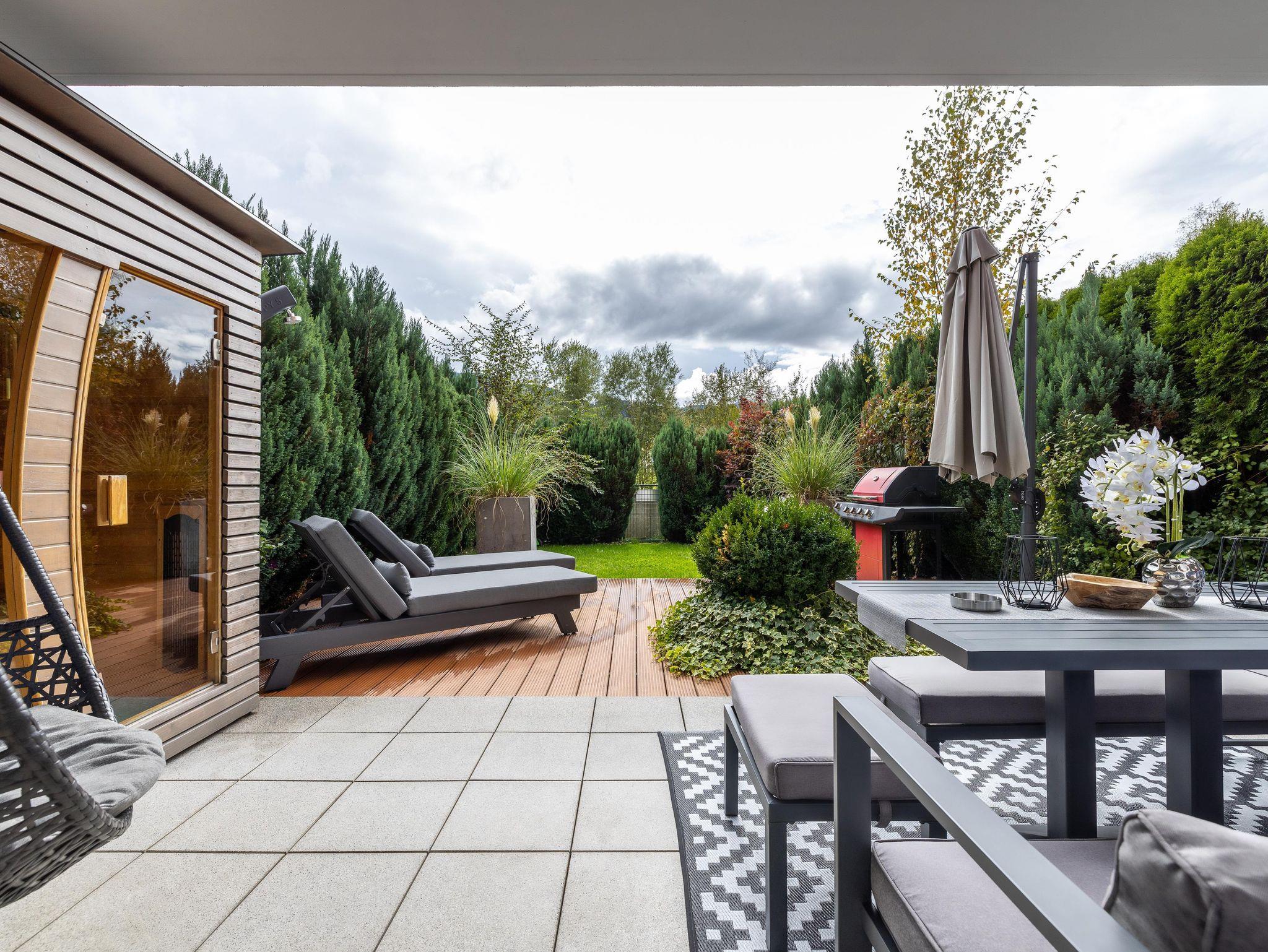 Maisonette Wohnung auf 75 m² über 2 Etagen | 2 getrennte Schlafzimmer, Bad (Badewanne/Dusche-Kombination) mit WC | Separates WC | Outdoor Infrarot Kabine | Terrasse, Garten, Balkon | Südseitig | privater Abstellraum