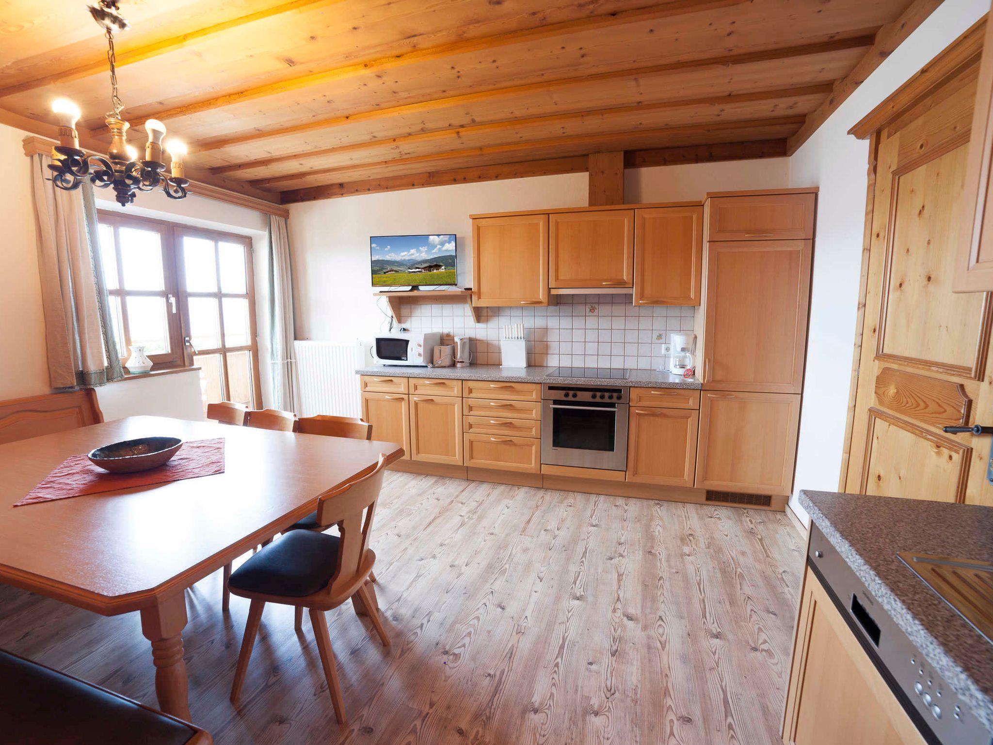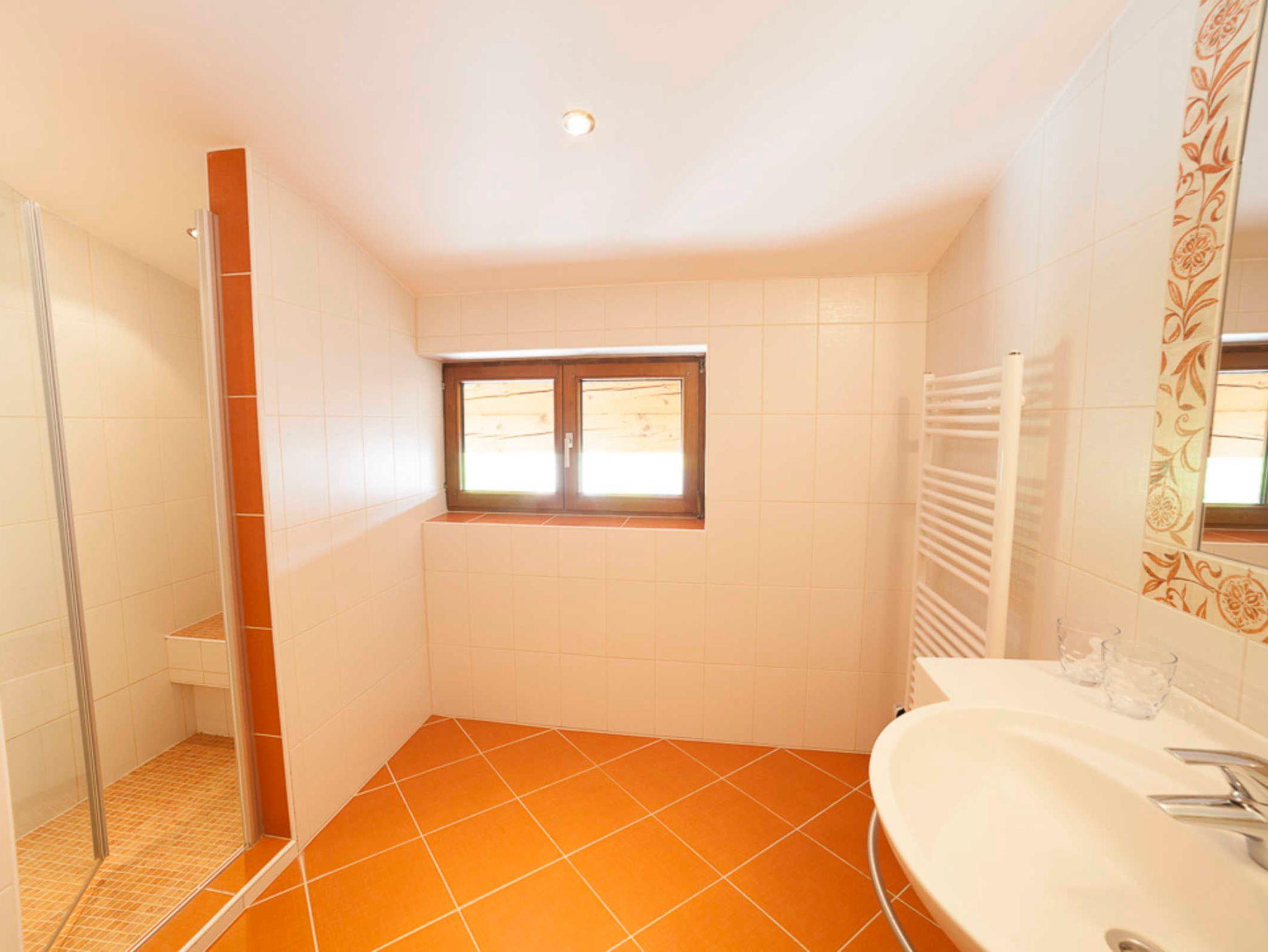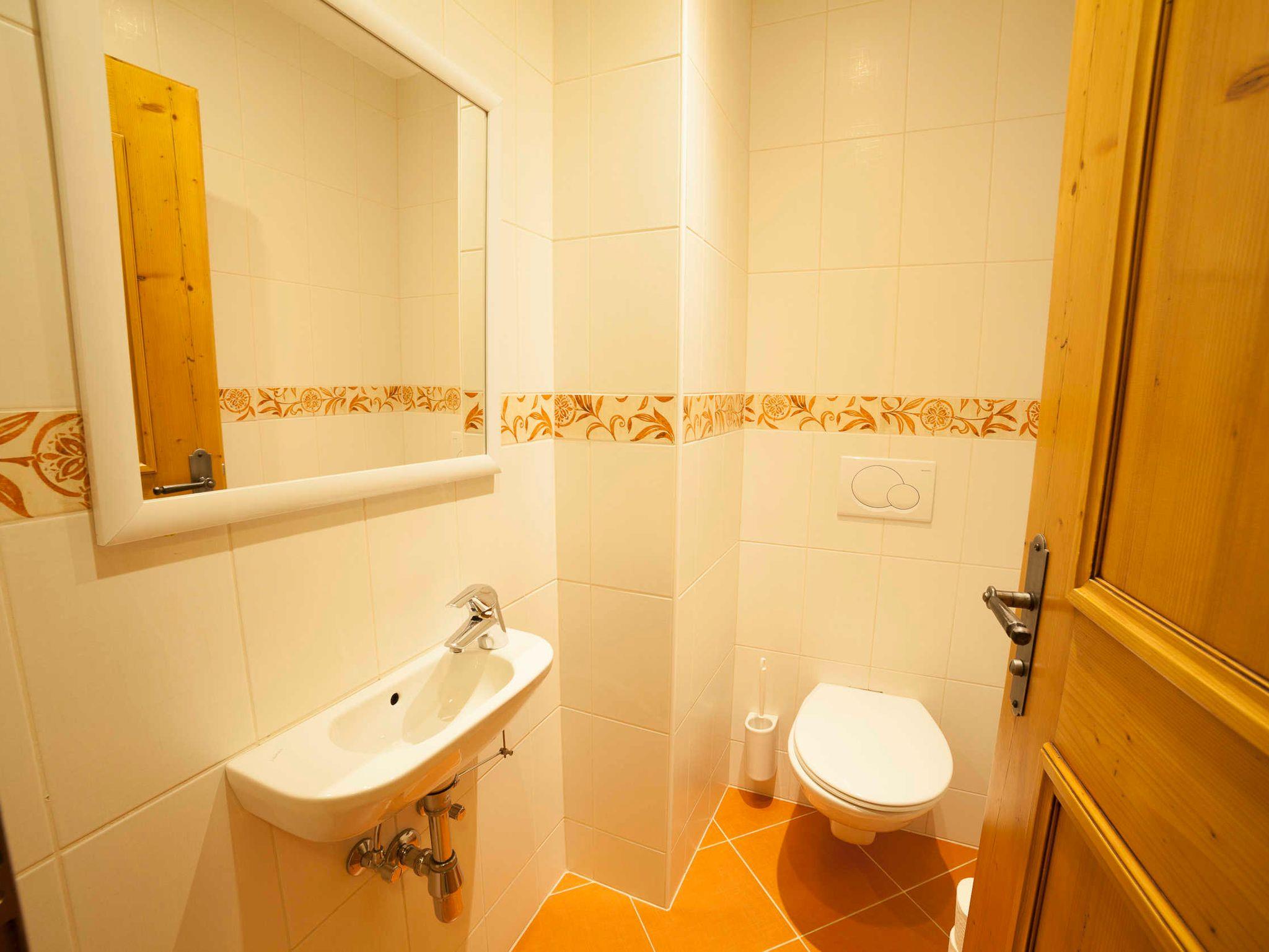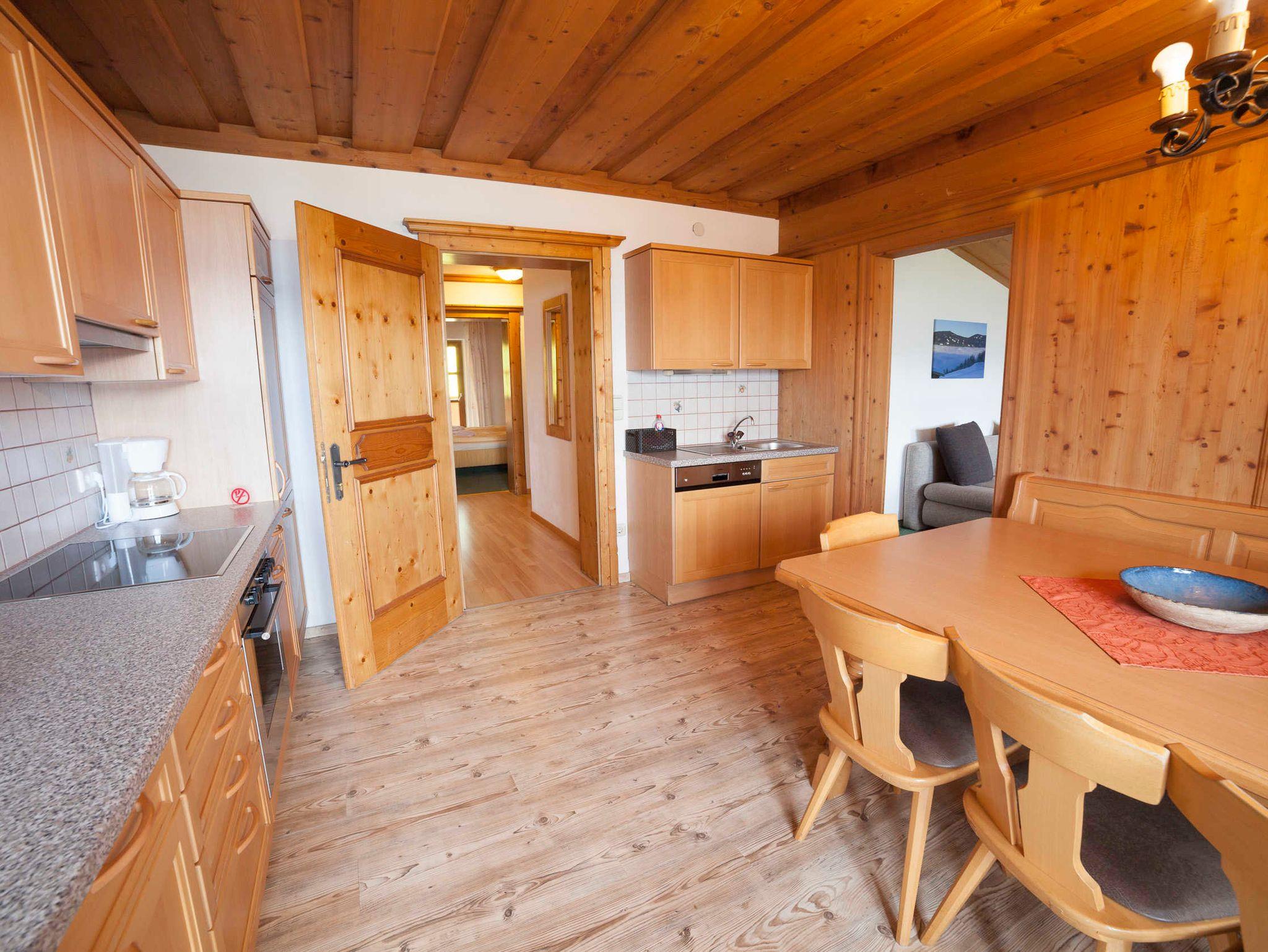 Eine Küche mit gemütlicher großer Sitzecke und 2 Balkone, davon einer mit Blick auf die Skipiste bzw. zum hauseigenen See und der andere mit Blick ins Tal. Ein Badezimmer mit Doppelwaschbecken und Dusche, WC ist extra.