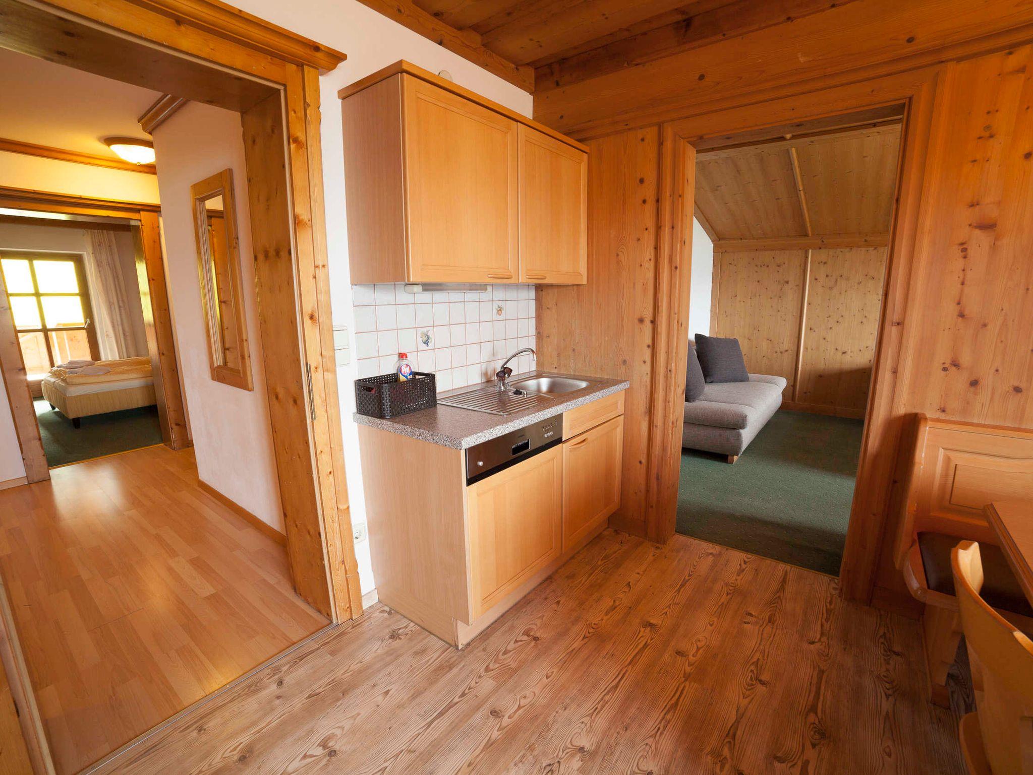 Ein Appartement für 6-8 Personen mit 3 getrennten Schlafzimmern, davon einmal mit 4 Betten und das Zweite mit 2 Betten, ein Schlafzimmer mit Doppelbett hat eine Ausziehcouch.