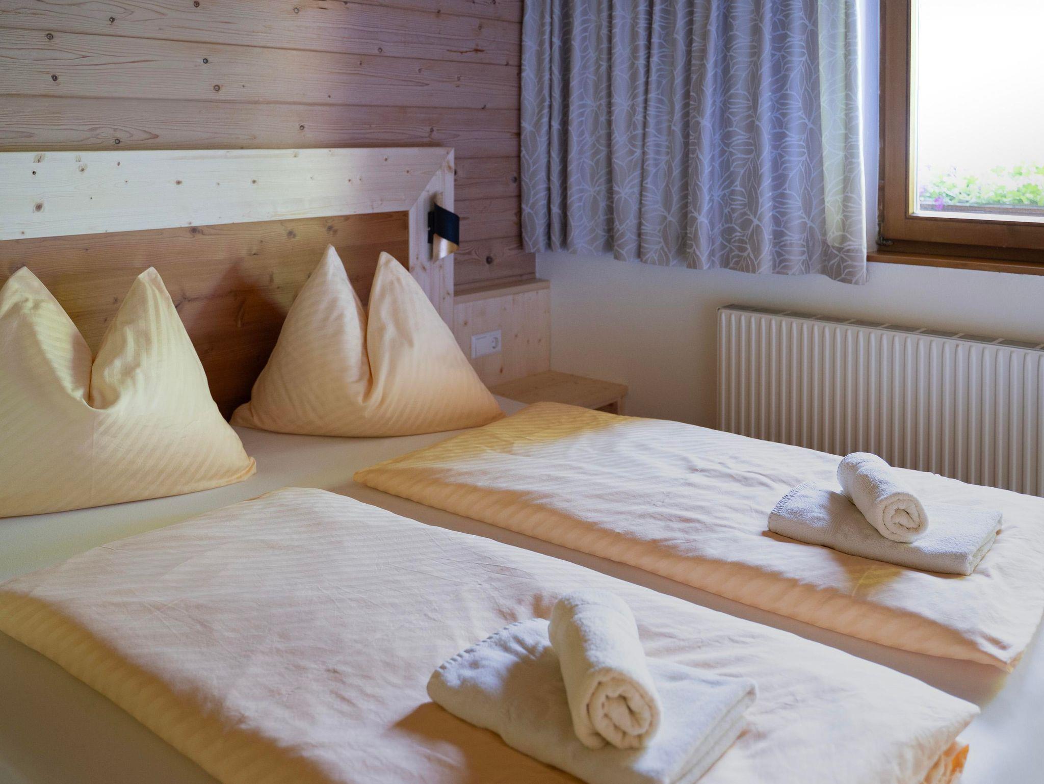 Gemütlich wohnen in Appartements für 2-8 Personen, mit bis zu 3 Schlafzimmern, teilweise mit Kachelofen und Balkon mit Bergblick, gratis Wlan. Im Winter 3x wöchtentlich Saunaabend im Haus. Die zentrale, aber doch ruhige Lage, garantiert eine sehr gute Erreichbarkeit der umliegenden Skigebiete und ist gleichzeitig perfekter Start für Ihre Wanderungen in den Bergen. Unsere Produkte aus der eigenen Landwirtschaft, wie frische Milch, Eier und vieles mehr liefern wir gerne ins Haus.