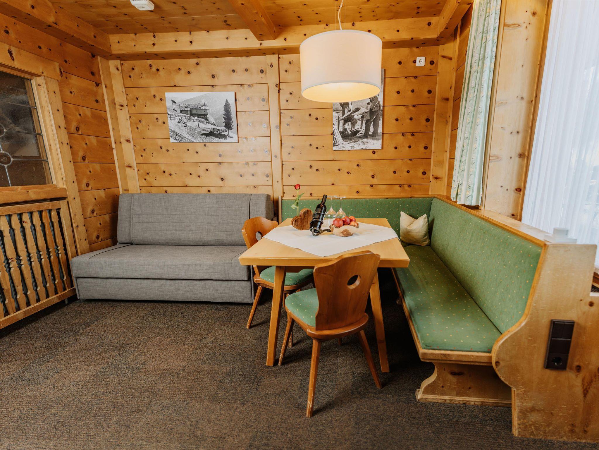 Zirbe, die Königin der Alpen. Aus diesem hochwertigen Holz wurden die Wände dieses Apartments gefertigt und geben ihm den Namen!