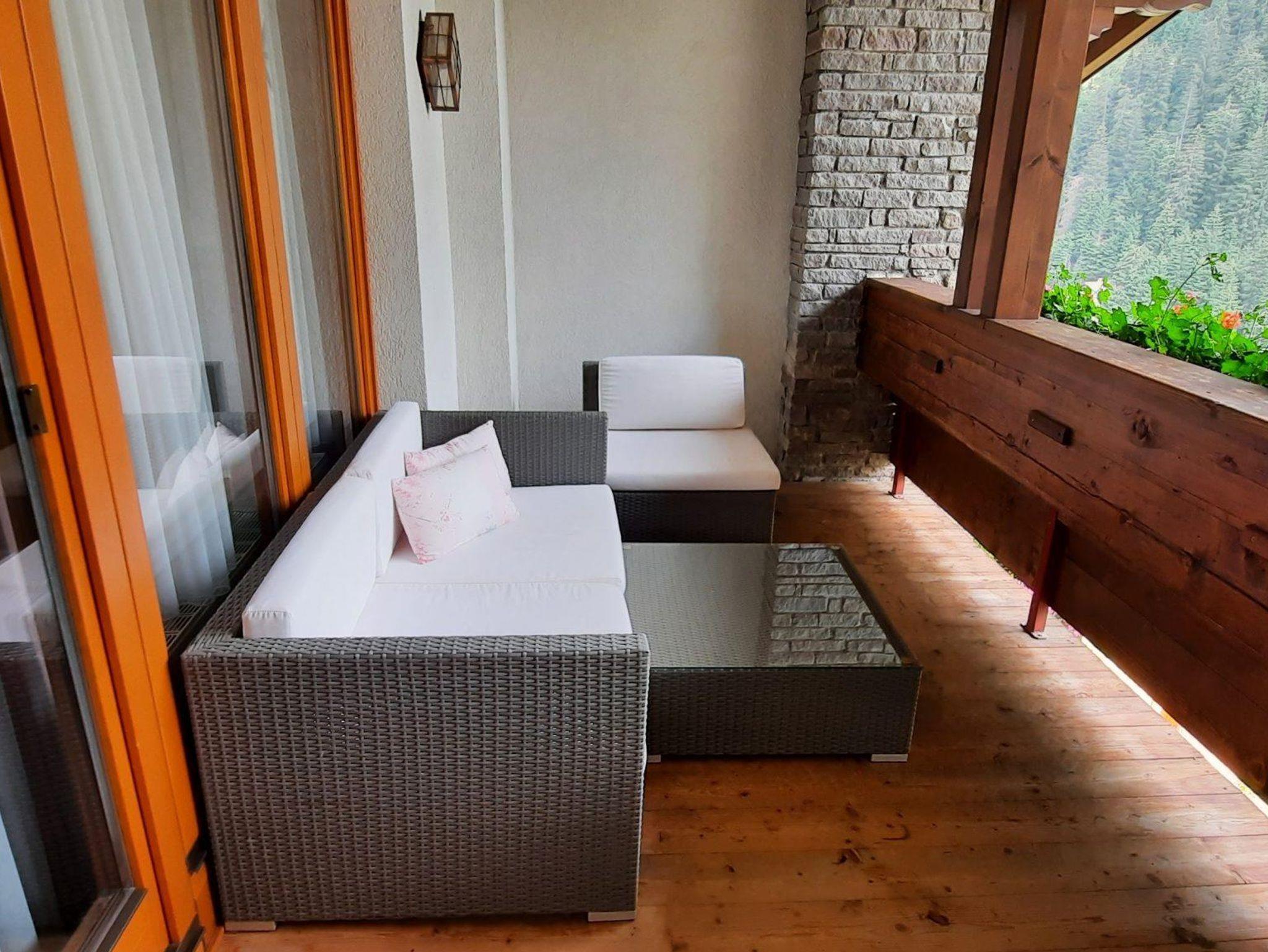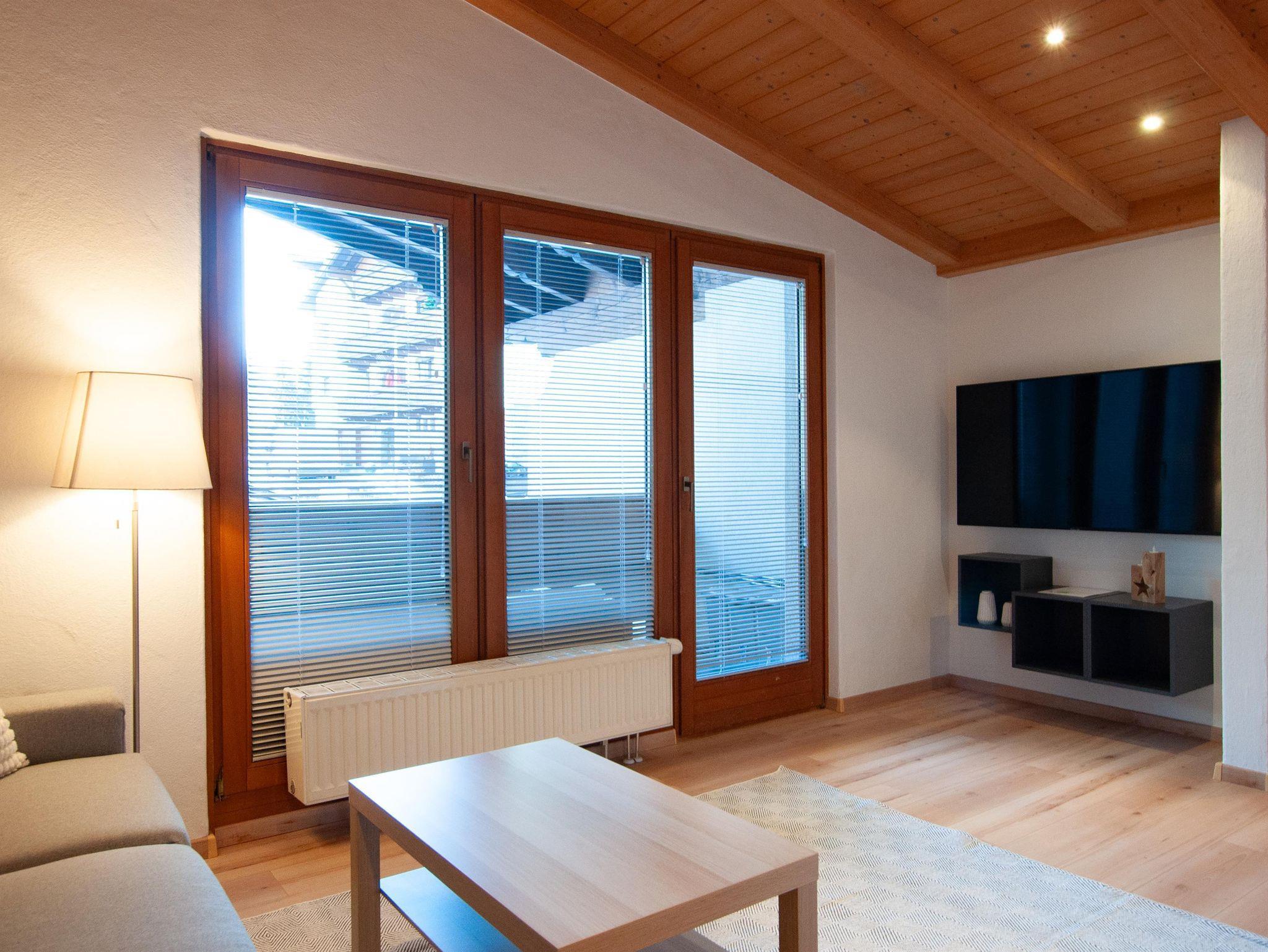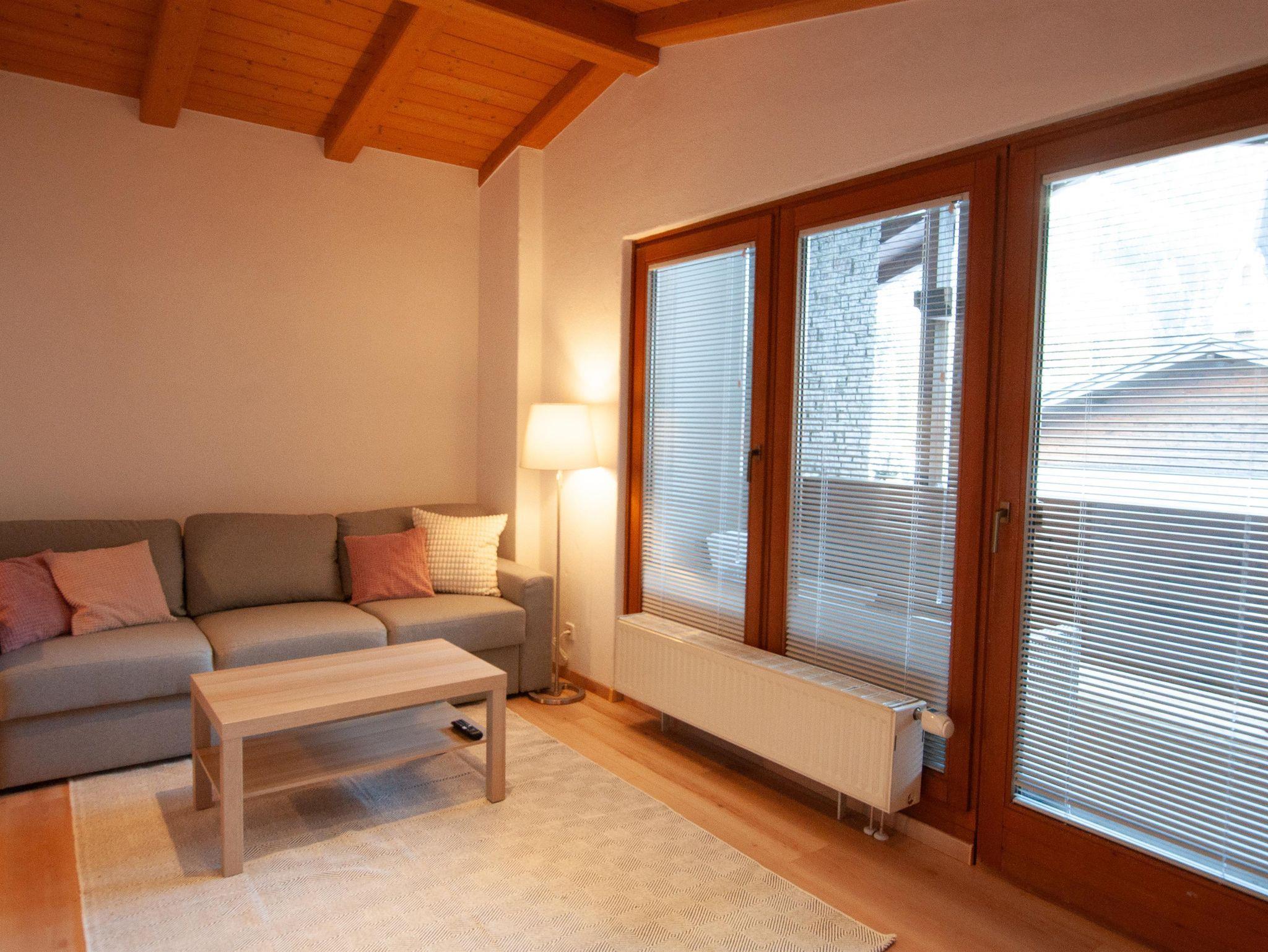 Gemütlichkeit wird in dieser Ferienwohnung gross geschrieben. Das Wohnzimmer sowie das Schlafzimmer sind mit Teppichböden versehen und geben eine heimelige Atmosphäre. Der sehr grosse Balkon gibt im Sommer eine idyllische Frühstücksmöglichkeit.