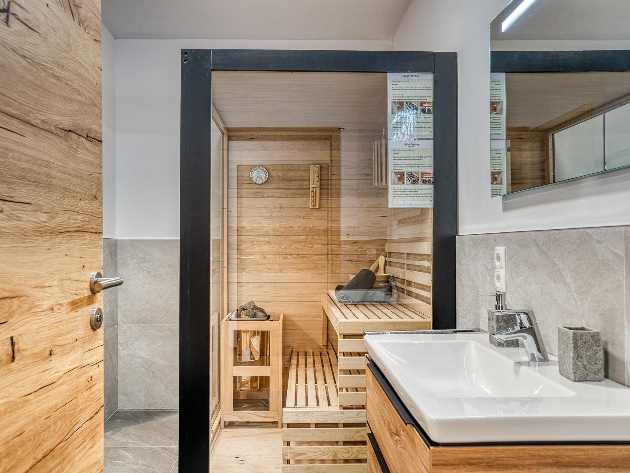 Ein wahres Highlight stellt die private Sauna im Badezimmer dar. Nach einem ereignisreichen Tag lässt es sich hier so richtig entspannen.