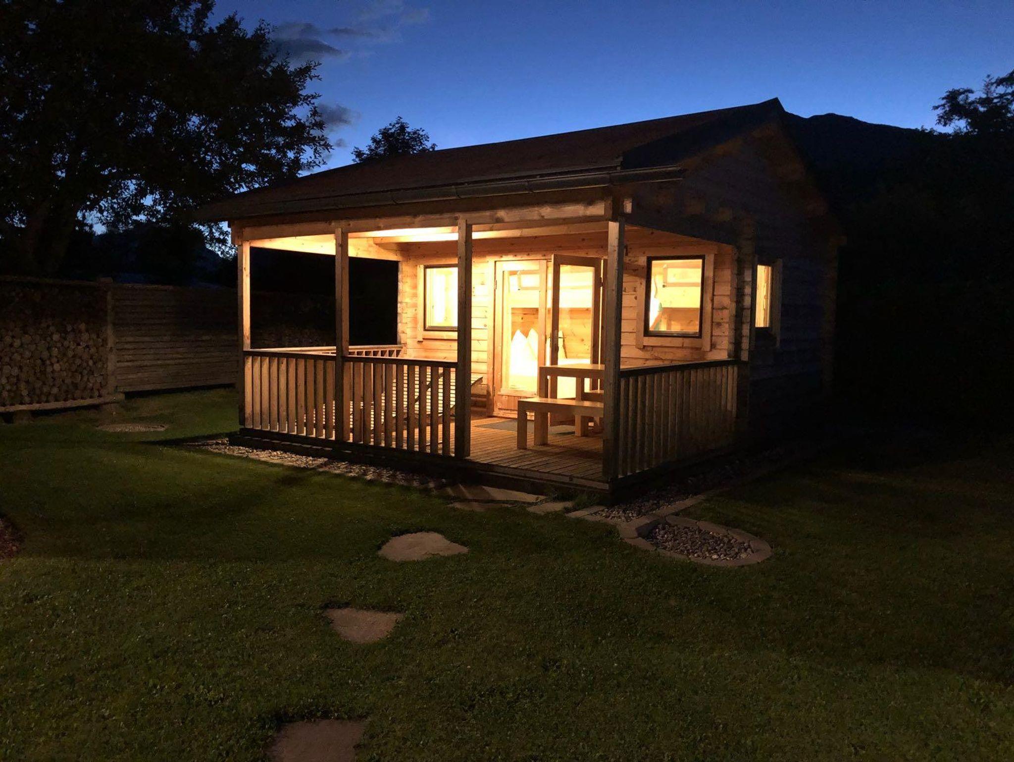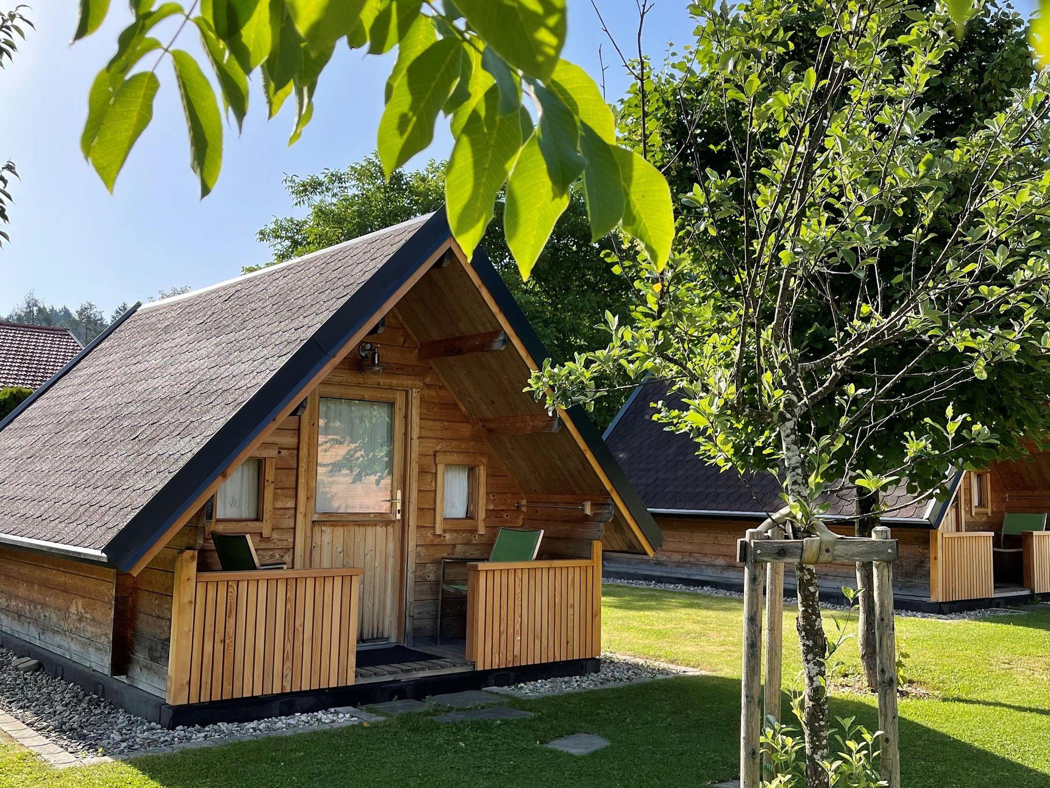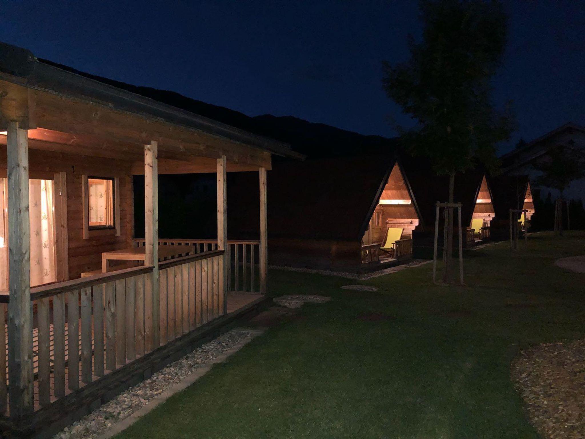 3 Einzelbetten in gemütlichen Holzhäuschen mit eigenem Balkon, der neu gestaltete Sanitärbereich befindet sich unmittelbar daneben.