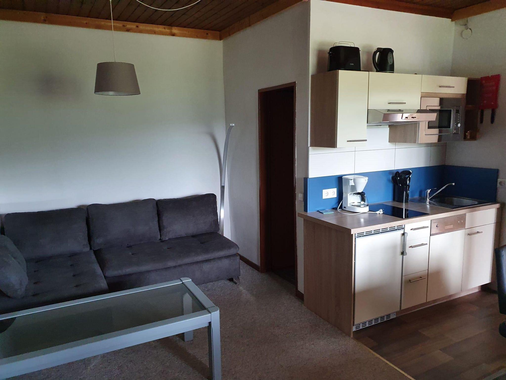 In der modernenWohn/ Küche gibt es einen Kühlschrank, Spülmaschine , Mikrowelle, 2 Ceranplattenplatten , Abzugshaube , Kaffemaschine usw. Geschirr , Gläser , Töpfe und Küchenutensilien sind auch vorhanden. Sollte was spezielles gebraucht werden bitte fragen , dann werden wir eine Lösung finden. Ebenso befindet sich in der Küche eine Essecke.