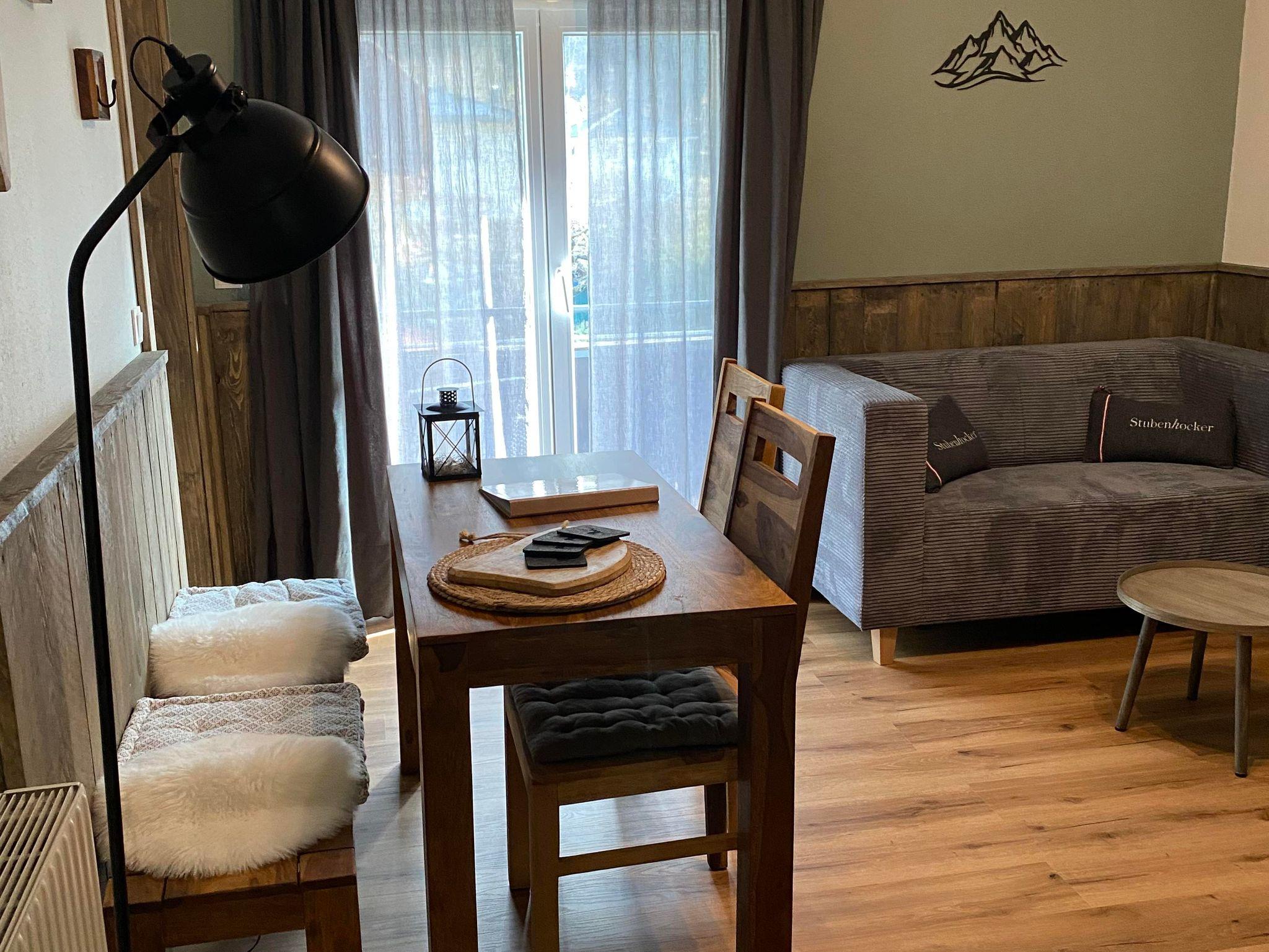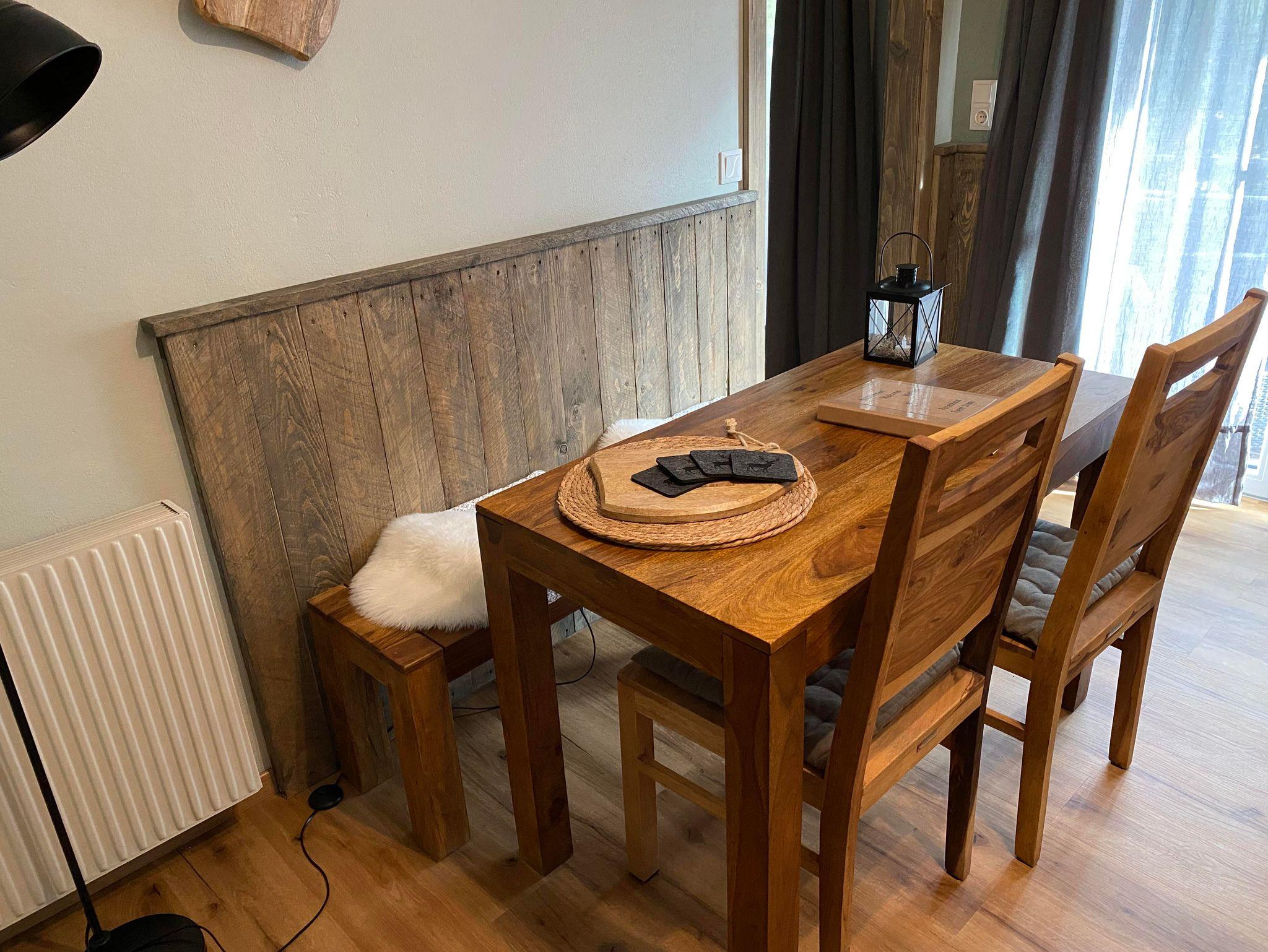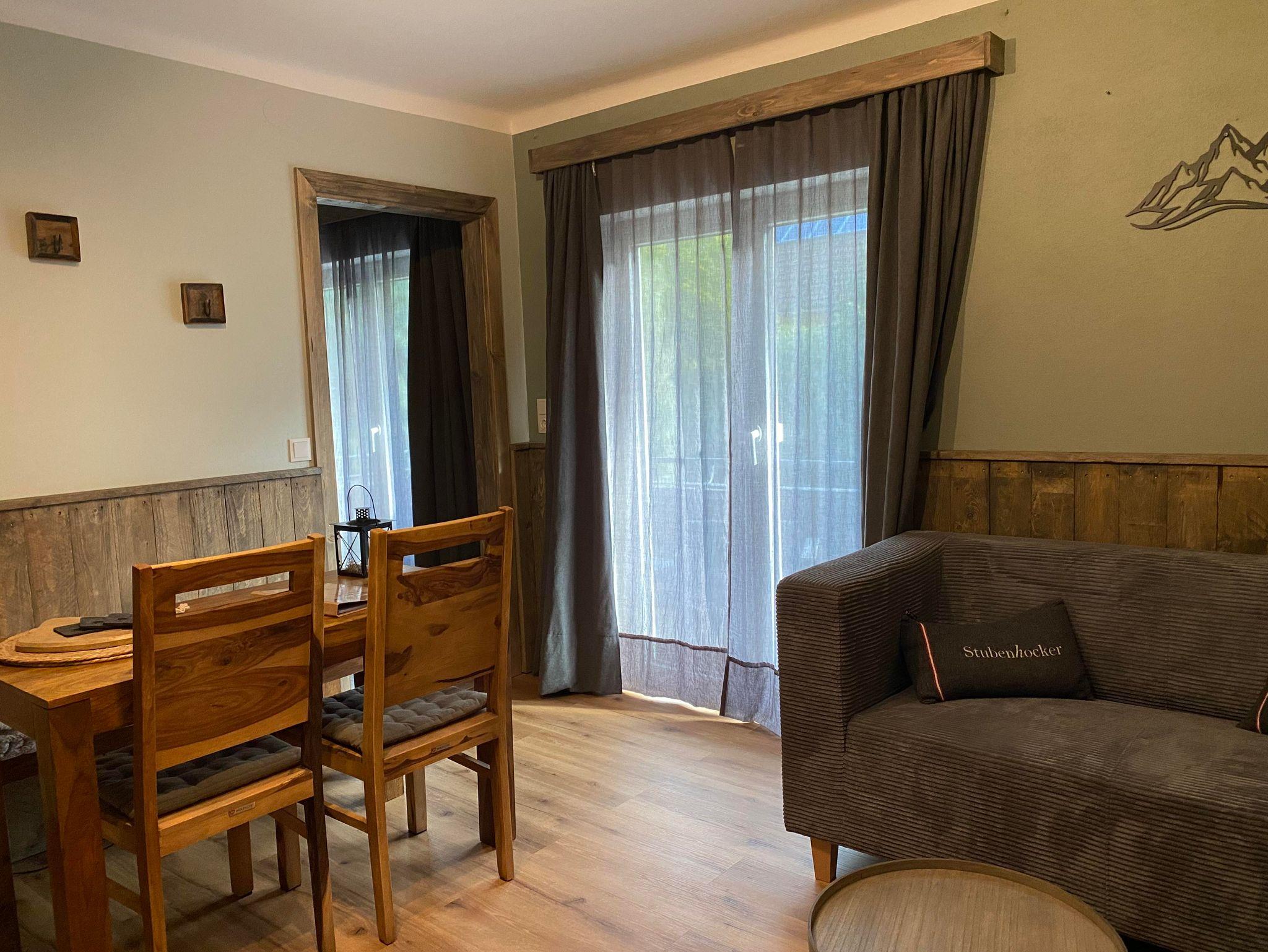 Brettlejause besteht aus einem Flur mit Durchgang zum Badezimmer. Ein Wohn-/Esszimmer mit Sofa und ein separates Schlafzimmer.