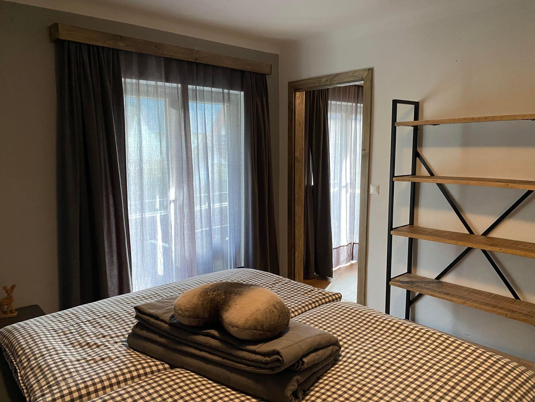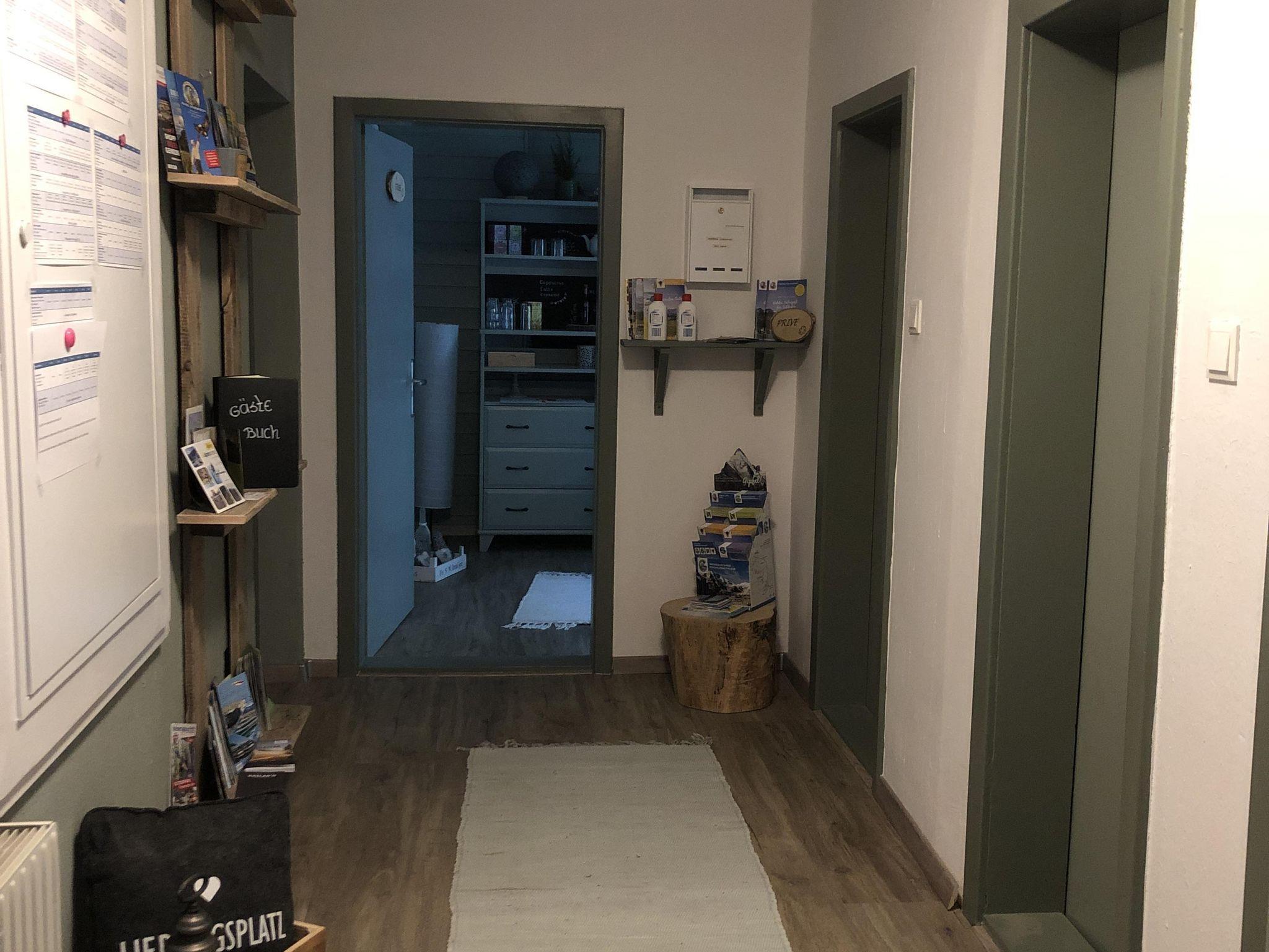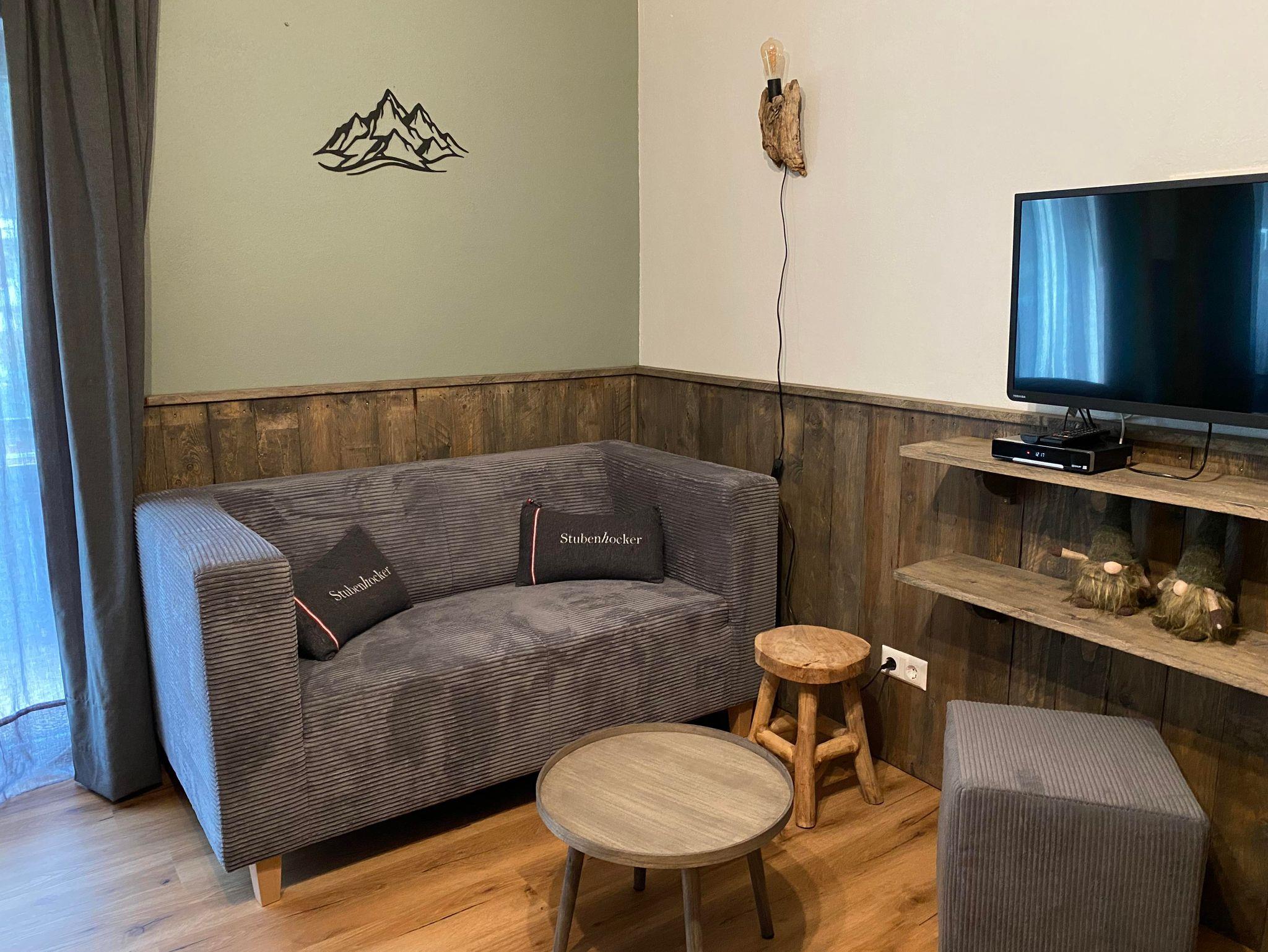 Brettlejause besteht aus einem Flur mit Durchgang zum Badezimmer. Ein Wohn-/Esszimmer mit Sofa und ein separates Schlafzimmer.