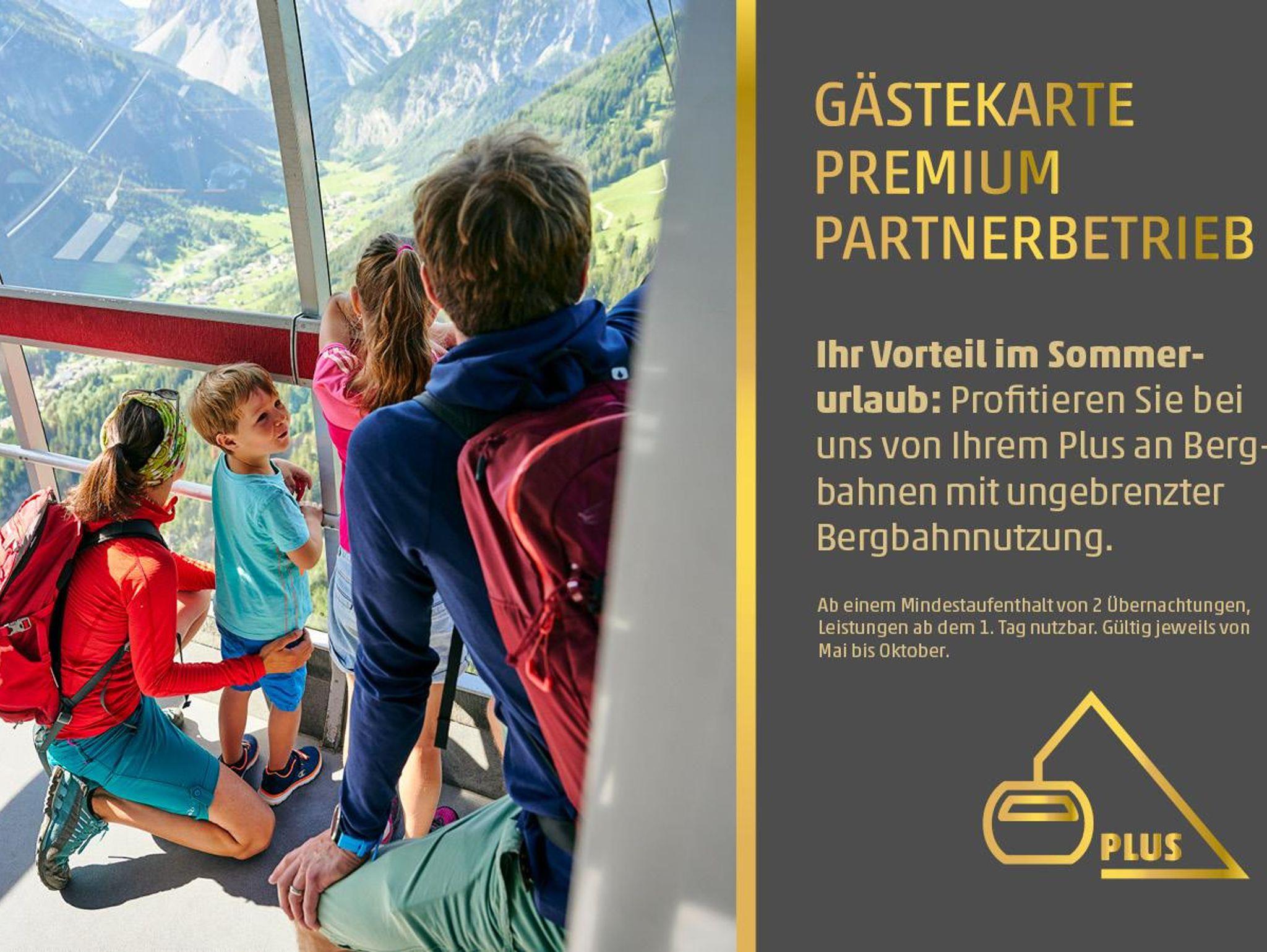 Mit der GÄSTEKARTE PREMIUM ist die Nutzung aller Bahnen in der Region im Sommer kostenfrei (Sonnenkopfbahn Wald a/A, Seekopfbahn Zürs, Rüfikopfbahn Lech, Bergbahn Lech-Oberlech, Petersbodenbahn Lech, Muttersbergbahn Bludenz, Lünserseebahn Brand, Panormabahn Brand, Dorfbahn Brand, Palüdbahn Brand.