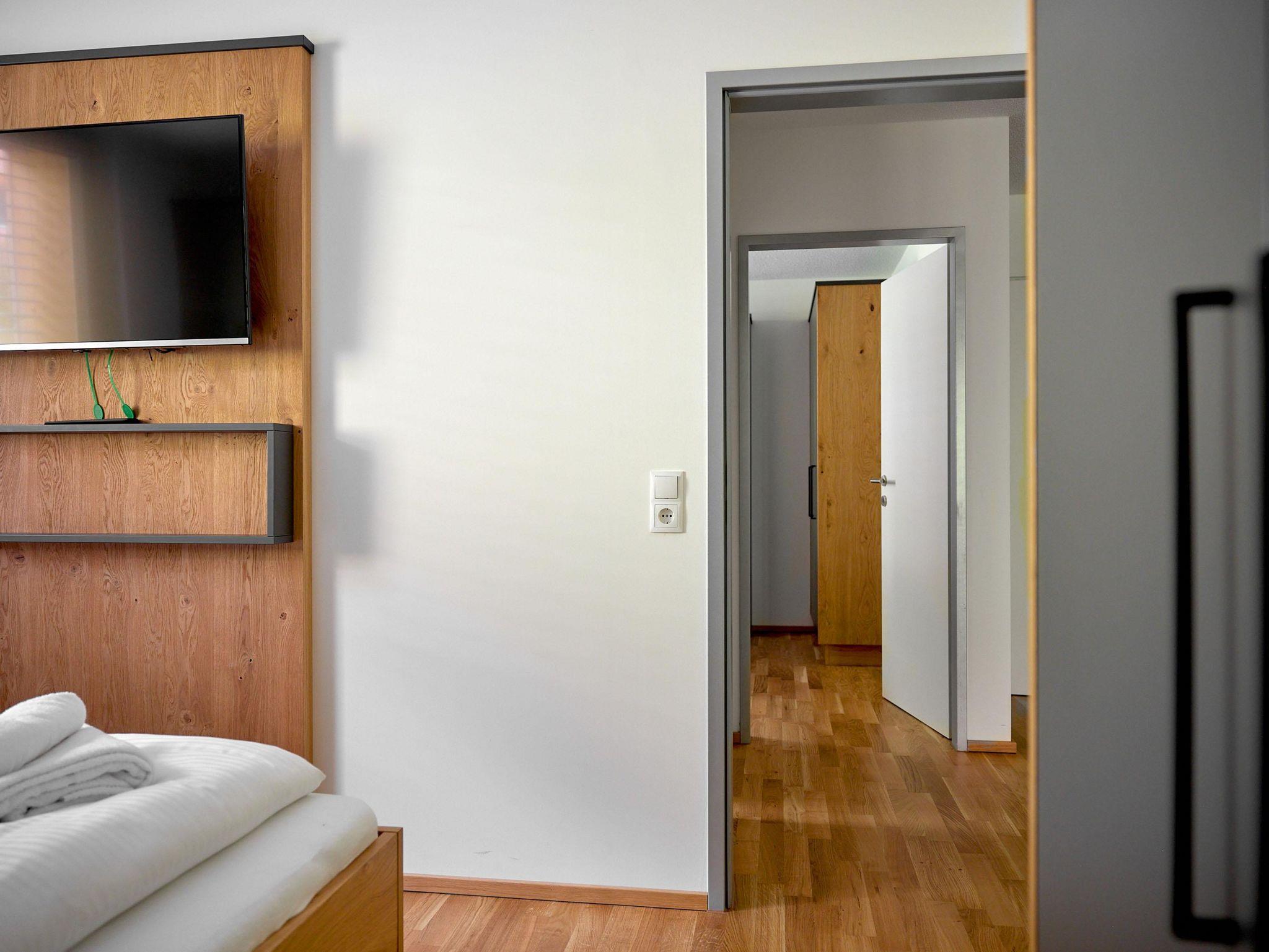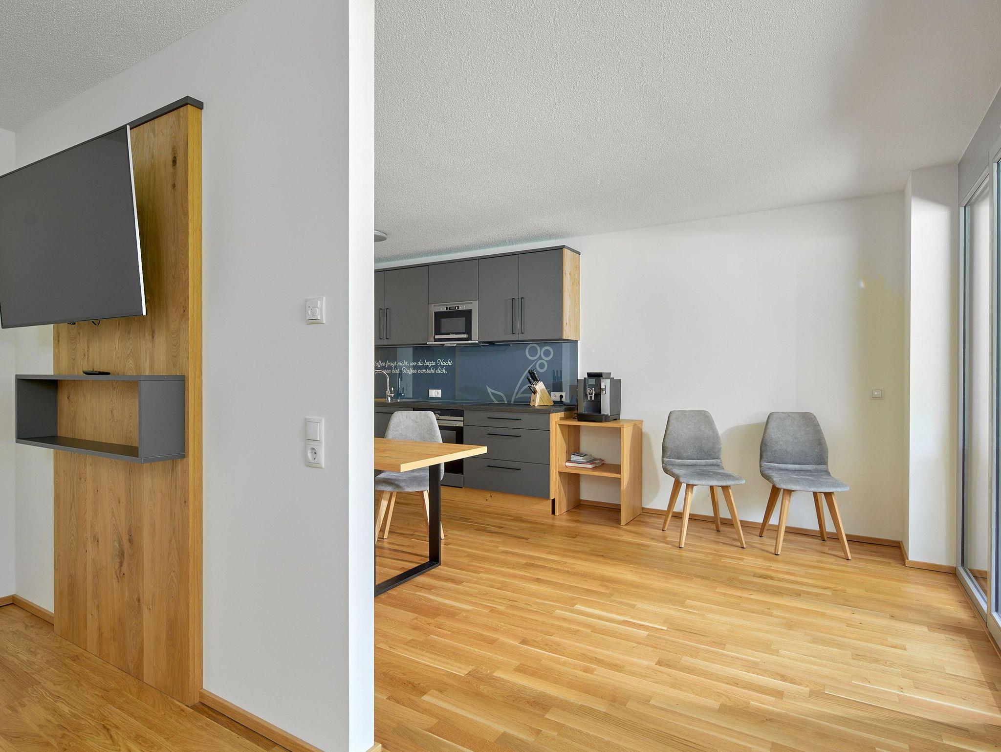 Willkommen in der Zapfig Living Apartment 14, Deinem perfekten Rückzugsort für einen erholsamen Aufenthalt. Die 80 m² Unterkunft im 1.Stock bietet ein gemütliches Wohnzimmer inkl. ausziehbaren Kingsizebett mit Smart-TV, 2 Schlafzimmer (Kingsizebett+ausziehbares Einzelbett+Smart-TV) sowie eine voll ausgestattete Küche. Die 2 Badezimmer verfügen über Dusche+WC. Genieße den Komfort einer eigenen Unterkunft+entspanne in alpiner Umgebung. Vom Balkon mit Liegenstühlen besteht Bergblick.