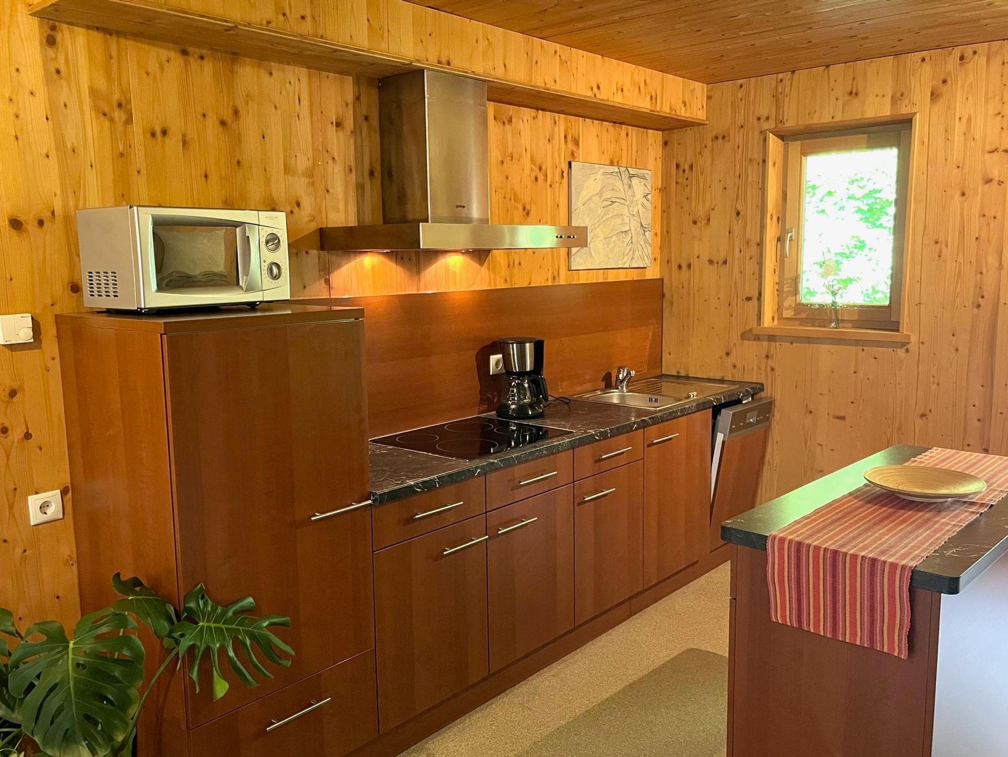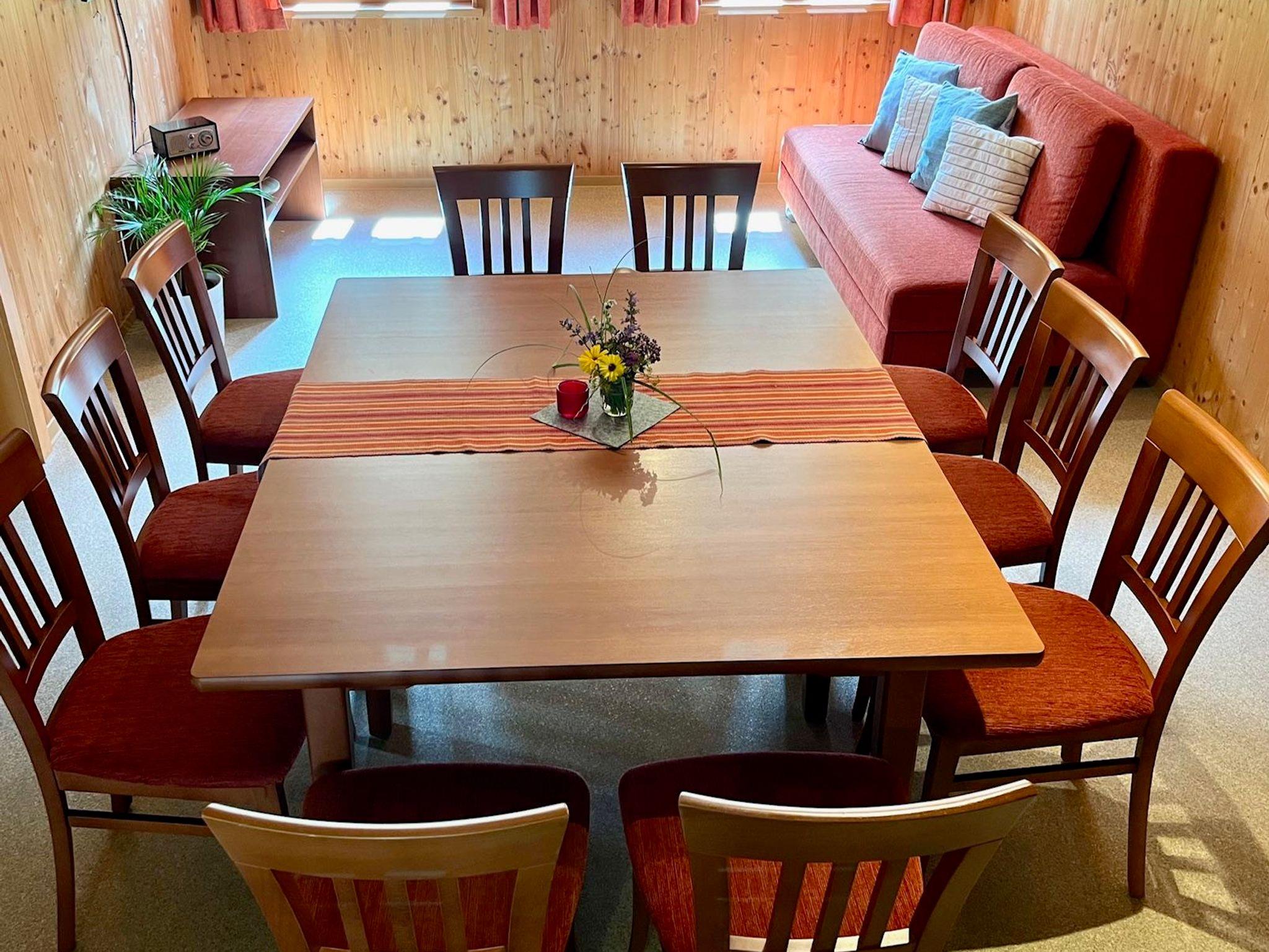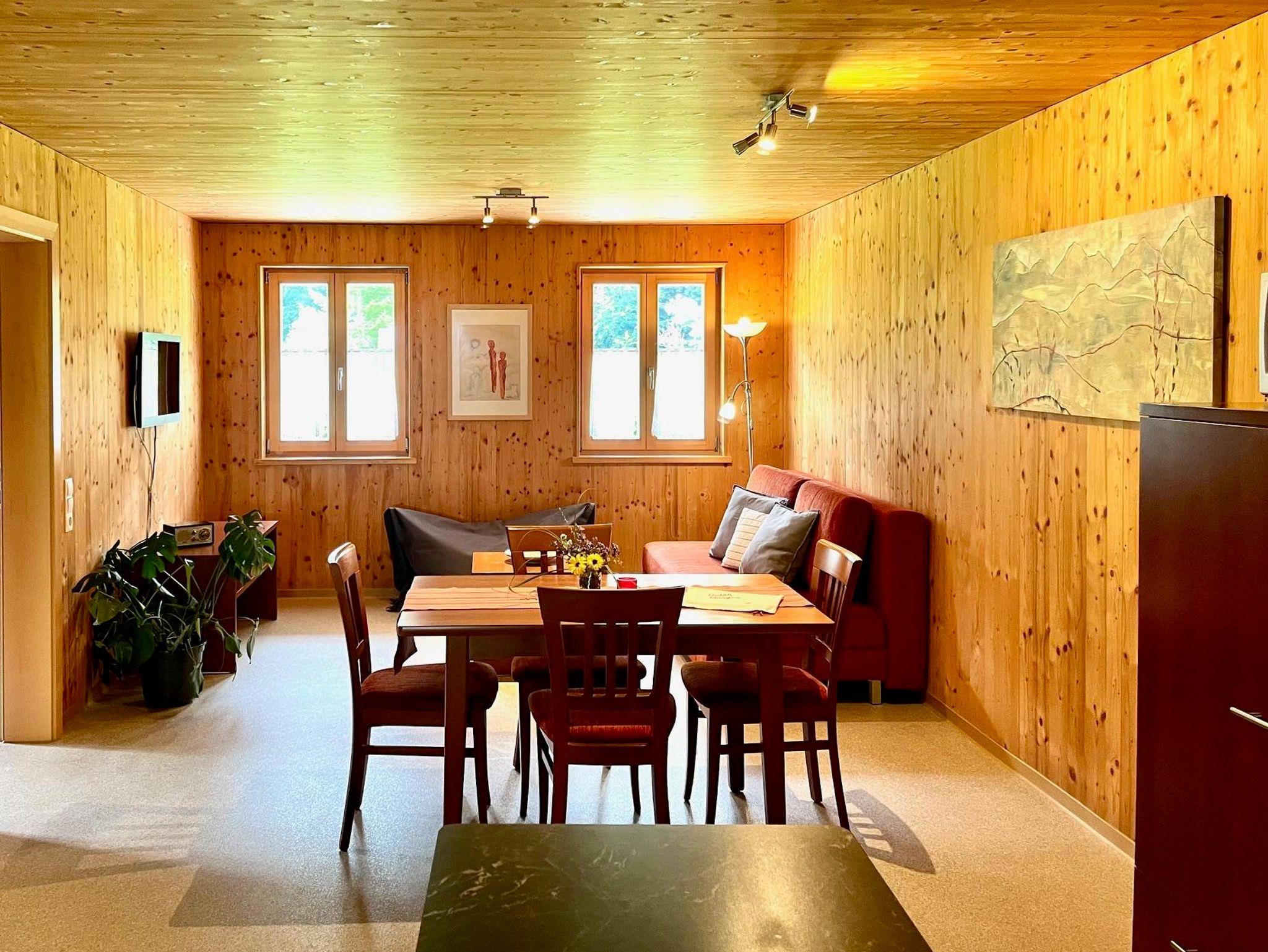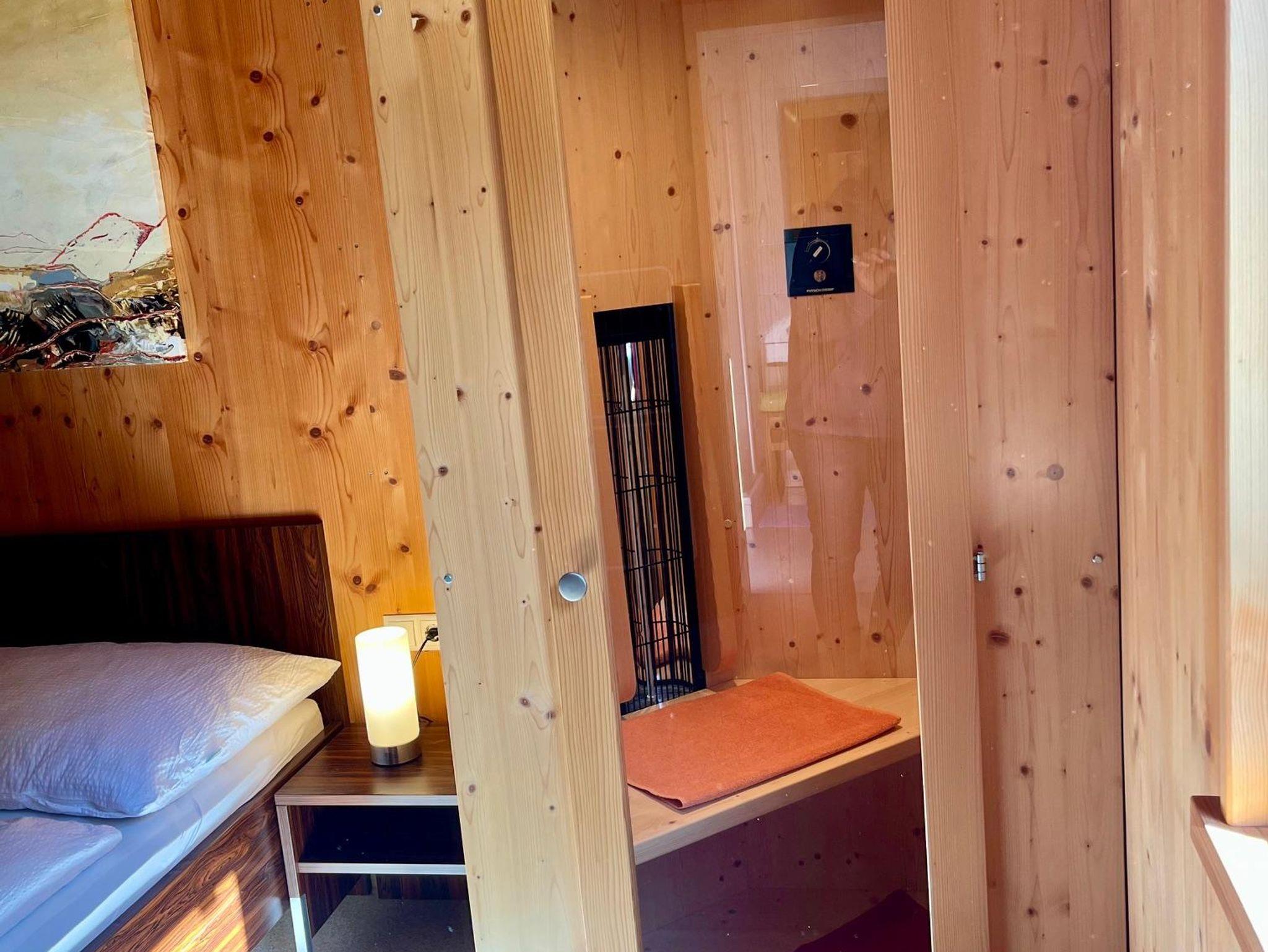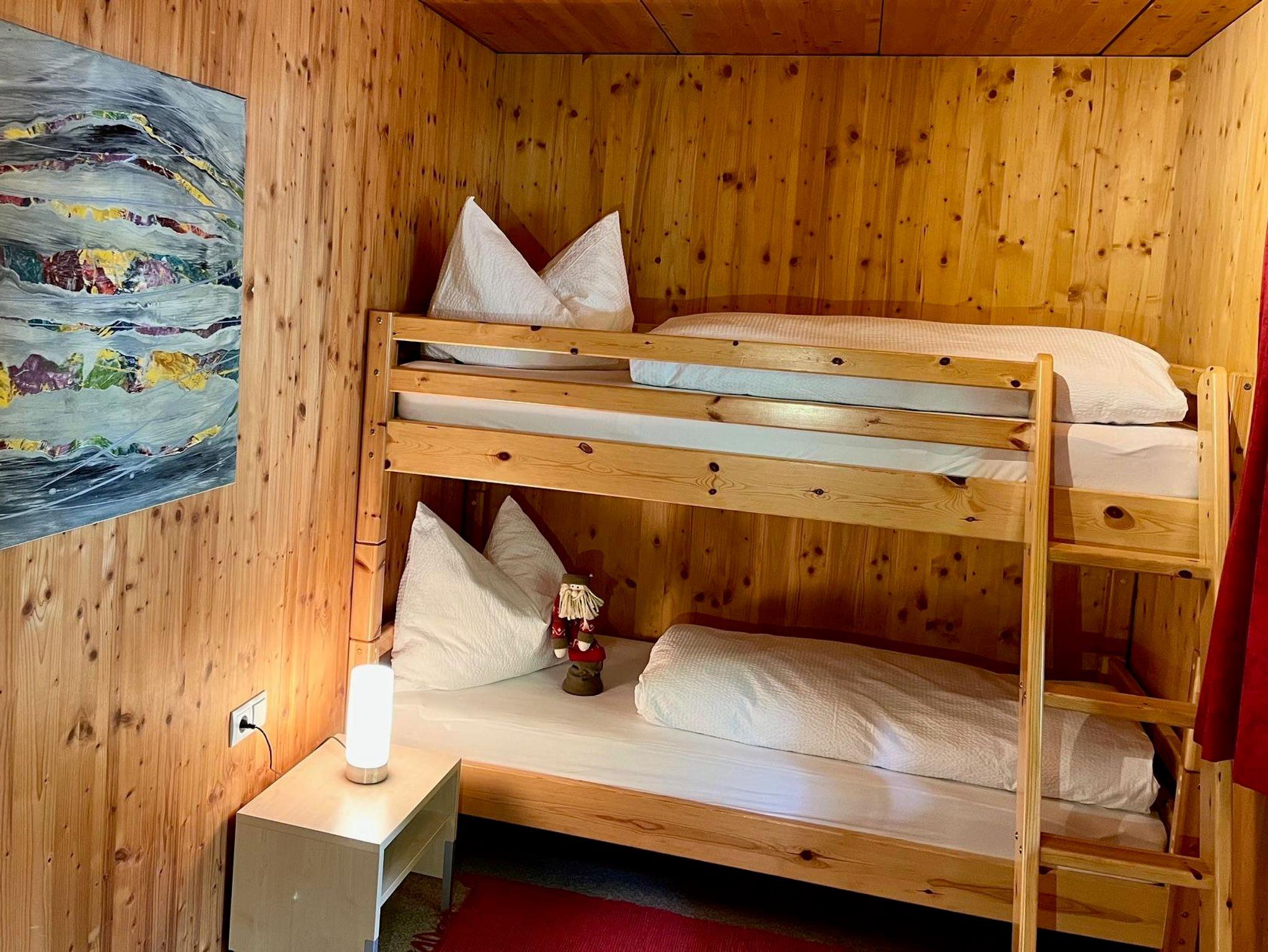 Genießen Sie einen guten Bergschlaf im einem Doppelzimmer mit Infrarotsauna, sowie einem Stockbettzimmer. Die großzügige Wohnküche steht für gemeinsame Essen und gemütliche Familienzeit. Zusätzlich stehen zwei Duschen mit WC zur Verfügung.