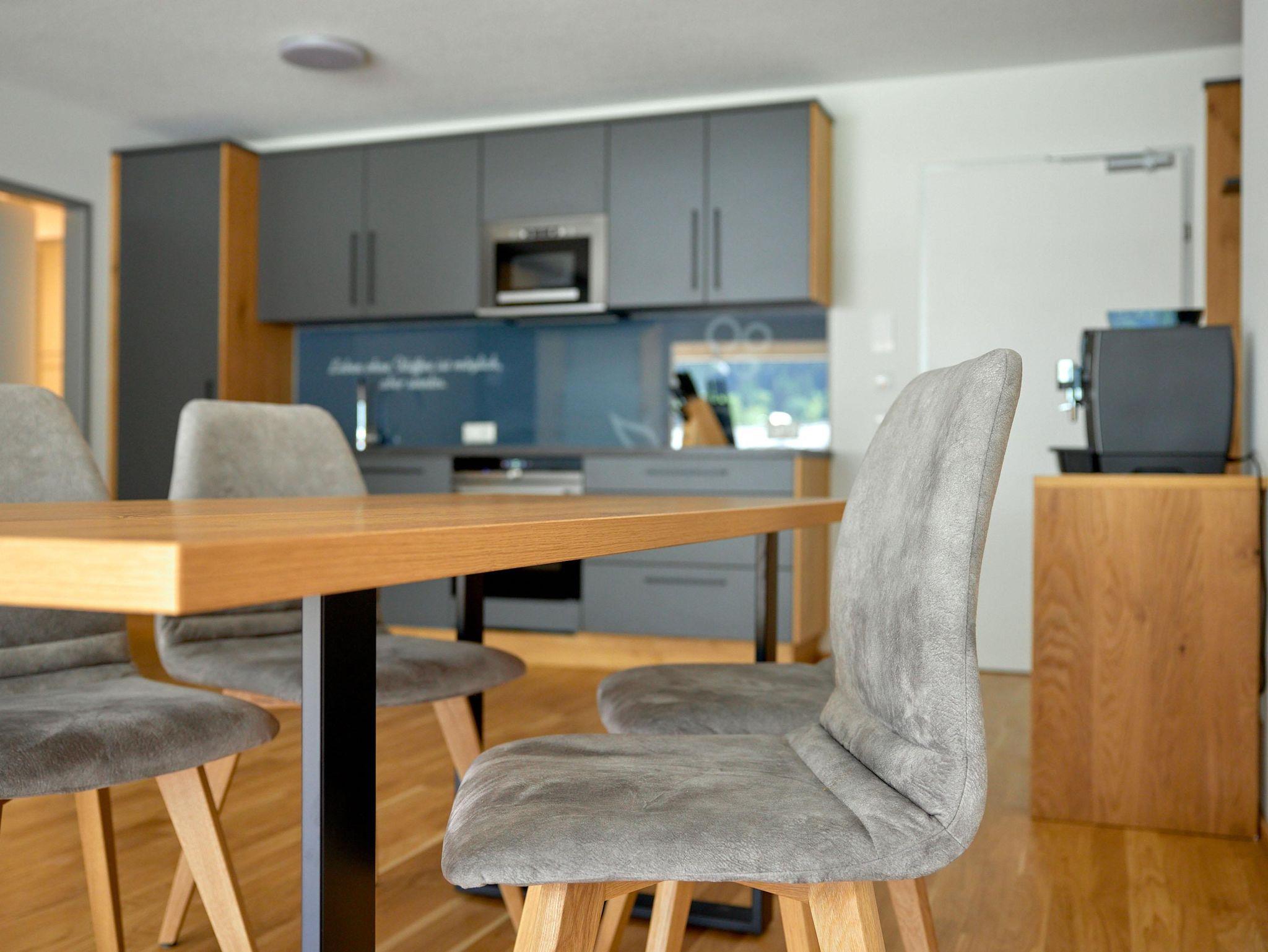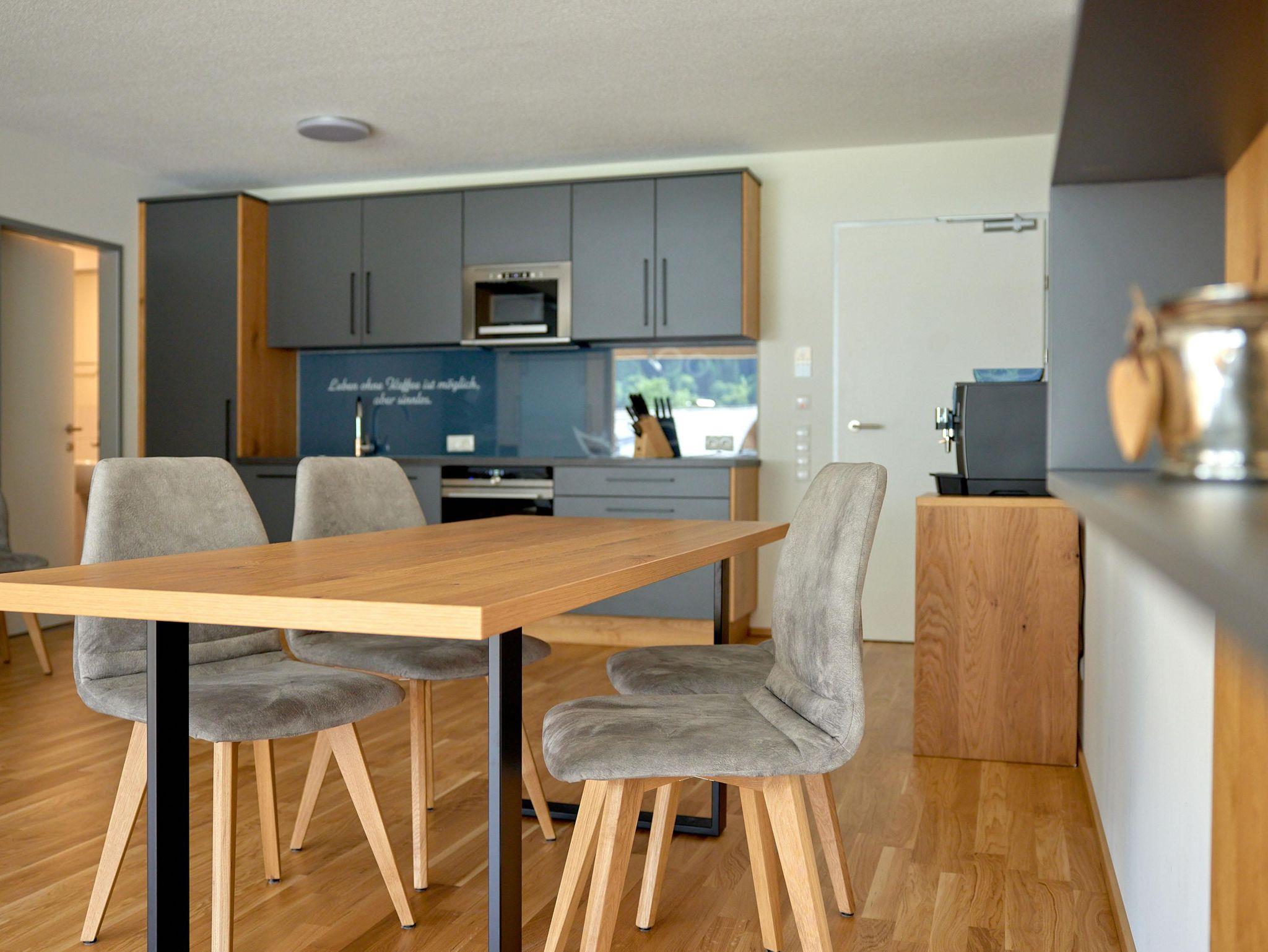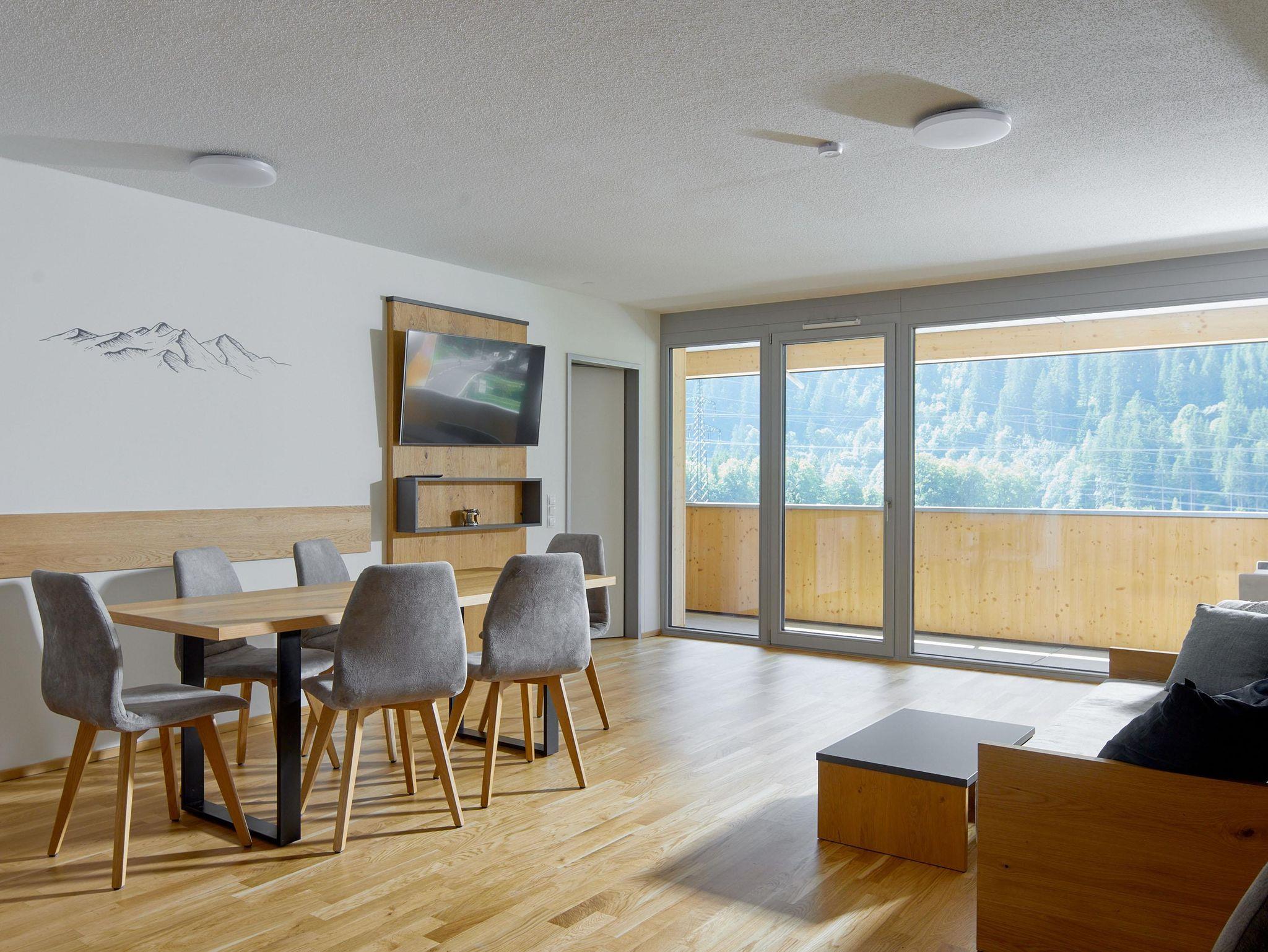 Willkommen im Zapfig Living Apartment 33, Deinem perfekten Rückzugsort für einen erholsamen Aufenthalt. Die 80 m² Unterkunft im 2.Stock bietet ein gemütliches Wohnzimmer inkl. ausziehbaren Kingsizebett mit Smart-TV, 2 Schlafzimmer (Kingsizebett+ausziehbares Einzelbett+Smart-TV) sowie eine voll ausgestattete Küche. Die 2 Badezimmer verfügen über Dusche und WC. Genieße den Komfort einer eigenen Unterkunft+entspanne in alpiner Umgebung. Vom Balkon mit Liegenstühlen besteht Bergblick.