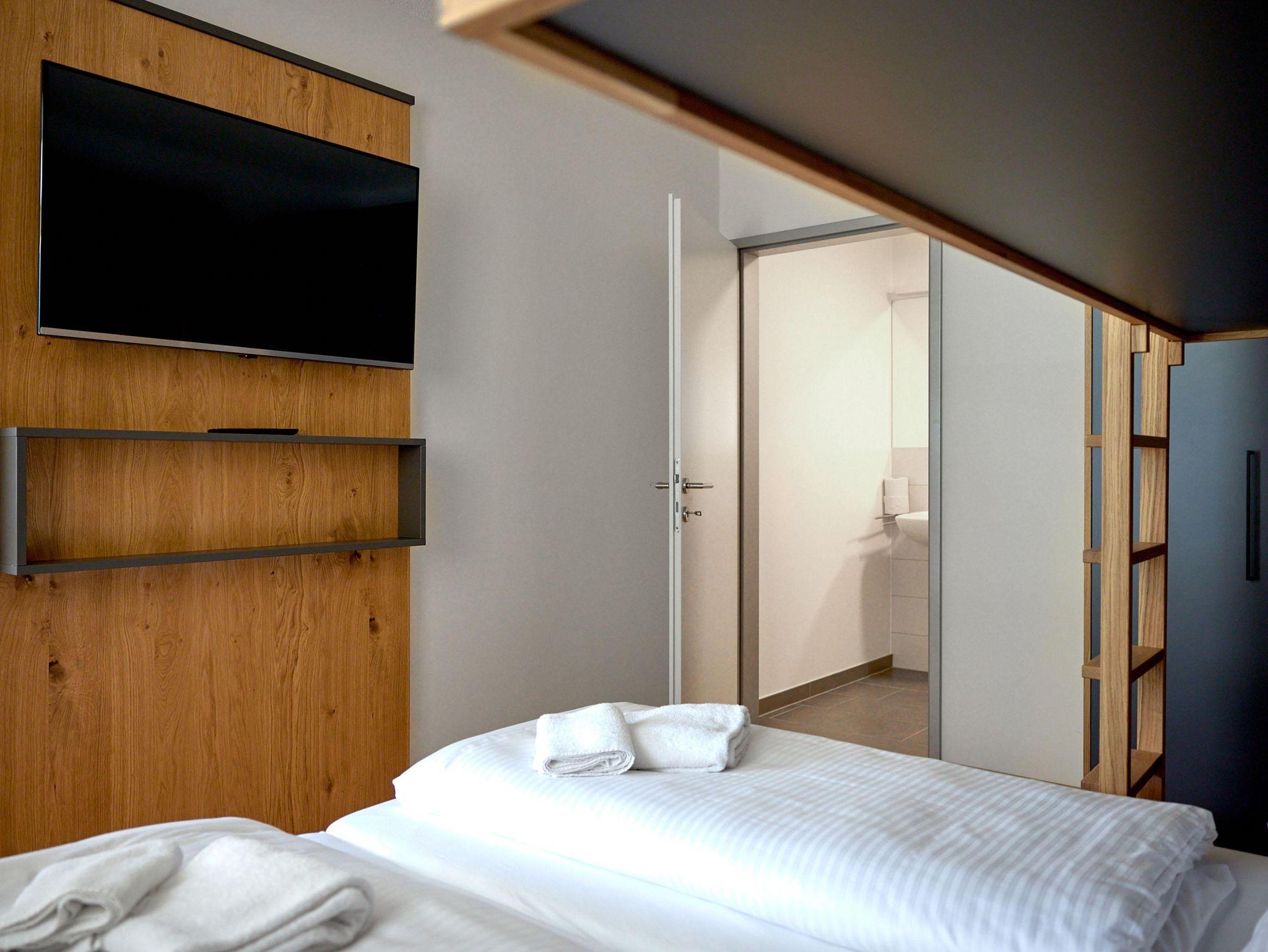 Die Unterkunft verfügt über 10 gemütliche Apartments mit jeweils 8 Betten, um den Bedürfnissen von Familien, Gruppen + Paaren gerecht zu werden. Jedes ist mit allen Annehmlichkeiten ausgestattet, die einen komfortablen Aufenthalt garantieren, einschließlich Küche, Wohnzimmer mit Flachbildfernseher (ebenfalls in beiden 3Bettzimmern) und sogar 2 privaten Badezimmern. (Die Apartments 11 und 15 haben nur 1 Bad.)