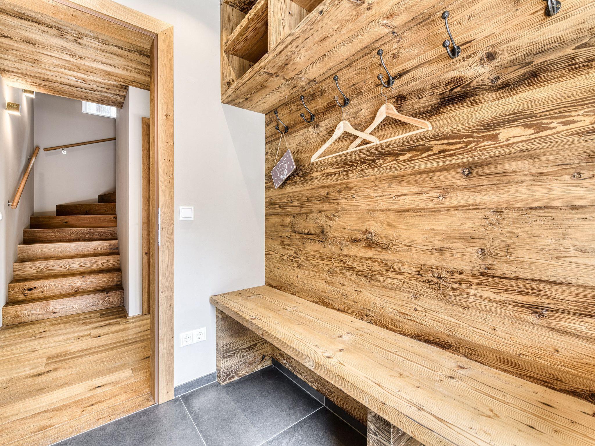 Im Obergeschoss bieten 3 Schlafzimmer mit 3 Bädern ein luxuriöses Wohngefühl und erholsamen Schlaf. Die Altholz Vertäfelung verleiht dem Chalet ein heimeliges und warmes Ambiente.