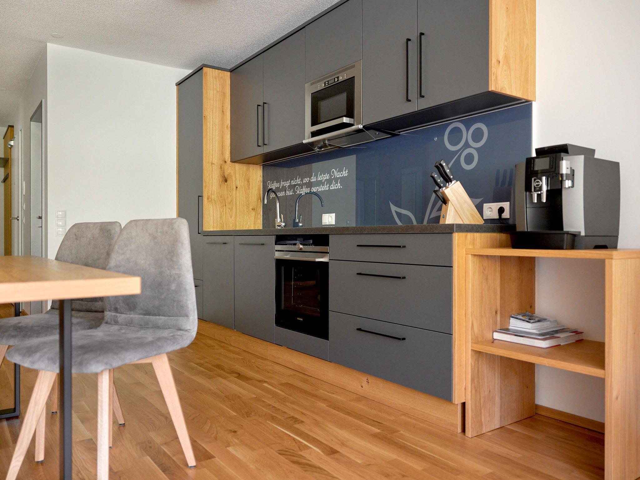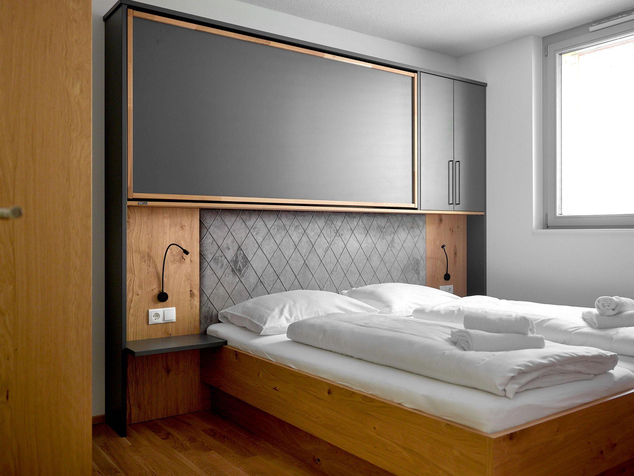 Willkommen im Zapfig Living Apartment 34, Deinem perfekten Rückzugsort für einen erholsamen Aufenthalt. Die 80 m² Unterkunft im 2.Stock bietet ein gemütliches Wohnzimmer inkl. ausziehbaren Kingsizebett mit Smart-TV, 2 Schlafzimmer (Kingsizebett+ausziehbares Einzelbett+Smart-TV) sowie eine voll ausgestattete Küche. Die 2 Badezimmer verfügen über Dusche und WC. Genieße den Komfort einer eigenen Unterkunft+entspanne in alpiner Umgebung. Vom Balkon mit Liegenstühlen besteht Bergblick.
