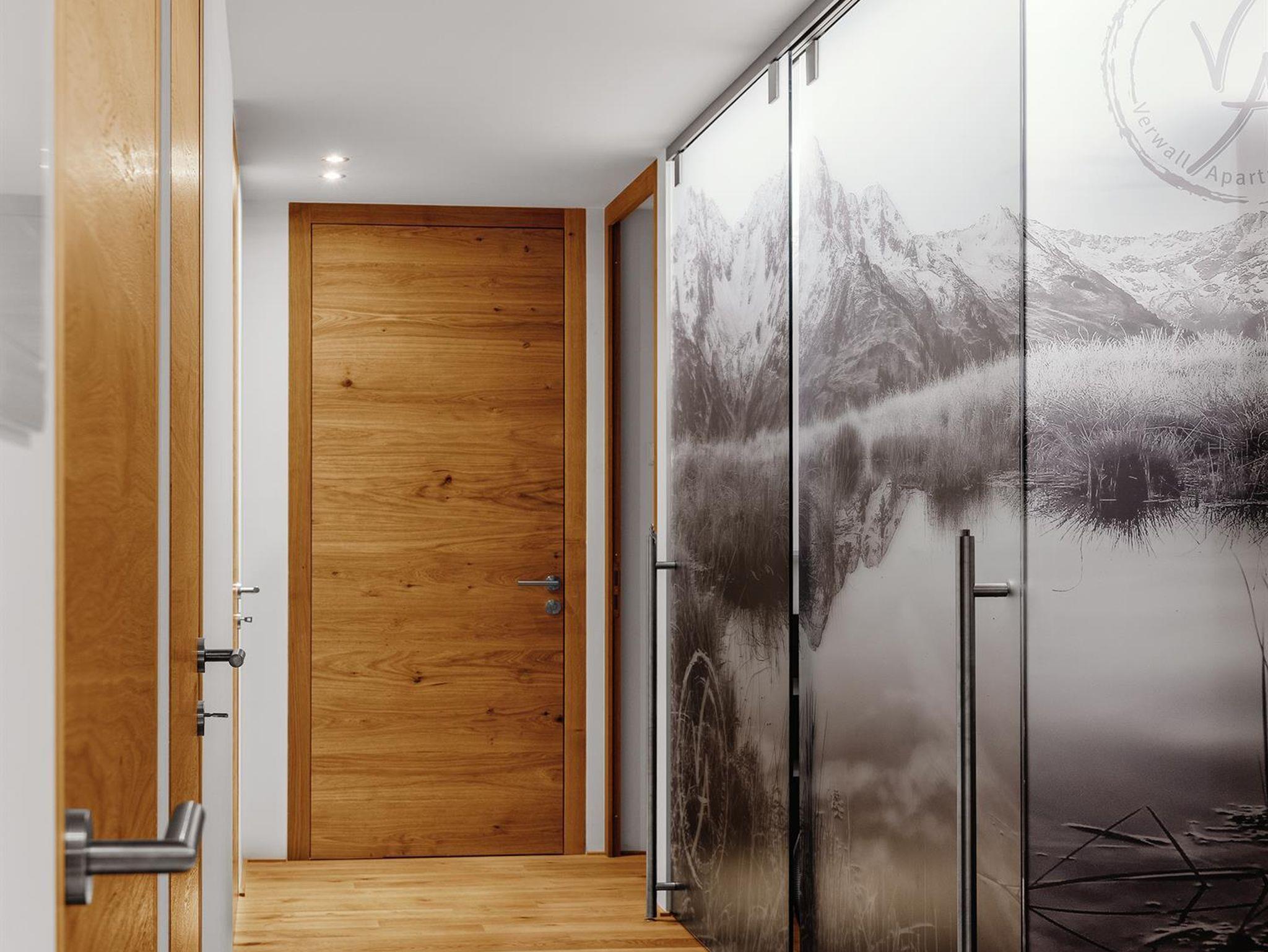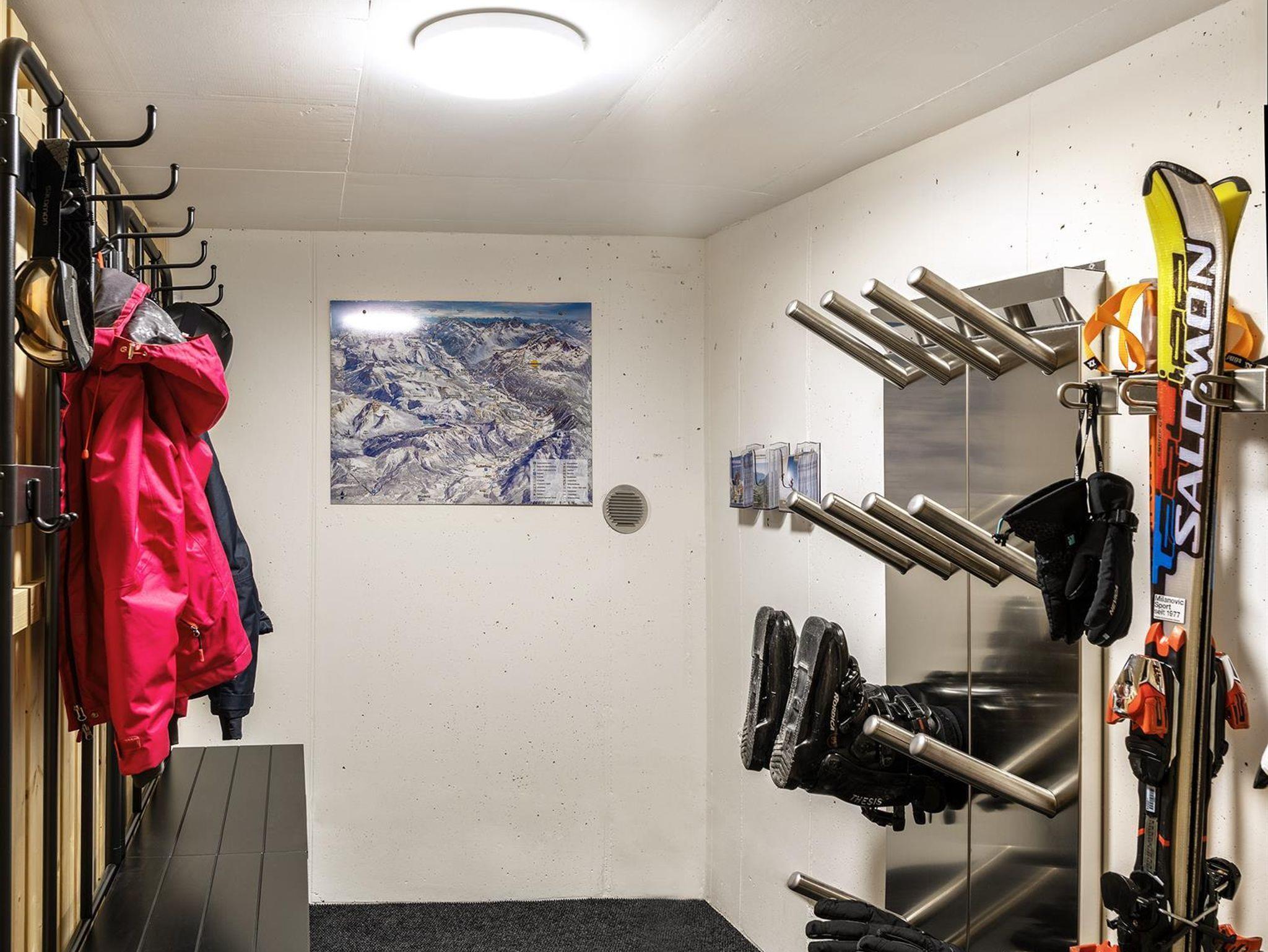 Sie parken bequem in der Tiefgarage. Von dort erreichen Sie Ihren eigenen Skiraum mit Skischuhtrockner- und Aufbewahrung. Ein Lift bringt Sie in den 1. Stock, dort treten Sie ein in das Verwall Apartment Arlberg.