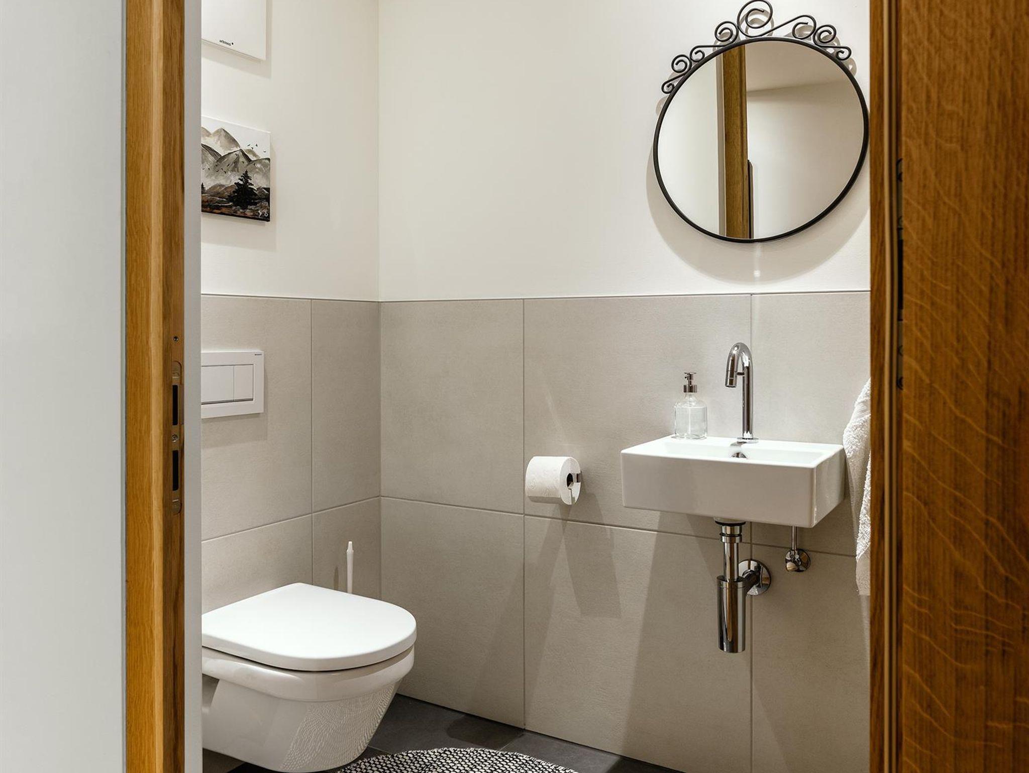 • 1 Badezimmer mit Waschtisch, WC, Dusche