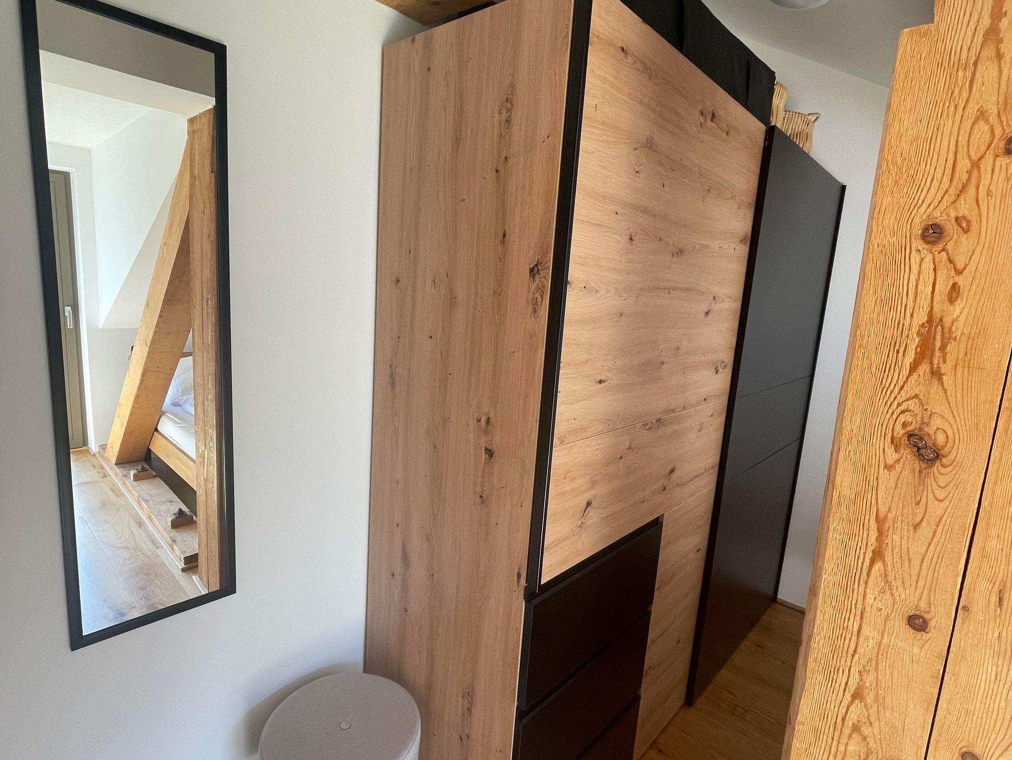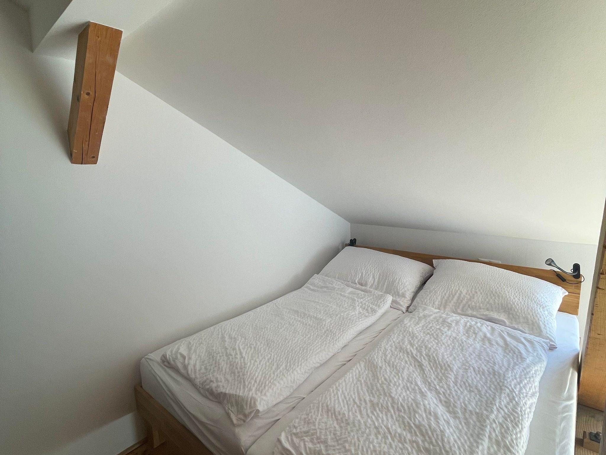 Ein Schlafzimmer hat ein Doppelbett sowie einen Austritt zum Balkon. Im anderen Schlafzimmer sind 2 Einzelbetten, die bei Bedarf zu einem Doppelbett zusammengeschoben werden können. Ein Babybett ist vorhanden. Zur Wohung gehört auch ein überdachter Carport-Stellplatz (Nr. 2). Das Badezimmer verfügt über eine Badewanne inkl. Dusche sowie über eine Waschmaschine mit Trockner. Ein Haartrockner ist vorhanden. WLAN ist inklusive.