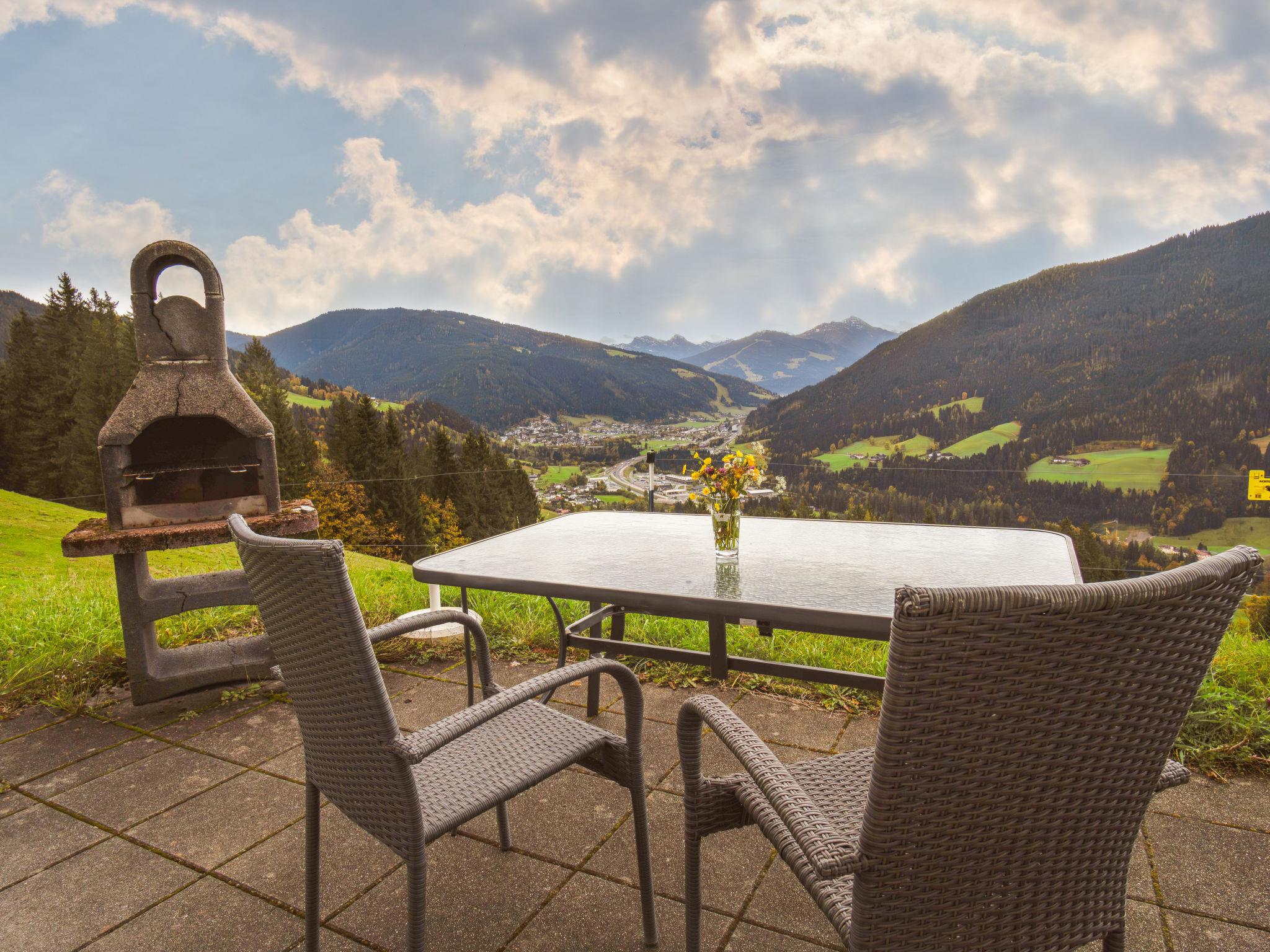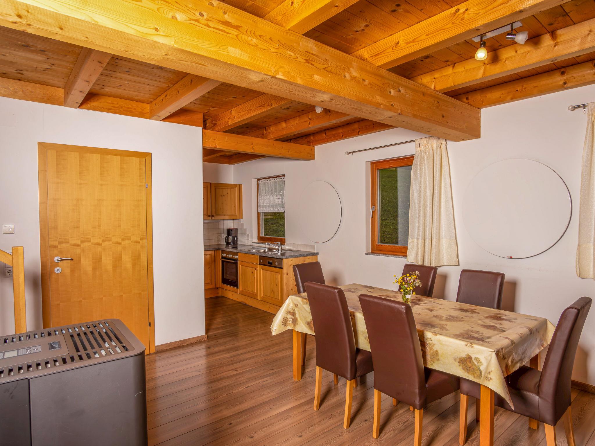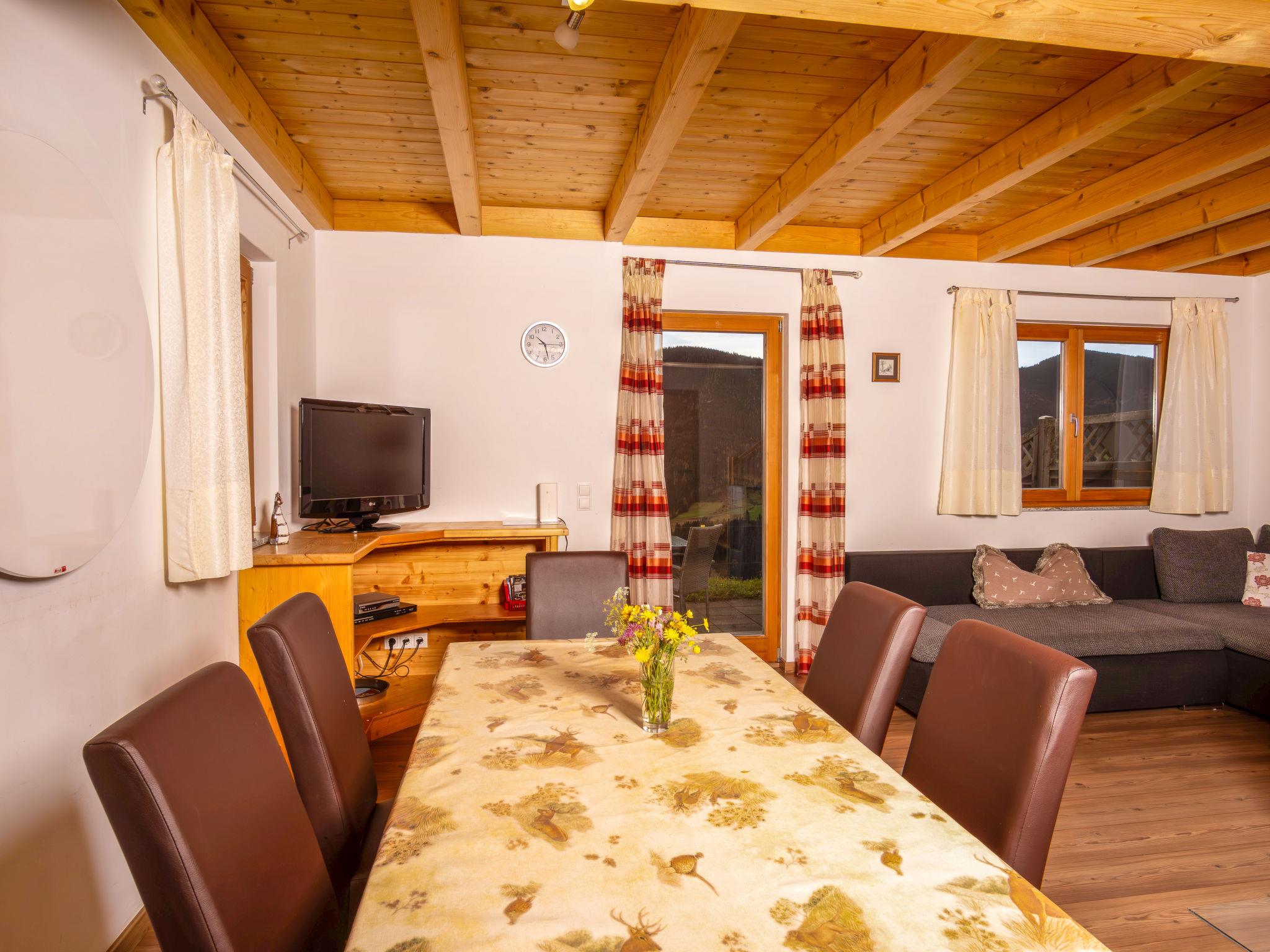 "Auer", 8-Zimmer-Haus 200 m2 auf 2 Stockwerken. Gemütlich und mit viel Holz eingerichtet: Wohnzimmer mit Schwedenofen, Esstisch und Sat-TV. Ausgang zur Terrasse. Wohn-/Esszimmer mit Schwedenofen, Esstisch, Küchenblock und Sat-TV. Ausgang zur Terrasse. Offene Küche (Backofen, Geschirrspüler, 4 Glaskeramikplatten, Wasserkocher, elektrische Kaffeemaschine). 2 sep. WC's. Obergeschoss: 6 Doppelzimmer. 2 Duschen, 2 sep. WC's, Doppelwaschbecken. Heizung. Holzdielenboden. 2 Terrassen. Terrassenmöbel. Schöne Sicht auf die Berge. Zur Verfügung: Waschmaschine, Kinderhochstuhl, Babybett. Internet (Wireless LAN, gratis). Dieses Angebot setzt sich zusammen aus den beiden Haushälften AT5531.603.1 und AT5531.603.2 (interne Verbindung im Erdgeschoss). 50406-001396-2020