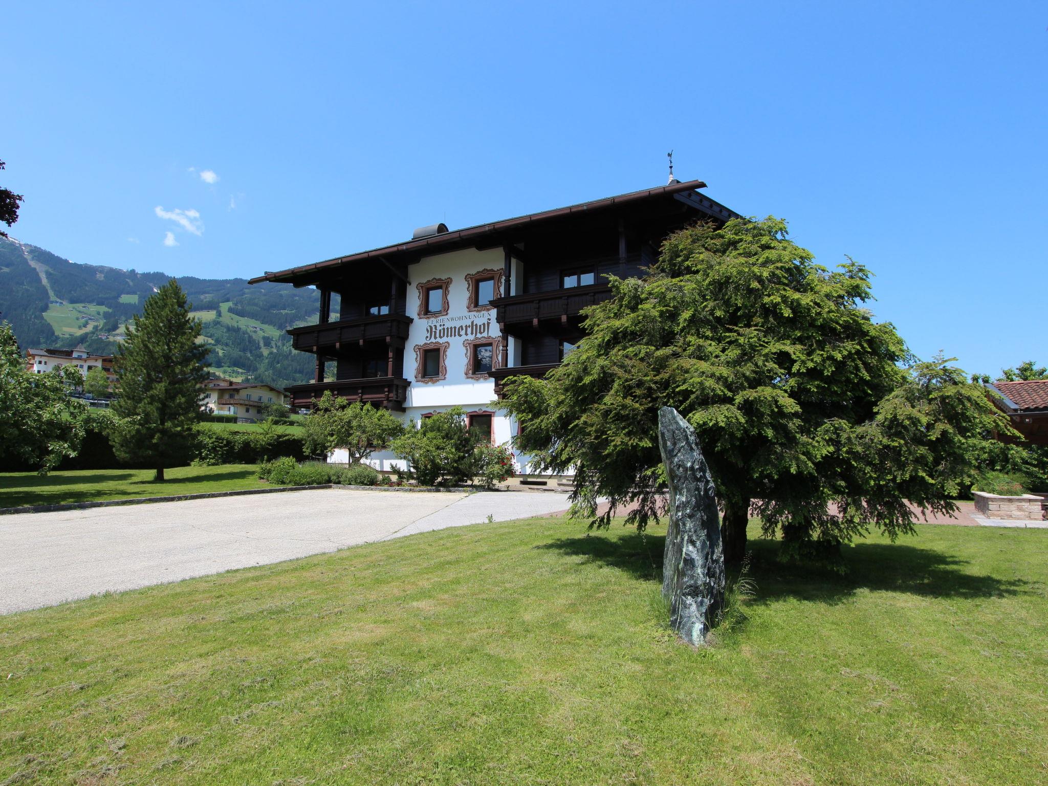 Fügen: Gemütliches Appartementhaus "Römerhof". 11 Wohnungen in der Residenz. Im Ortsteil Kapfing, 1.5 km vom Zentrum von Fügen, ruhige, sonnige Lage, 6 km vom See, 1.7 km vom Skigebiet, im Grünen. Zur Mitbenutzung: grosser, schöner, gepflegter Garten. Im Hause: Aufenthaltsraum, Wireless LAN, Sauna (alles inkl.), Einstellraum für Fahrräder, Skiraum, Zentralheizung, Waschmaschine (zur Mitbenutzung, extra). Zufahrt bis zum Haus. Parkplatz beim Haus. Supermarkt 1 km, Restaurant, Bäckerei 300 m, Zentrum zu Fuss in 10 Minuten erreichbar, Bushaltestelle "Kapfing Dorf" 400 m, Bahnstation "Kapfing Bahnhaltestelle" 450 m, Freibad, Hallenbad 700 m, Thermalbad "Erlebnistherme Fügen" 700 m, Badesee "Schlitterer See" 6 km. Golfplatz (18 Loch) 2 km, Radweg 50 m, Skilift 1.5 km, Gondelbahn 1.7 km, Skibushaltestelle 100 m. Bekannte Skigebiete sind gut erreichbar: Spieljochbahn Fügen 1.7 km, Hochzillertal-Hochfügen Kaltenbach 5 km. Bitte beachten: Gratis Skibus. Weitere Unterkünfte sind buchbar. Eingeschränkter WLAN Empfang!