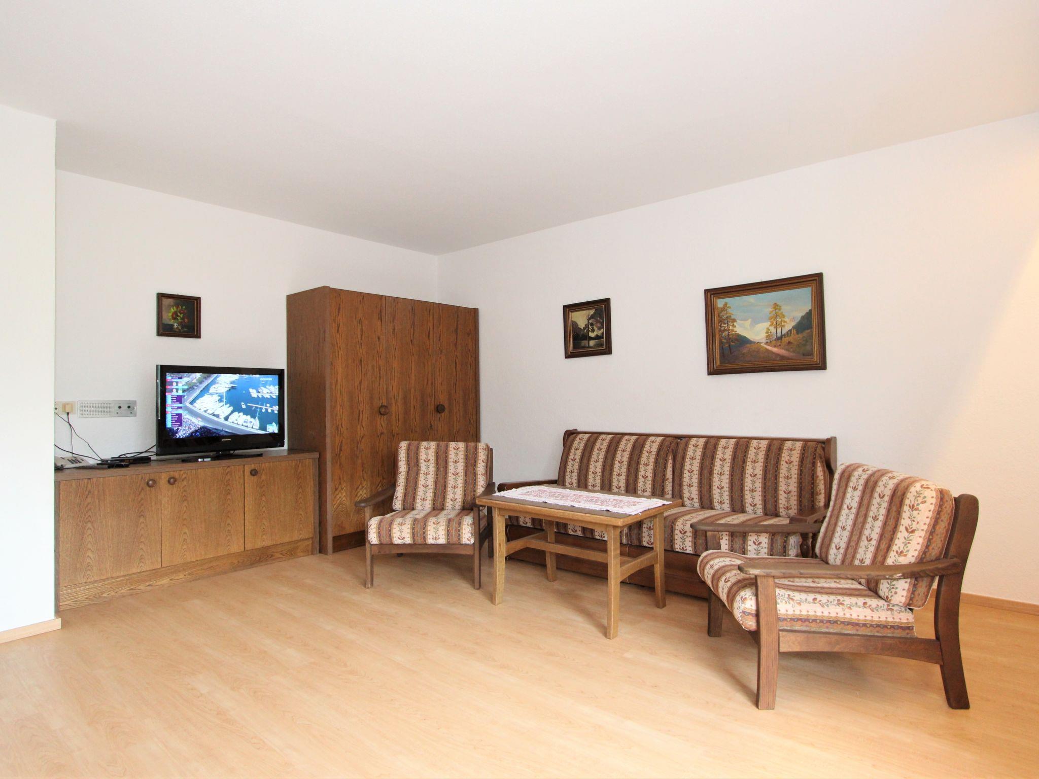 2-Zimmer-Wohnung 65 m2 im 1. Stock. Geräumig, rustikal und gemütlich eingerichtet: 1 Doppelzimmer. Grosses Wohn-/Schlafzimmer mit 1 Ausziehbett (2 Pers.), Essecke und Sat-TV (Flachbildschirm). Ausgang zum Balkon. Kochnische (Backofen, 4 Glaskeramikplatten, elektrische Kaffeemaschine). Dusche/WC. Balkon, Ostlage. Balkonmöbel. Schöne Sicht auf die Berge und die Landschaft. Zur Verfügung: Internet (WLAN). Bitte beachten: Nichtraucher-Unterkunft. Maximal 1 Haustier/Hund erlaubt.