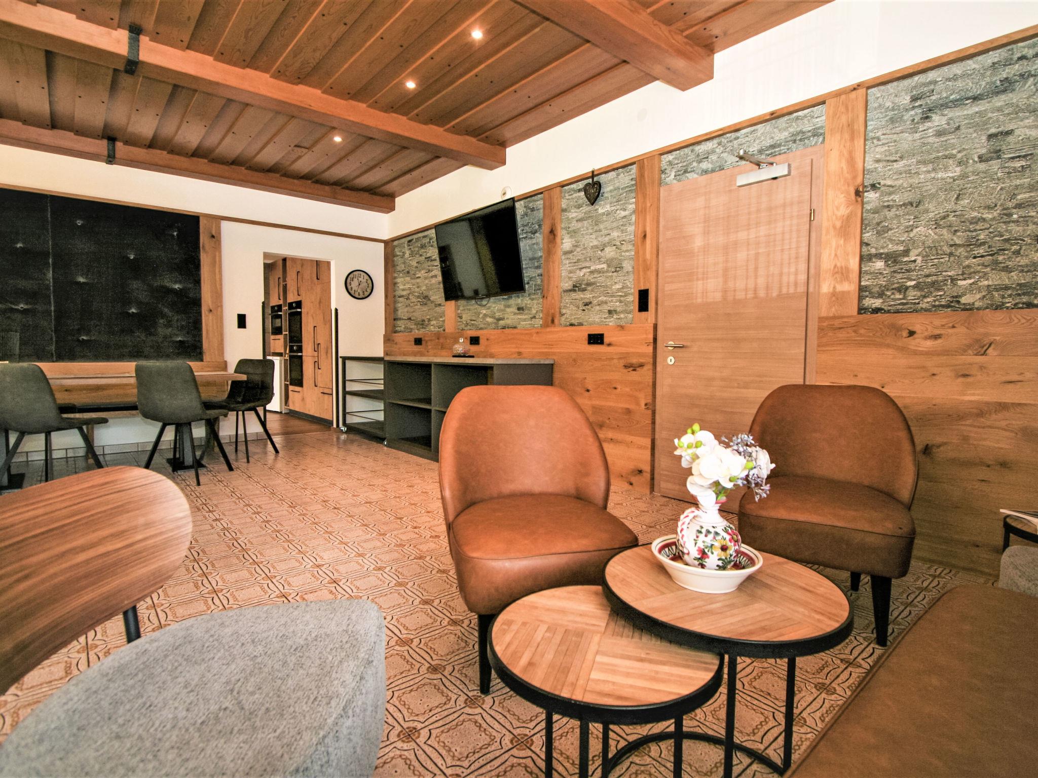 "Penz", 14-Zimmer-Haus 300 m2 auf 3 Stockwerken. Teilweise renoviert im Jahre 2020, schön und gemütlich eingerichtet: grosses Wohn-/Esszimmer mit Sat-TV und Radio. Offene Küche (Backofen, Geschirrspüler, 8 Glaskeramikplatten, Wasserkocher, Mikrowelle, Tiefkühler, elektrische Kaffeemaschine). 2 sep. WC's. Obergeschoss: 5 Doppelzimmer, jedes Zimmer mit Dusche/WC, Sat-TV und Radio. 1 Doppelzimmer mit Dusche/WC. 1 Zimmer mit 1 Bett und Dusche/WC. 2. Obergeschoss: 4 Doppelzimmer, jedes Zimmer mit Dusche/WC, Sat-TV und Radio. 2 Zimmer, jedes Zimmer mit 1 Bett und Waschbecken. 1 Doppelzimmer mit Waschbecken. Sep. WC. Heizung. Teppichboden. 2 Balkone. Abstellkammer. Zur Verfügung: Internet (WLAN, gratis). E-Ladestation. Bitte beachten: Nichtraucher-Haus. Maximal 3 Haustiere/Hunde erlaubt. Rauchmelder, Feuerlöscher. Bei Belegung mit weniger Personen als der maximalen Personenzahl stehen nicht alle Wohneinheiten zur Verfügung.