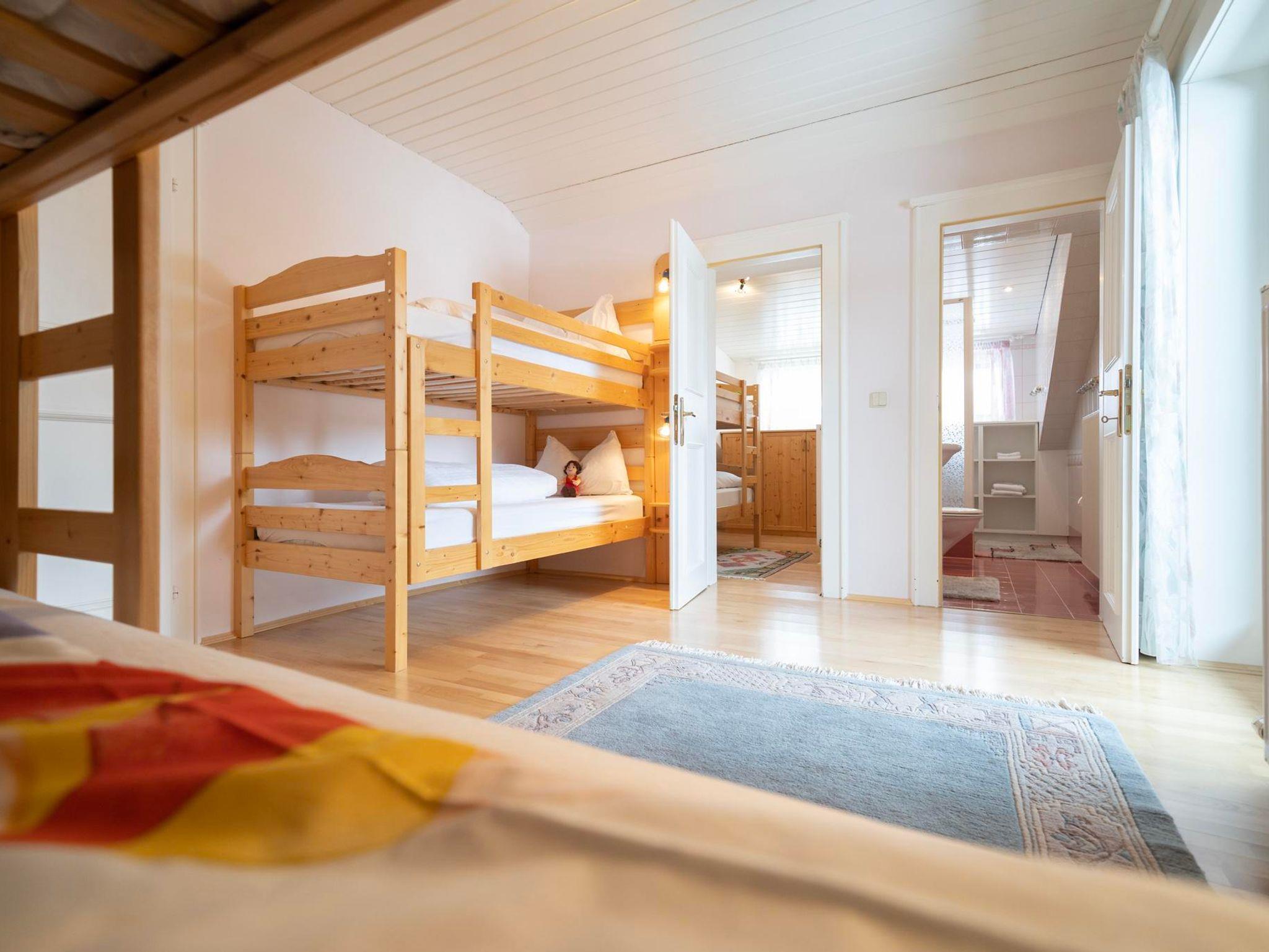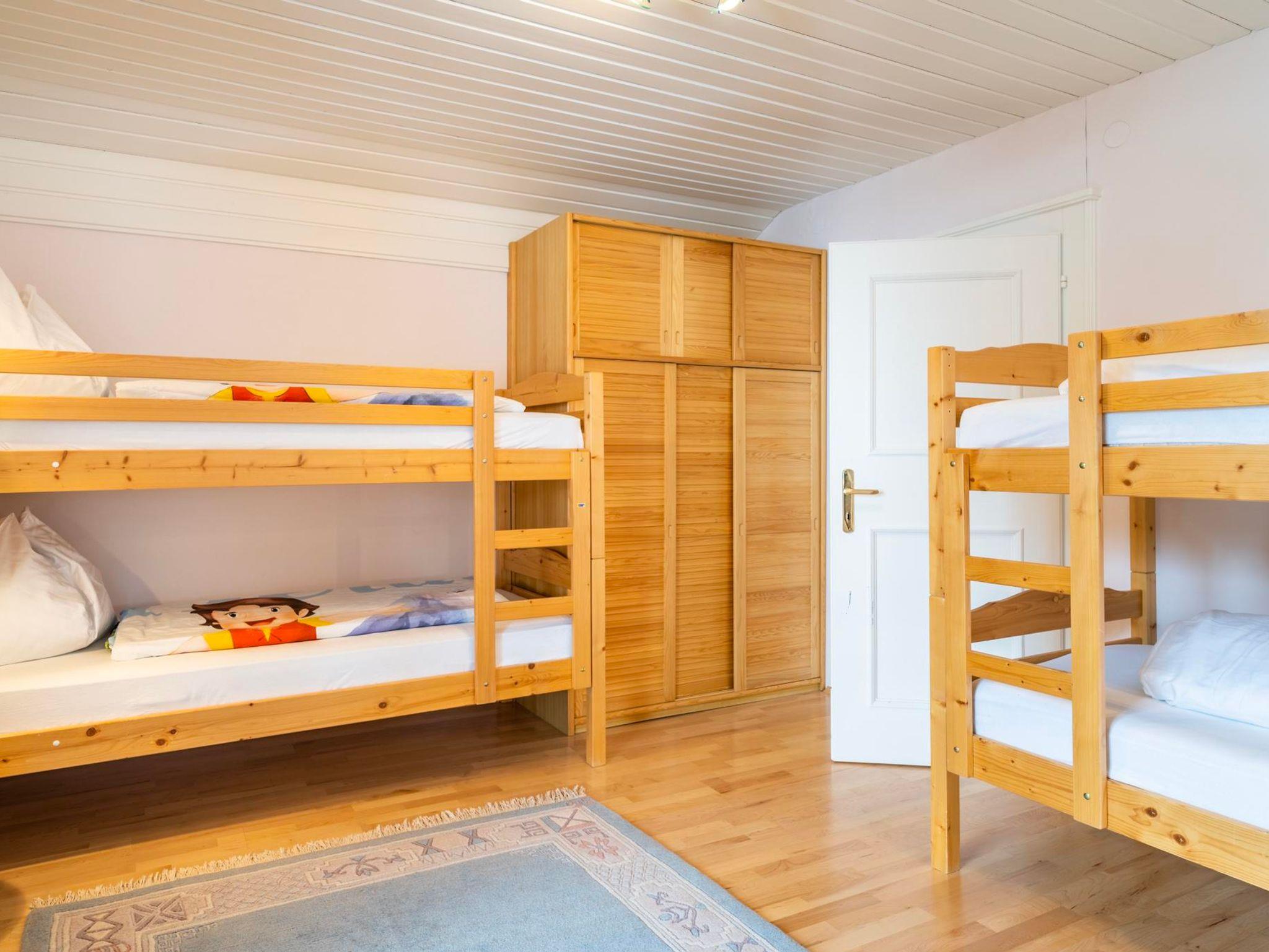 Im 1. Stock stehen euch zwei schöne große Schlafzimmer und ein Kinderzimmer mit Stockbetten zur Verfügung.