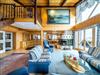 Das 60 m² große Wohnzimmer beeindruckt durch die offene Gestaltung und Höhe mit einer riesigen Fensterfront nach Süden