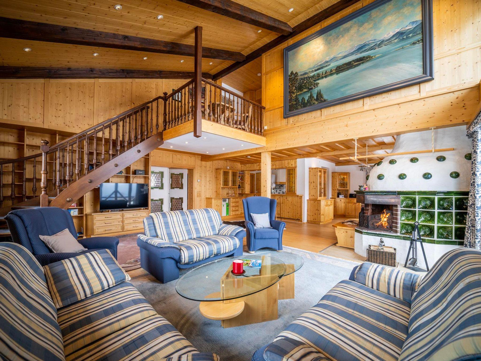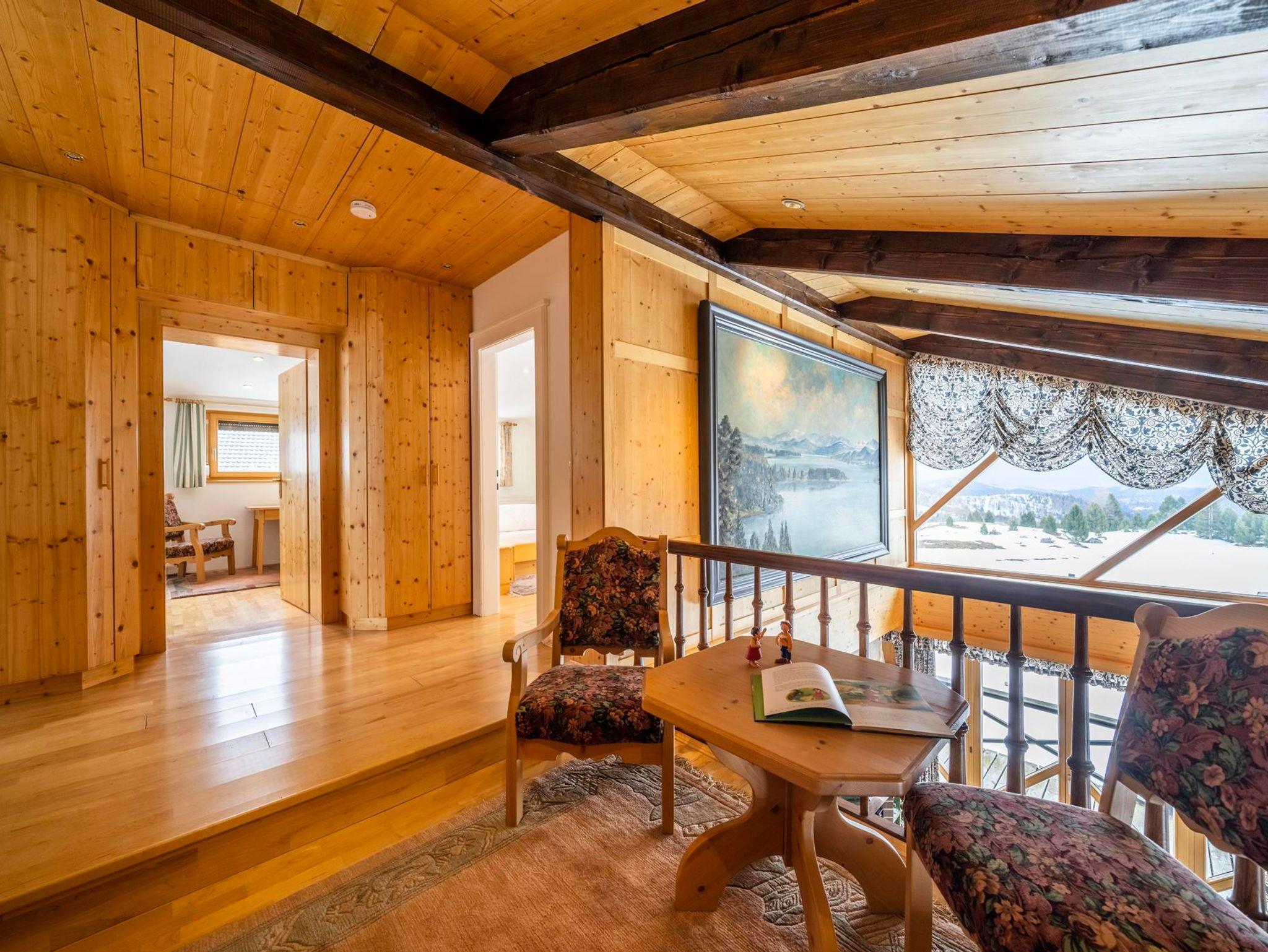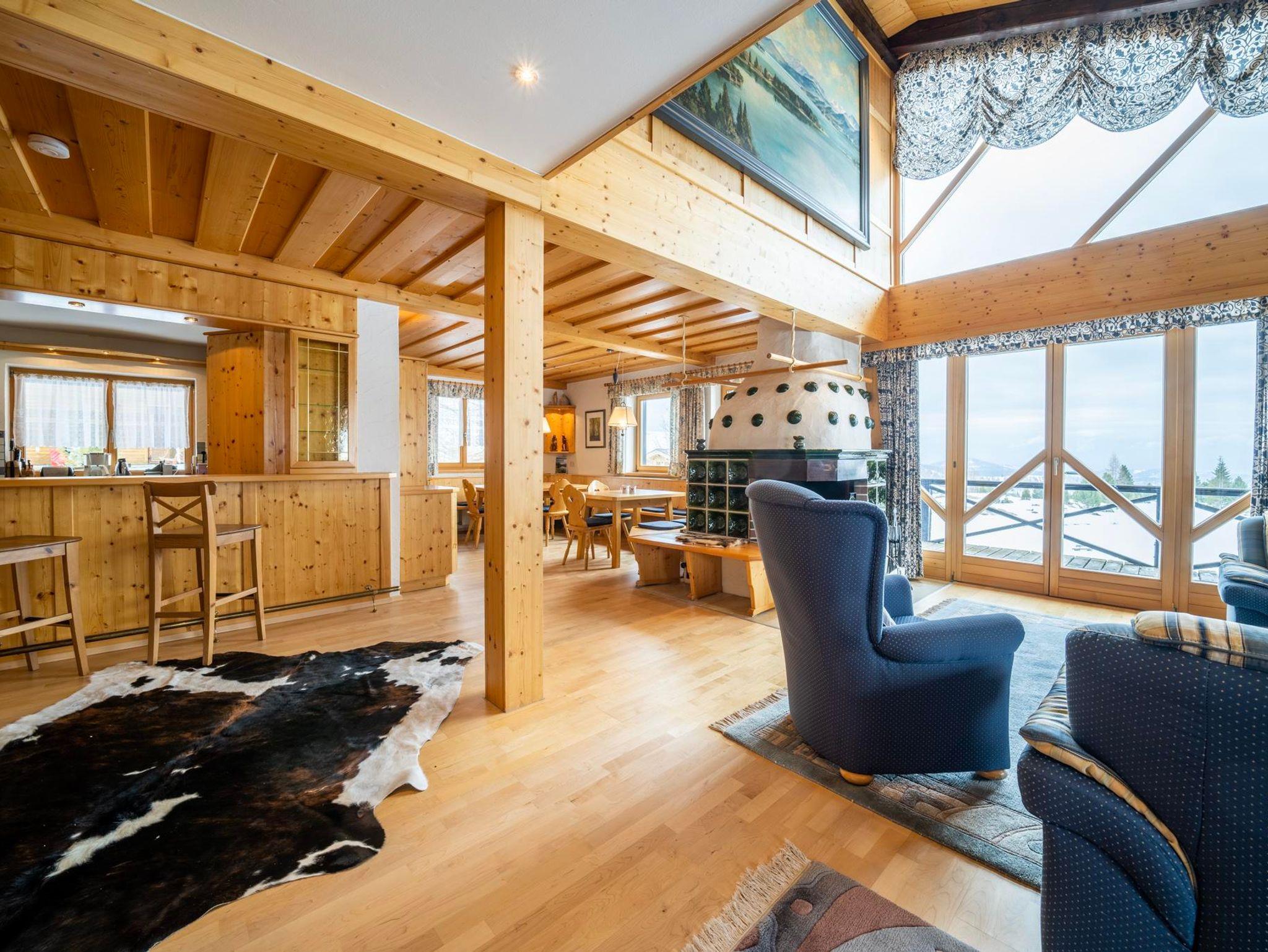 Das ganze Haus ist Sonnenlicht- durchflutet und rustikal eingerichtet. Spektakulär ist von hier der herrliche Ausblick über ganz Kärnten, den Sie von der großen Rundum-Terrasse aus haben.