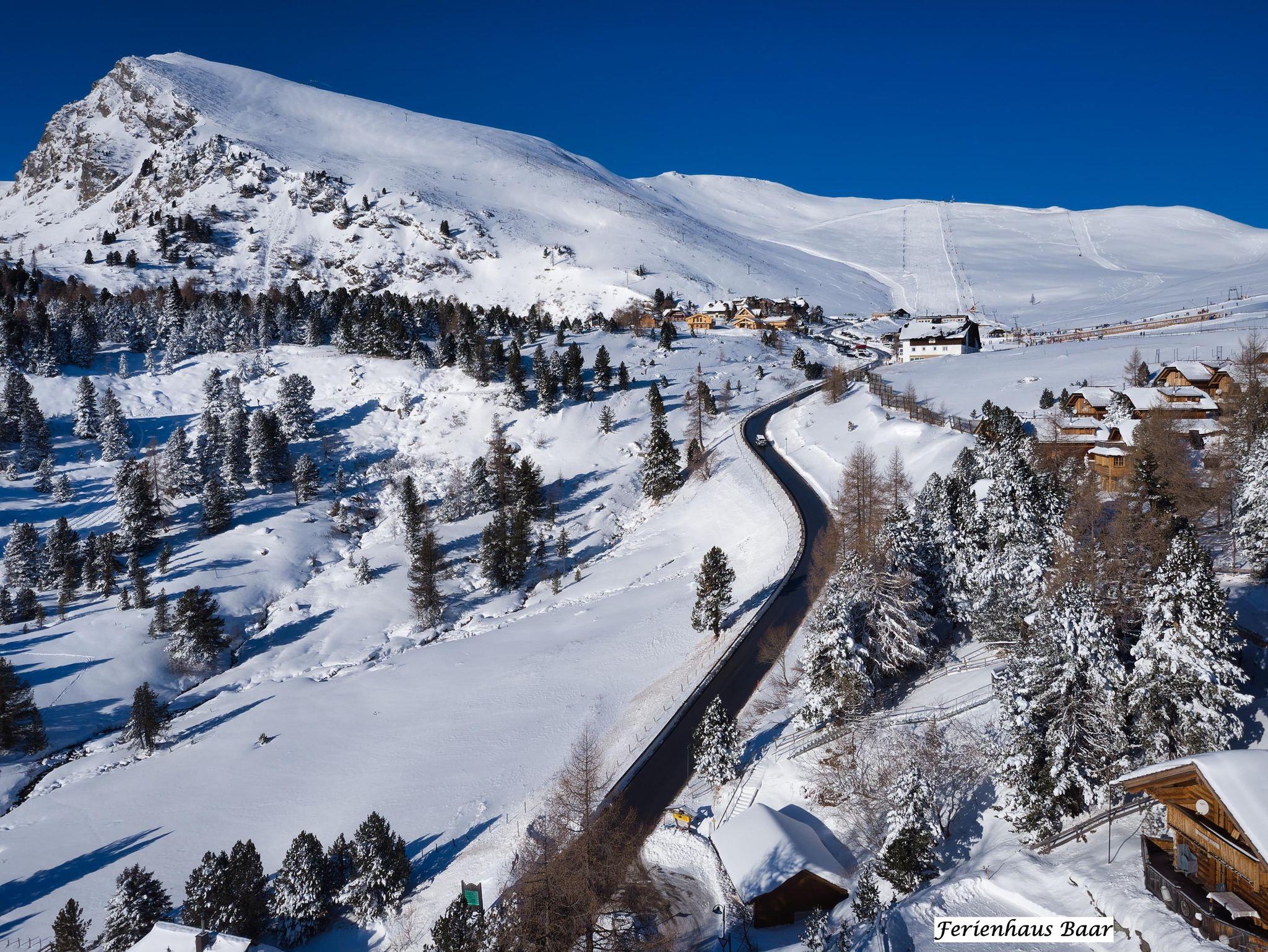 Auf dem 711 m² großen Grundstück in 1800 m Höhe am Falkert (2308 m), am Rande des Naturschutzgebietes Nockberge in Kärnten / Österreich, unweit vom Millstätter See, nahe Bad Kleinkirchheim, steht das Almhaus aus massiven Fichtenstämmen.
