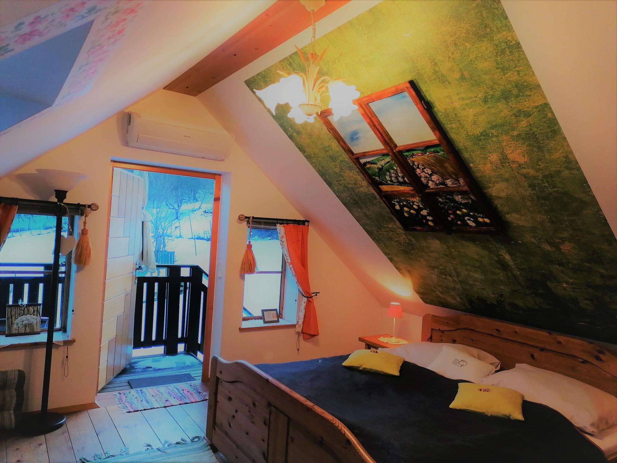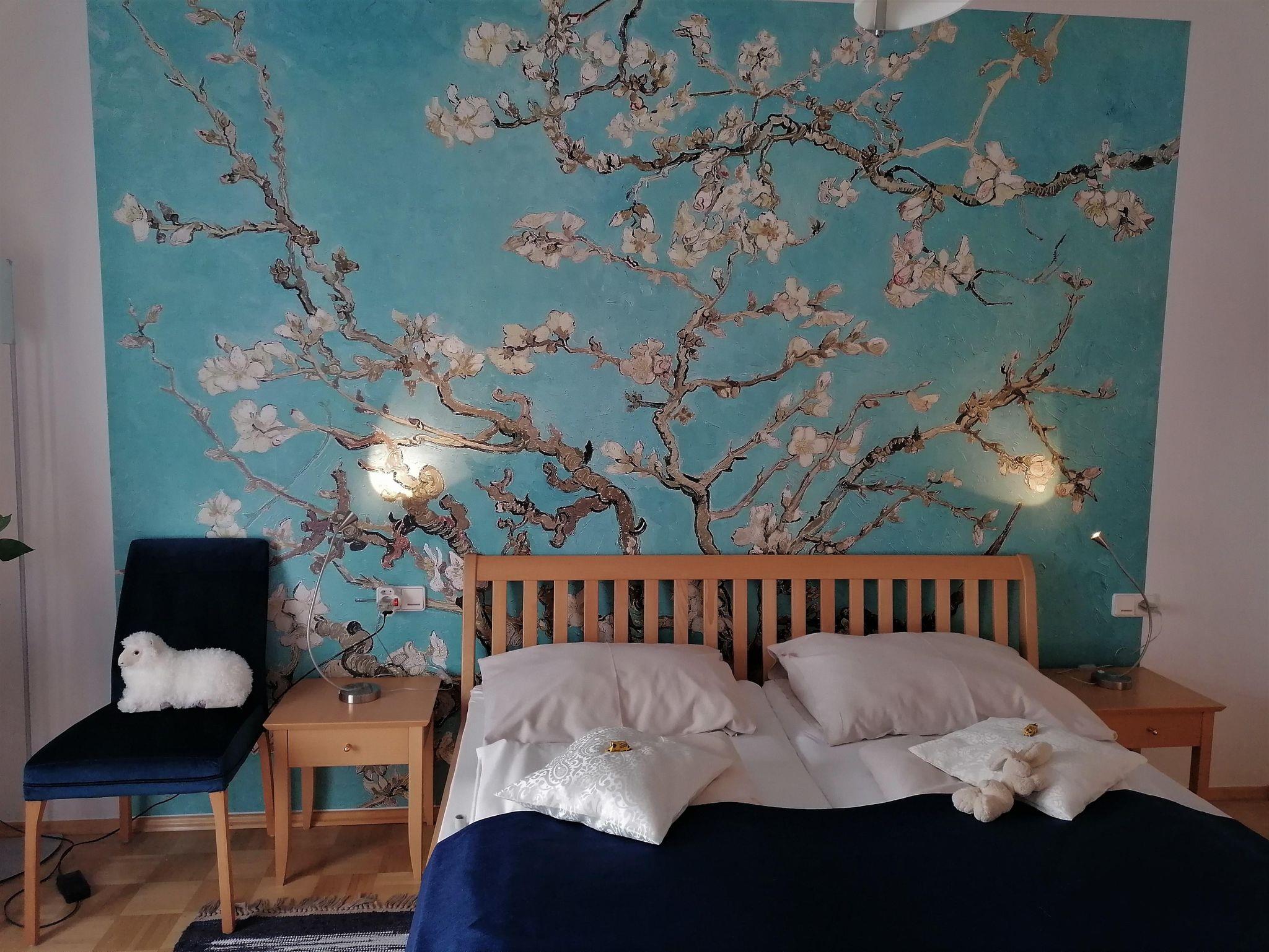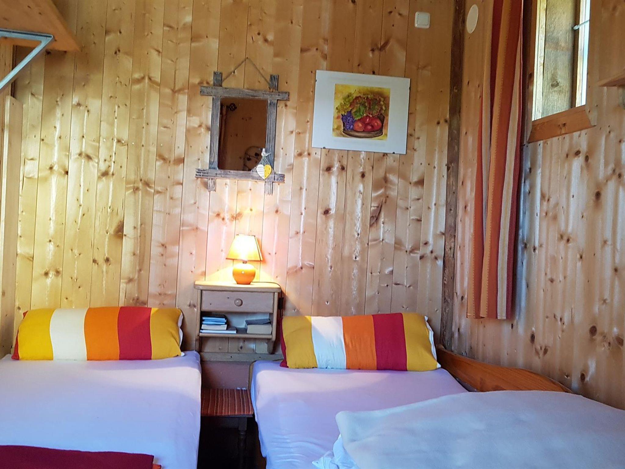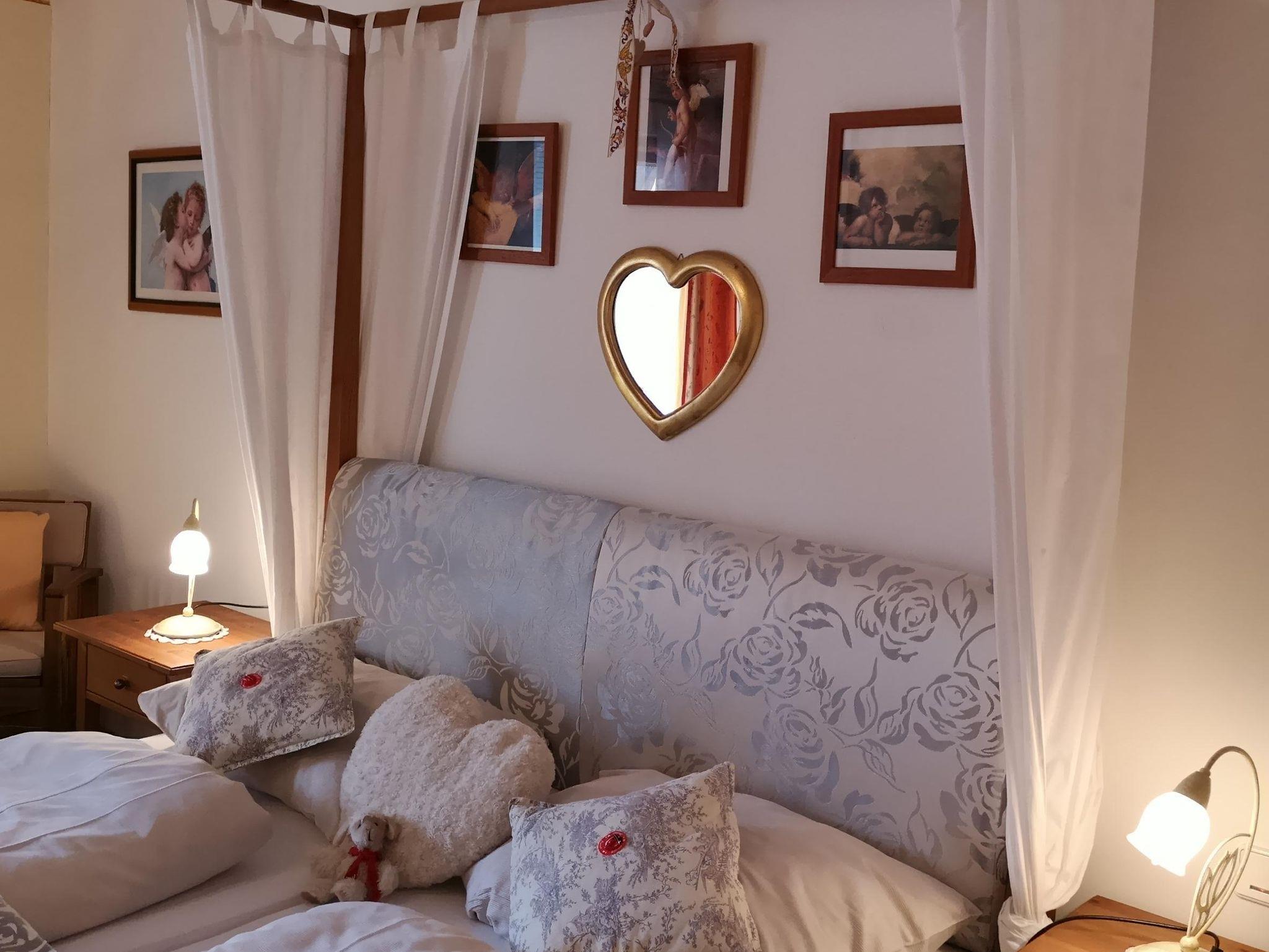 FamilienZimmer ( 1-4 Pers.) Individuell ausgestattet und liebevoll gestaltet, mit Doppelbett und DoppelHochbett oder ausziehbarer Doppelcouch, großteils mit Balkon bzw. Terrasse, Gartenblick, GrünRuhelage