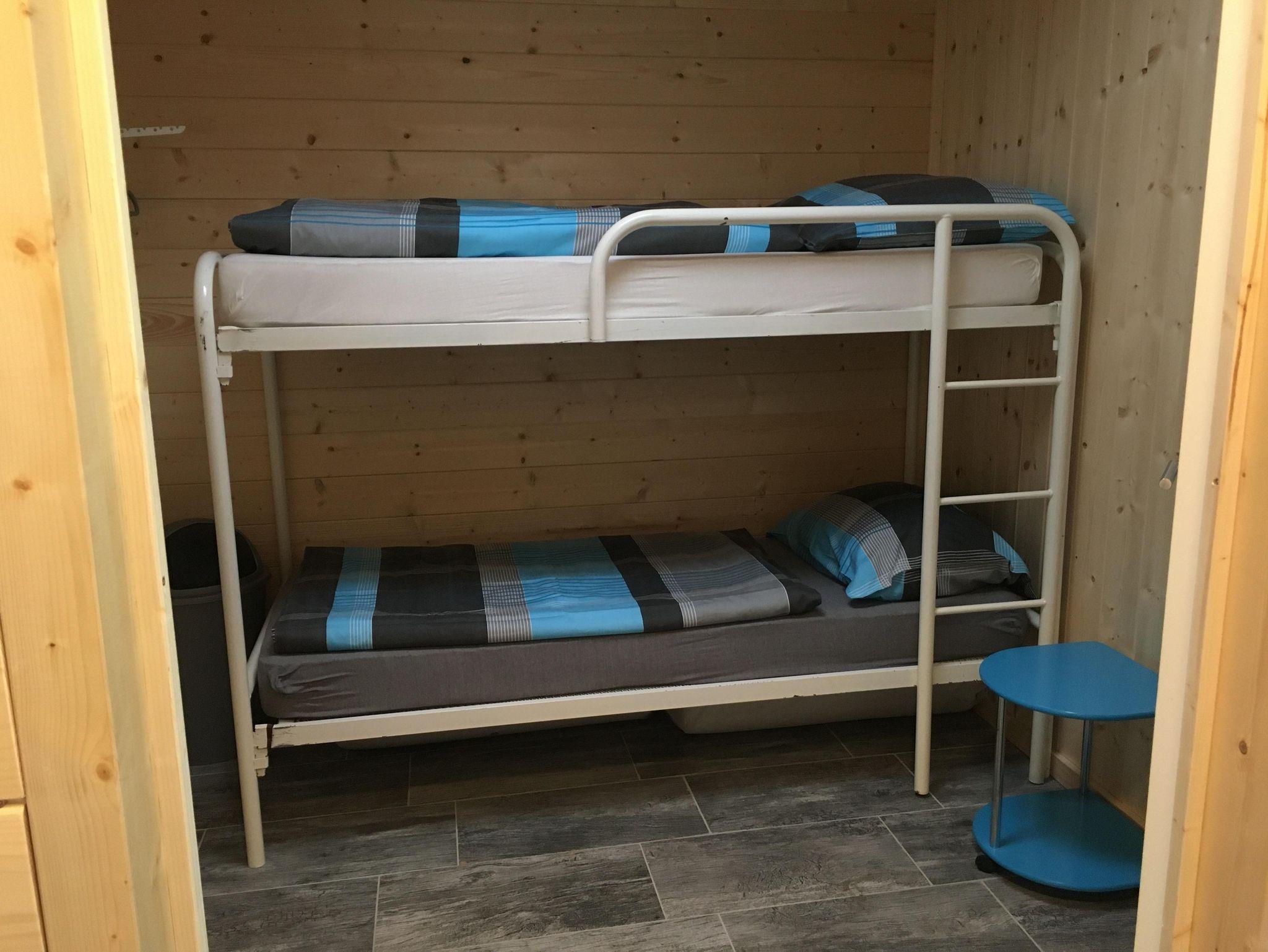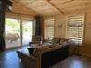 Behindertengerechte Barrierefreie Bungalow unter einem Dach mit Bungalow 3. Diese können auf Wunsch mit einander verbunden werden mittels Türen und bieten somit dann statt an 6 Personen, Unterkunft für 12 Personen. In diesen beide Bungalows sind die Räumlichkeiten gespiegelt von einander. Beide sind gleich groß. Beide haben ein Behindertengerechtes Schlafzimmer mit Badezimmer. Weiters gibt es jeweils ein Stockbettzimmer und ein Doppelzimmer (eventuell mit extra Schlafcouch). Zusätzlich gibt es noch ein extra Badezimmer und extra WC im Gebäude. Bungalow 2 hat eine offene überdachte Terrasse und Bungalow 3 hat ein geschlossene Terrasse. Geeignet für Sommer und Winter.