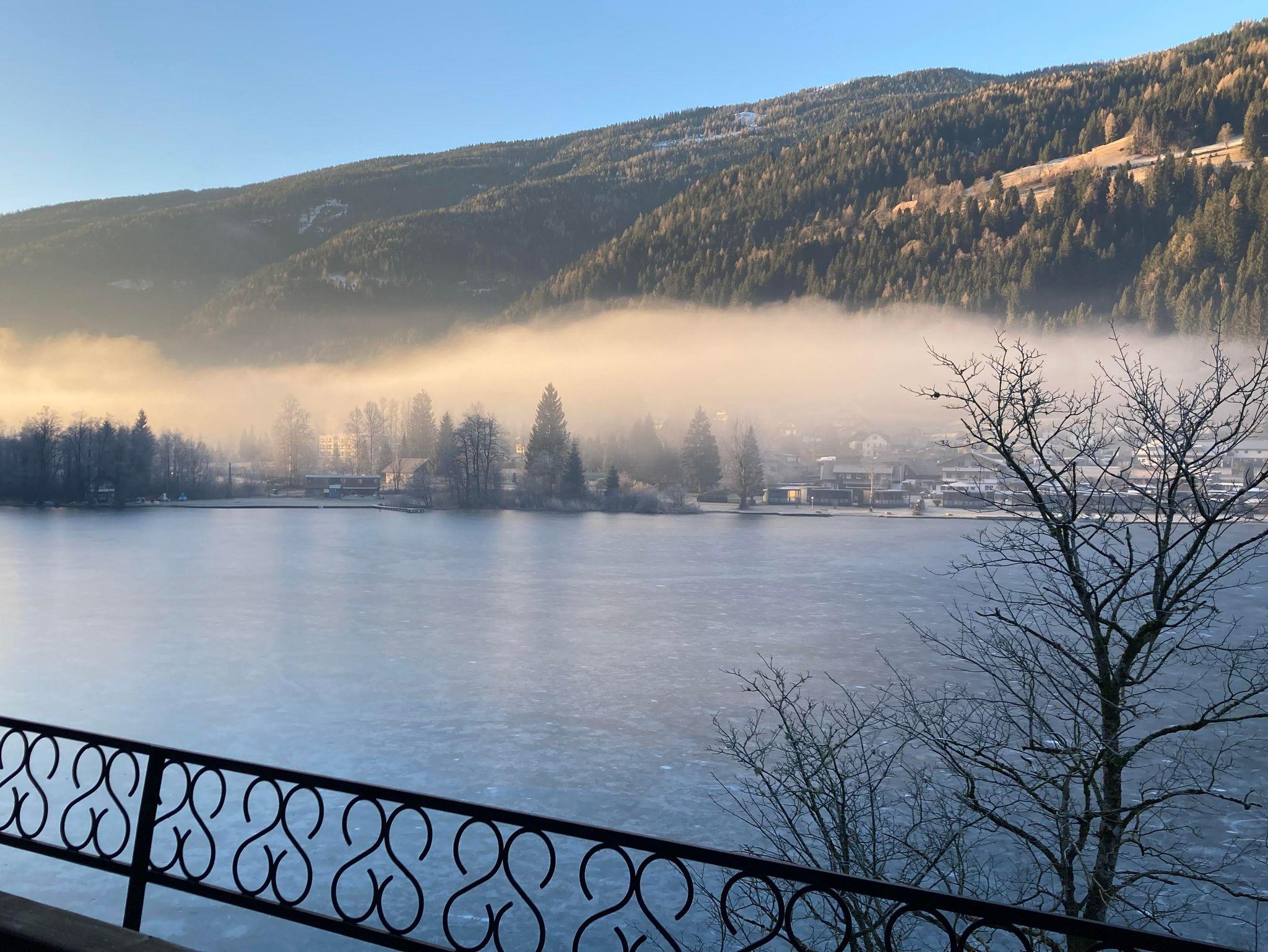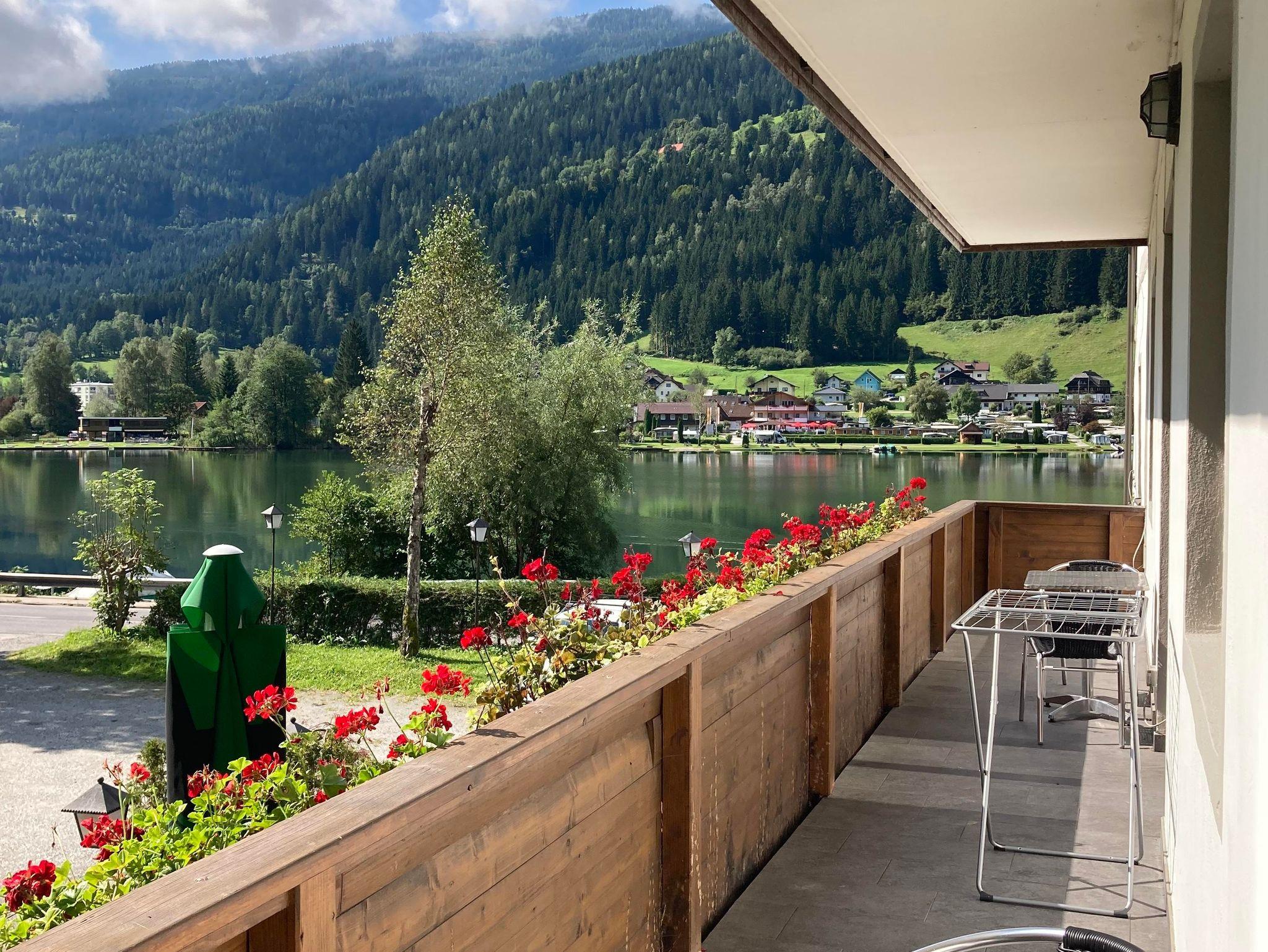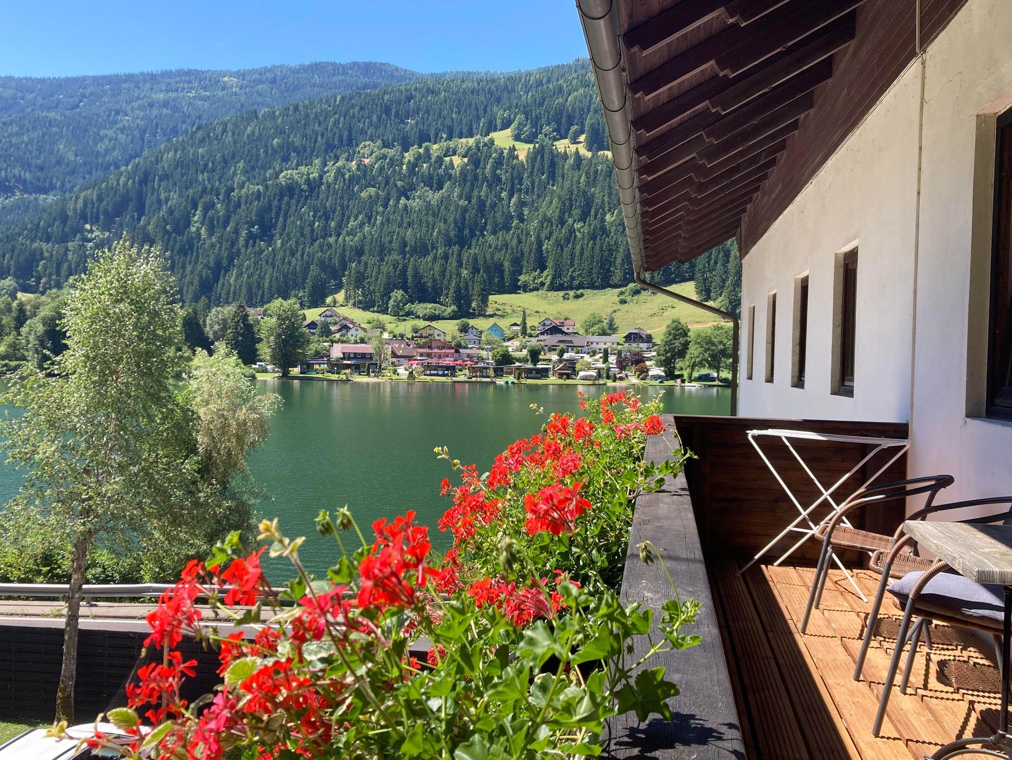 Studio Appartement verfügt über einen großzügigen Balkon mit Sitzgelegenheit und einem wunderschönen Blick auf den Afritzer See und den Mirnock.