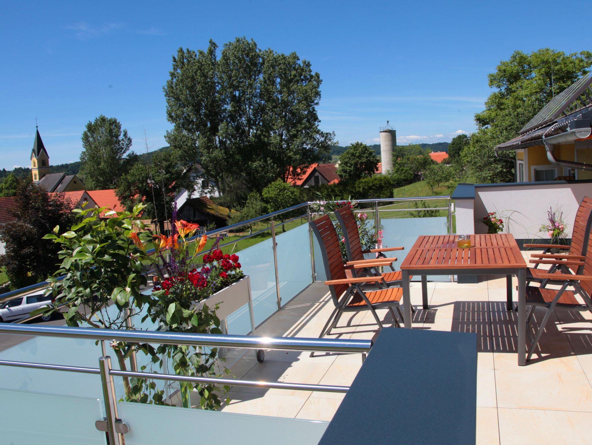 Unsere Suite bietet zu dem noch eine 35m2 große Dachgeschoßterrasse mit wunderschönen Ausblick in die Landschaft.