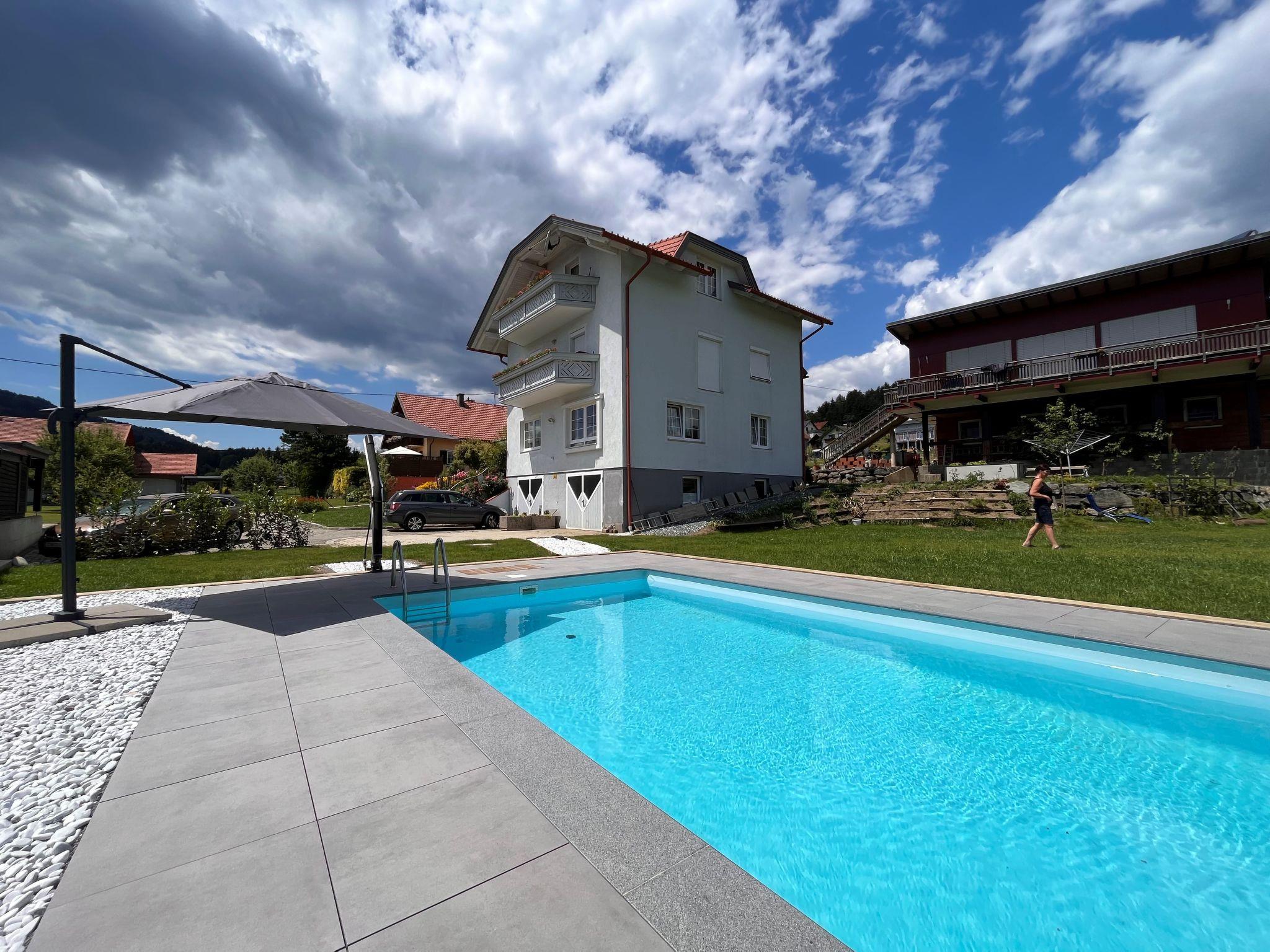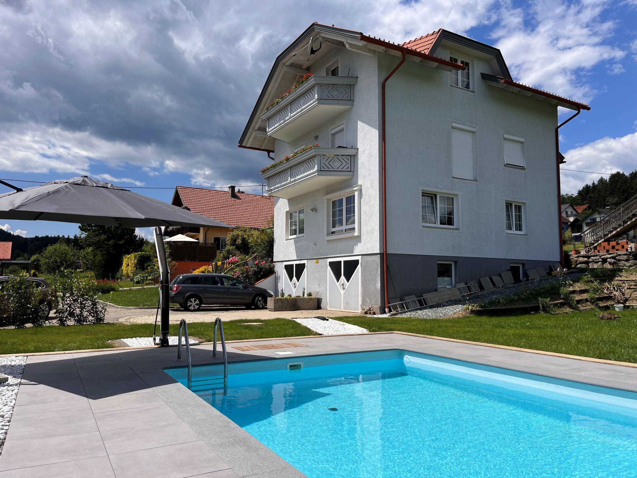 Schönes Dreifamilienhaus "Frank". Im Ortsteil Dellach, 7 km vom Zentrum von Feldkirchen, ruhige, sonnige Lage, 200 m vom Waldrand, 8 km vom See, 20 km vom Skigebiet, im Grünen. Zur Mitbenutzung: Garten 1'500 m2, Liegewiese, Schwimmbad (7 x 4 m, saisonale Verfügbarkeit: 15.Mai. - 15.Sep.). Tischtennis, Laube, Gartenmöbel, Grill, Kinderspielplatz. Im Hause: Sonnenterrasse, Zentralheizung. Parkplatz. Lebensmittelgeschäft 6 km, Restaurant 6 km, Bushaltestelle 200 m, Bahnstation "Feldkirchen in Kärnten" 6 km, Strandbad 6 km, Badesee "Ossiachersee" 8 km. Golfplatz (18 Loch) 6 km, Tennis 4 km, Gondelbahn 20 km. Bekannte Skigebiete sind gut erreichbar: Gerlitzen (Kanzelbahn) 20 km, Simonhöhe 22 km, Bad Kleinkirchheim 34 km. Bekannte Seen in der Umgebung sind gut erreichbar: Ossiachersee 8 km, Wörthersee 15 km. Bitte beachten: Der Besitzer wohnt im selben Haus. Eigentümer hat einen Hund. Weitere Unterkünfte sind buchbar.