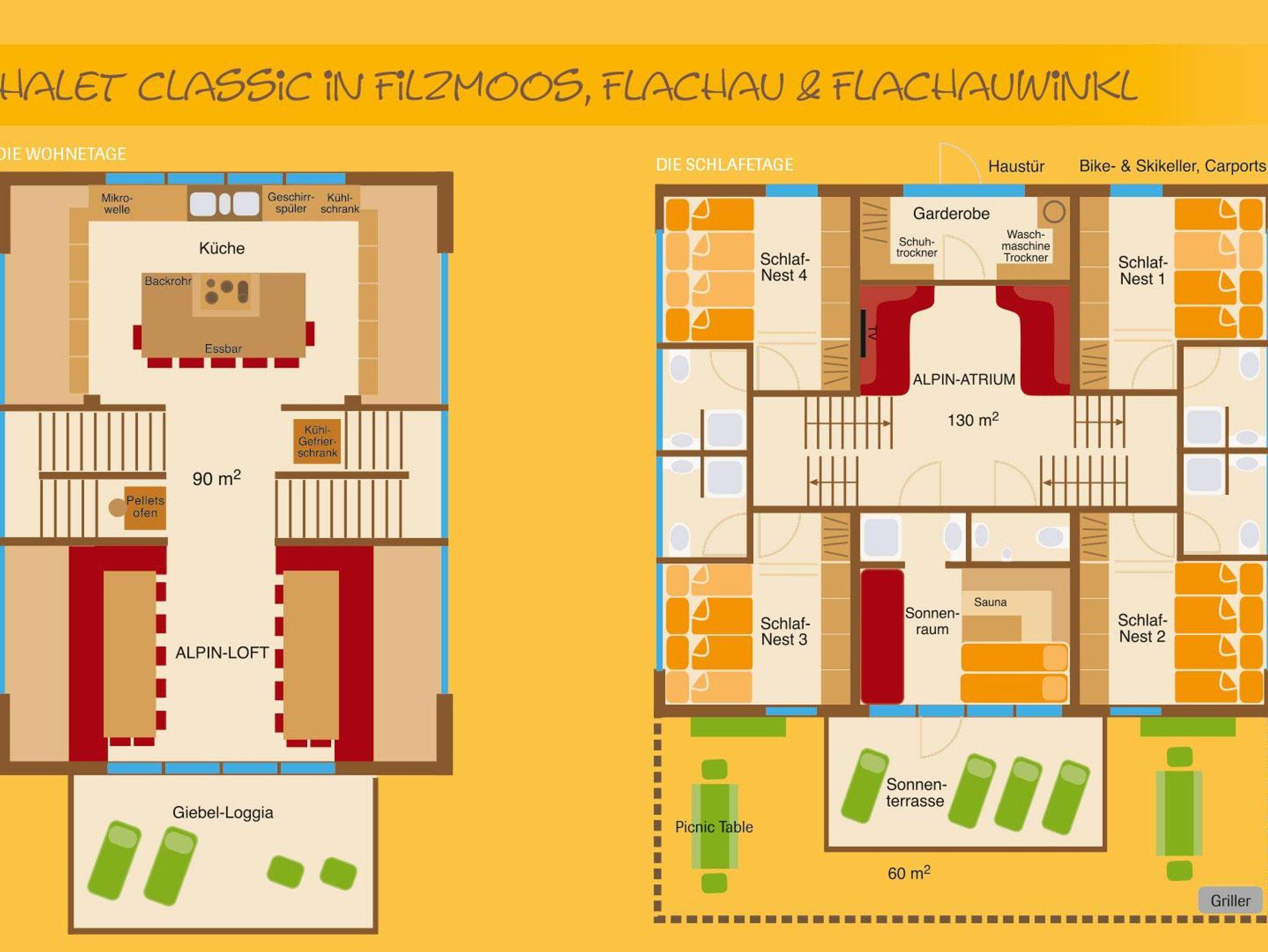 Mietet euer alpines Traumchalet - ganz für euch, eure Freunde & eure Family. Mit dem Charme und der Gemütlichkeit einer Hütte und dem Komfort eines modernen großen Ferienhauses. 220 m² ganz für euch. Hier findet ihr Platz für 8 bis 18 Personen, in 4 Vierbettzimmer und 4 Bädern und einem französischen Doppelbett im Sonnenraum mit Dusche. Die gut ausgestattete Küche mit Bar an der Kücheninsel laden zu geselligen Abenden ein. Zentral im Wandergebiet, ideal für Naturliebhaber.