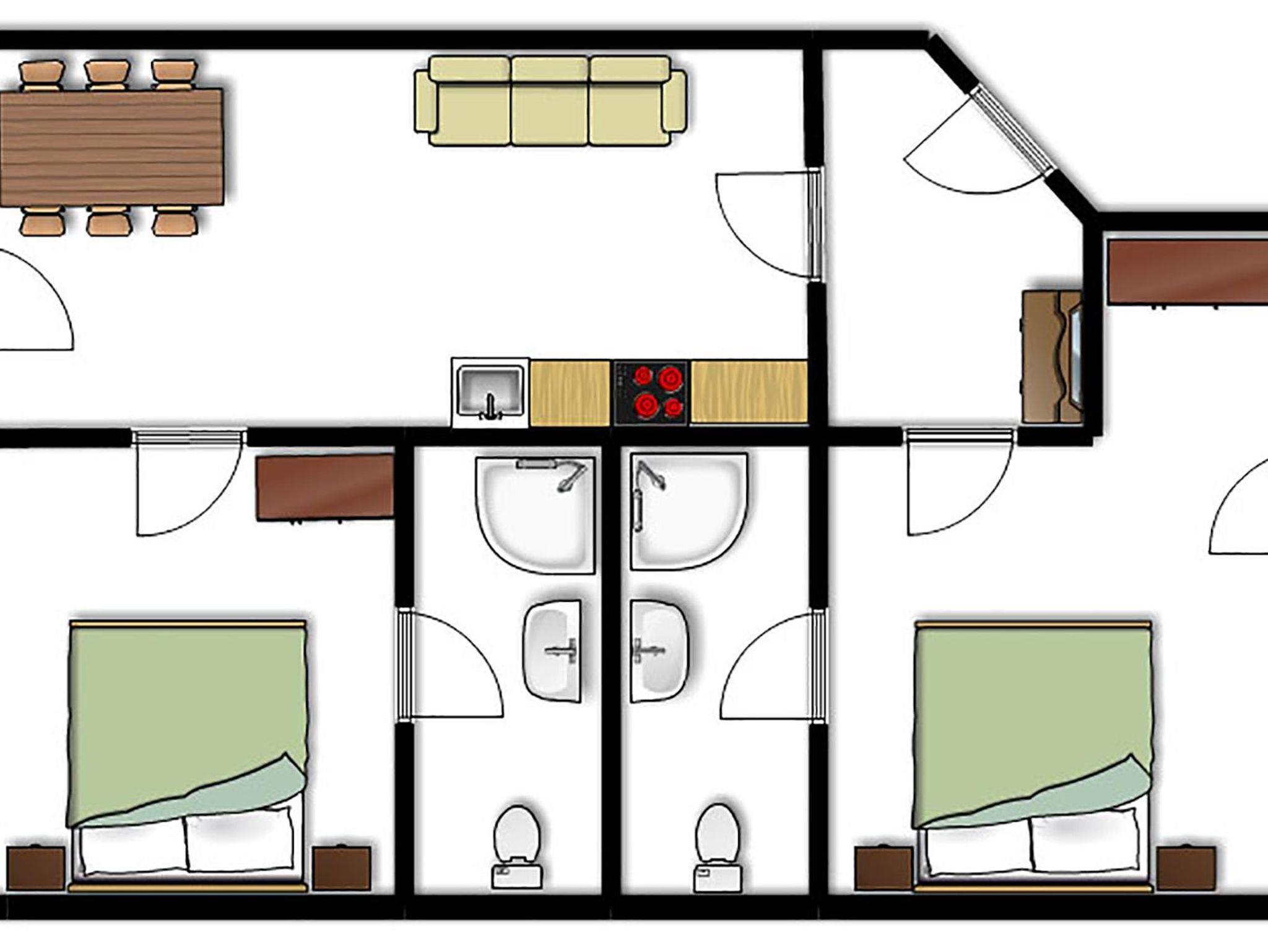 Richlegghof, Apartment/2 Schlafräume/Dusche, WC