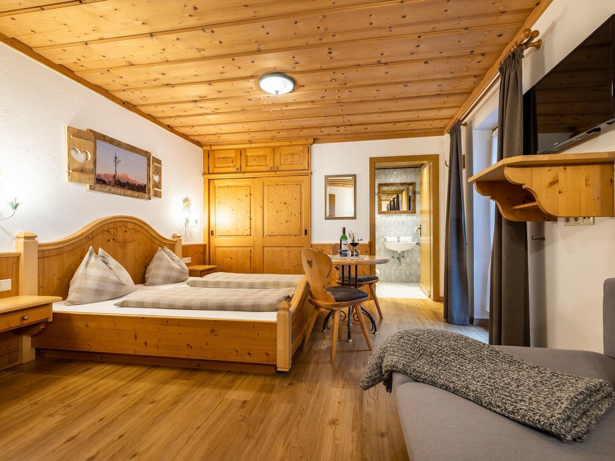 Schönes Komfort-Doppelzimmer mit hellen Vollholzmöbeln, Badezimmer mit Dusche und WC, Telefon, SAT-TV, Zimmersafe, Sitzgelegenheit, gratis WLan.
