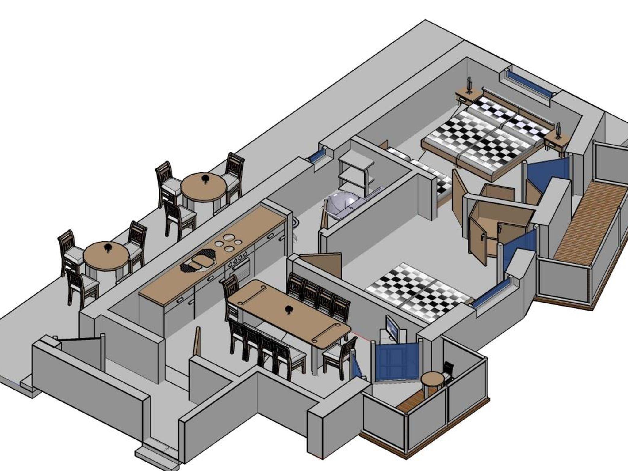 Räumlichkeiten: Appartement 04 mit Balkon 2 Doppelbettzimmer, Küche, Bad/WC.